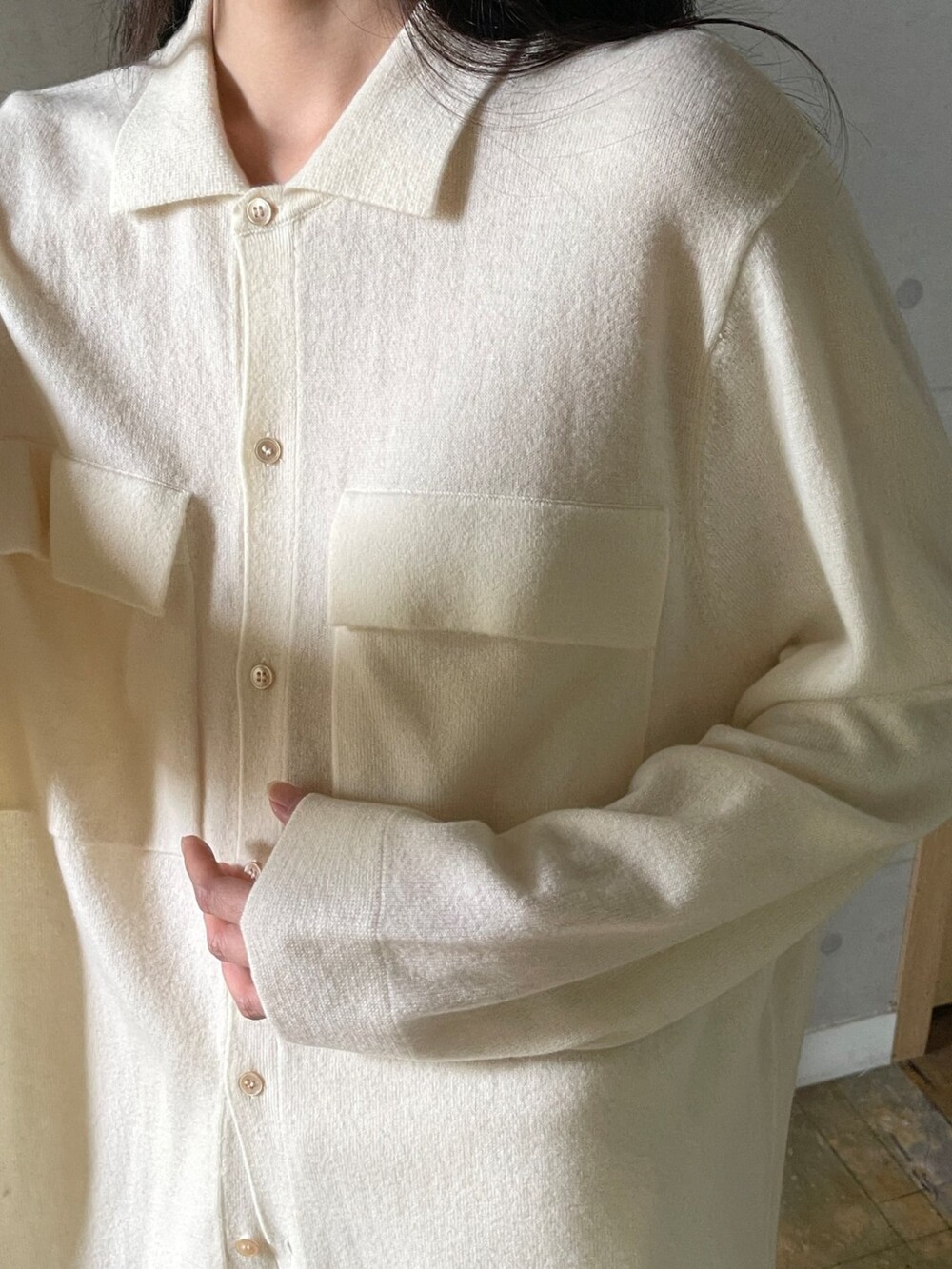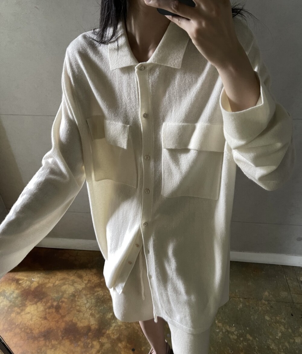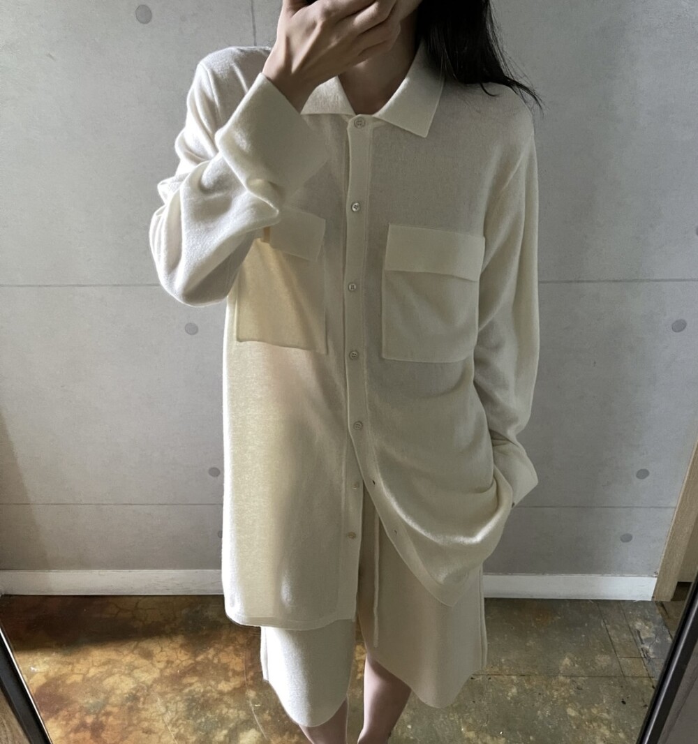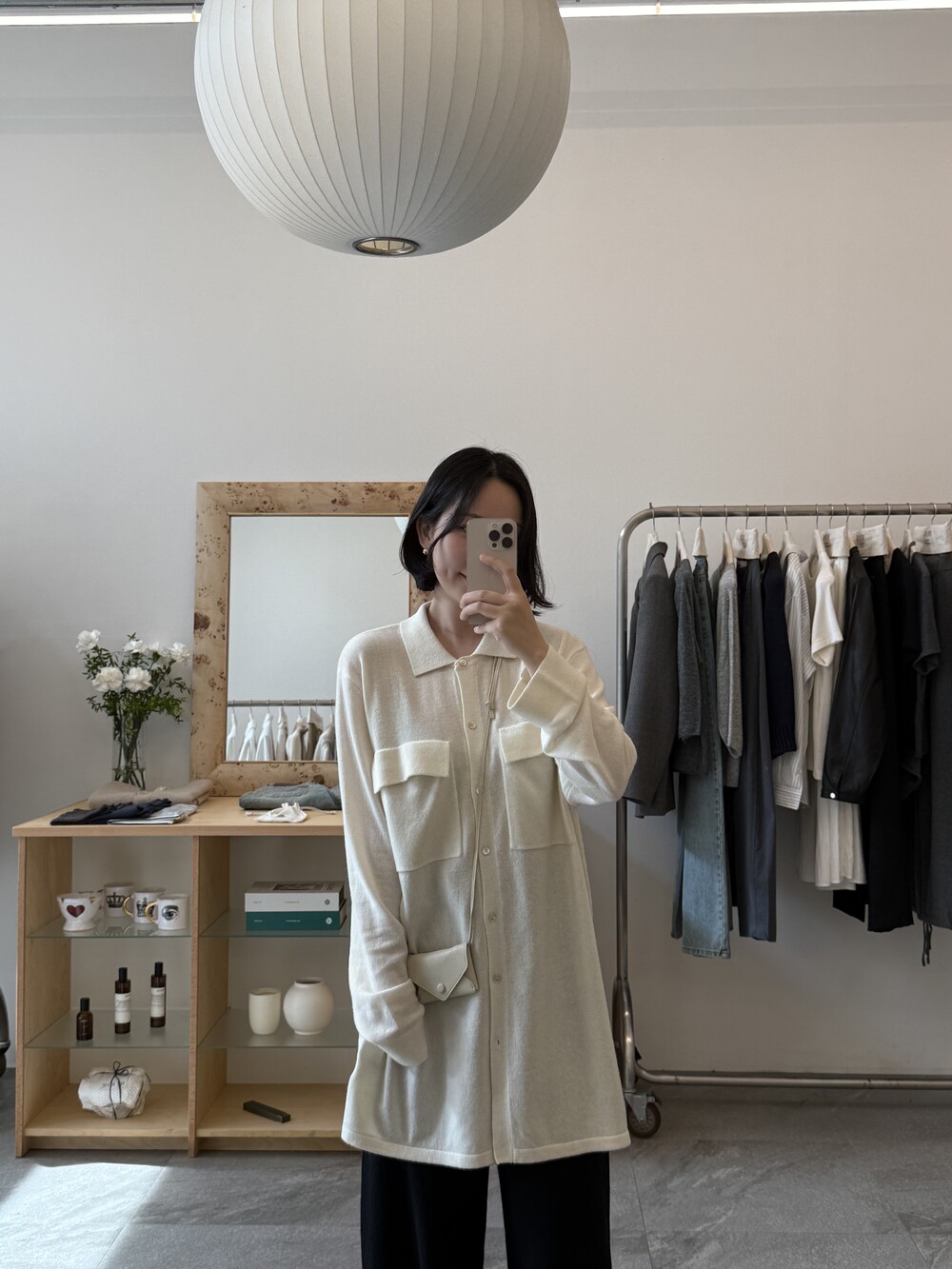 가볍고 부드러운 소재감이 특징이며 얇은 게이지로 짜여져 가벼운 착용감을 자랑합니다. 울 소재로 제작되었으며 가디건 및 블라우스로 활용 가능한 제품입니다.