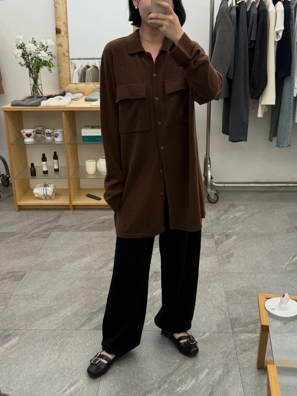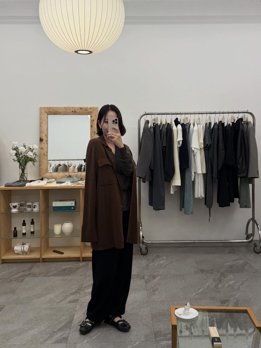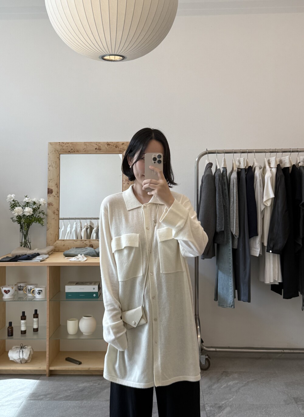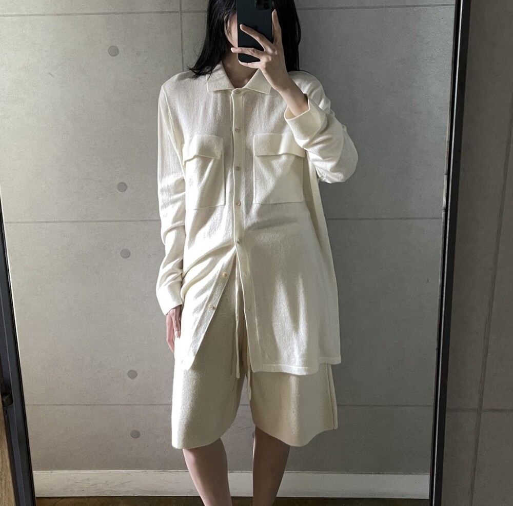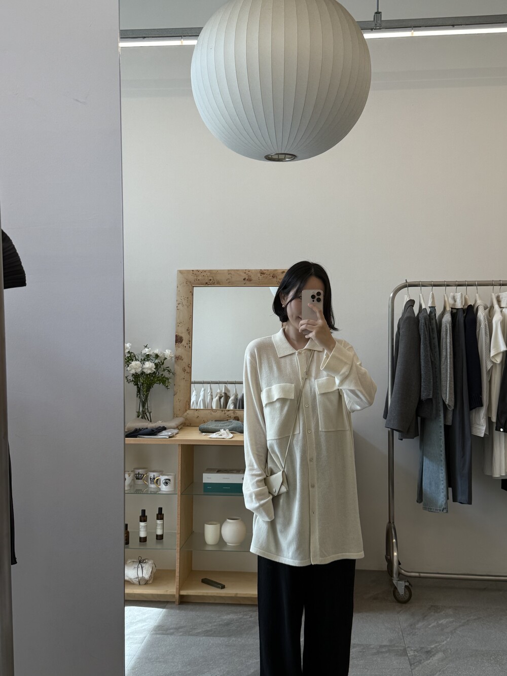 가볍고 부드러운 소재감이 특징이며 얇은 게이지로 짜여져 가벼운 착용감을 자랑합니다. 울 소재로 제작되었으며 가디건 및 블라우스로 활용 가능한 제품입니다.