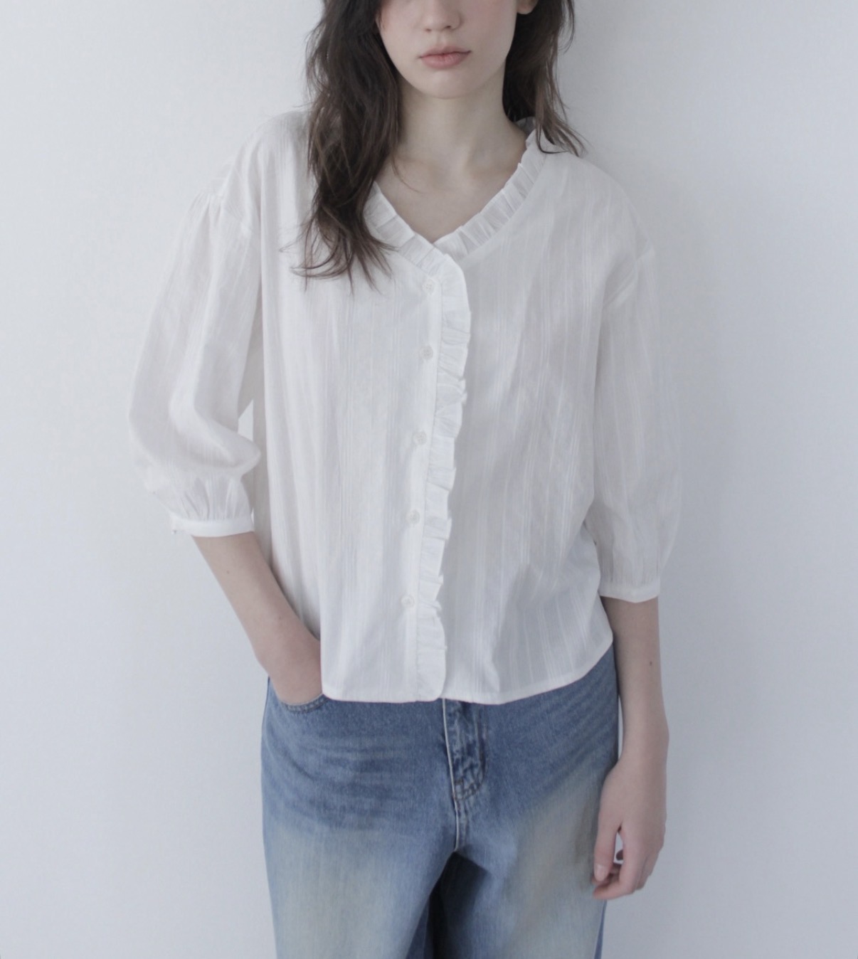 Frill cotton blouse