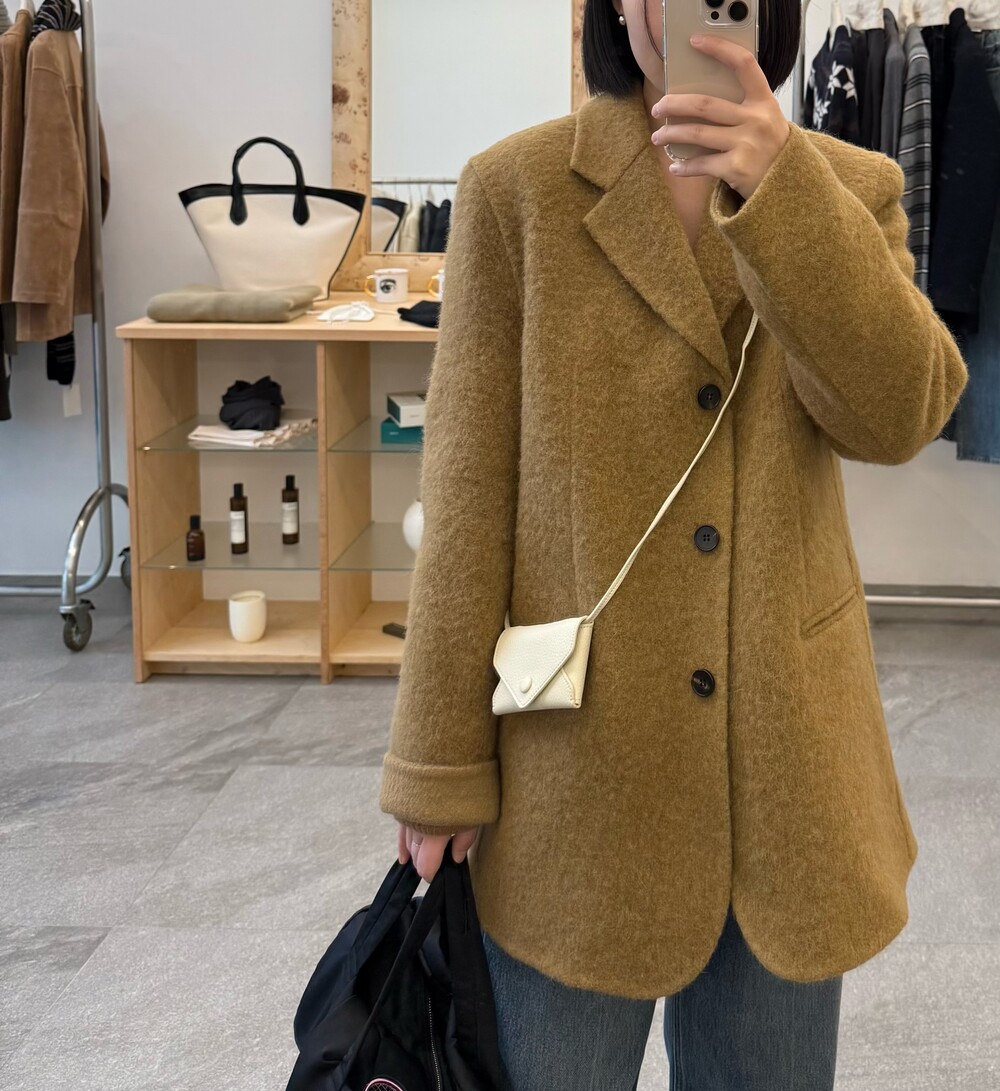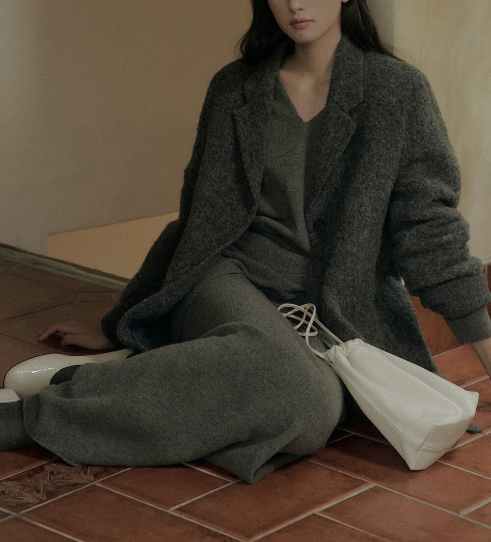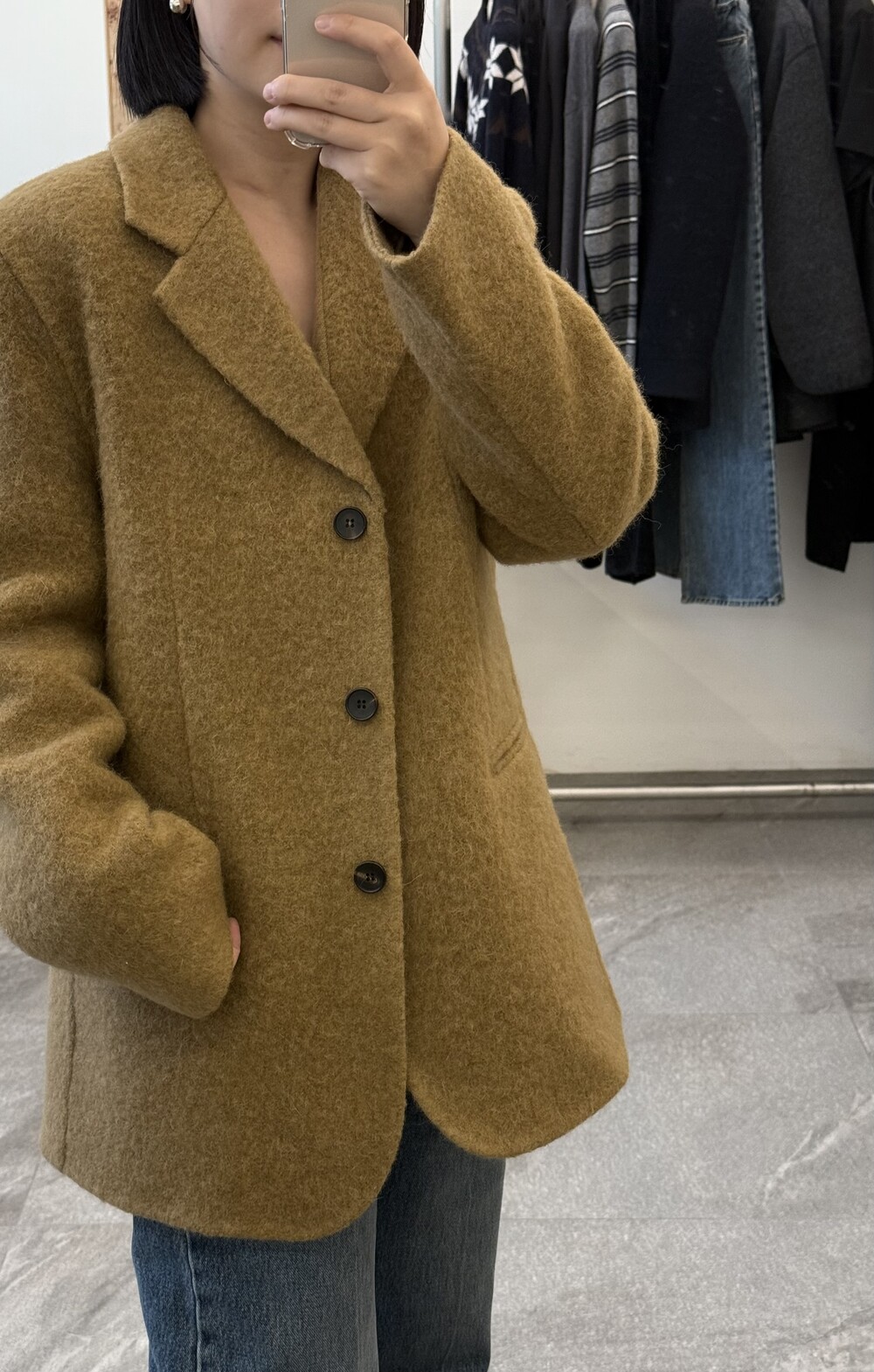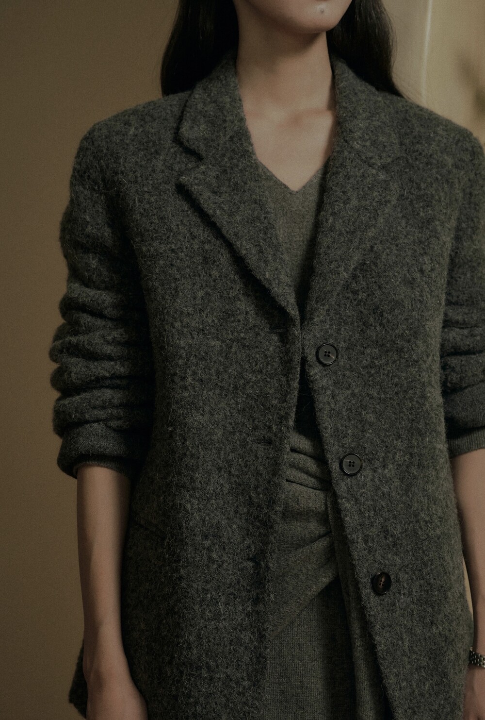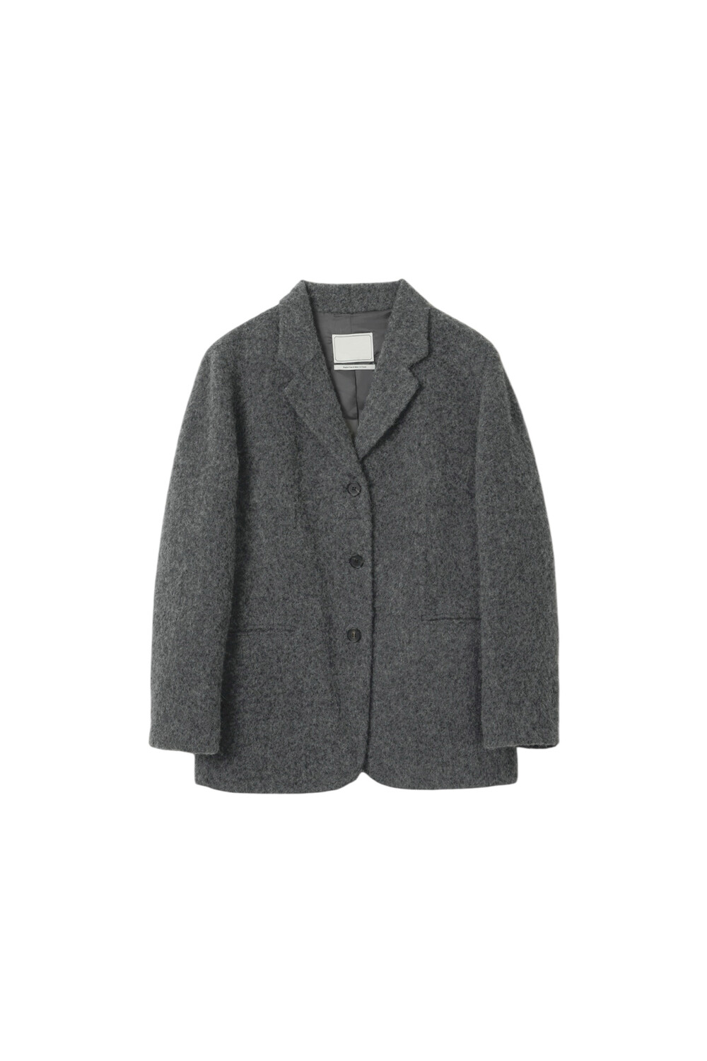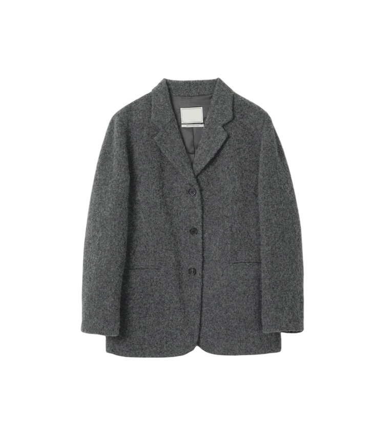 알파카 블렌드 부클 소재로 제작된 핸드메이드 자켓입니다. 표면에 은은한 입체감을 더해주는 부클 텍스처가 고급스러우며, 따뜻하고 부드러운 착용감을 전합니다. 어깨에는 와이드한 패드를 넣어 실루엣을 안정감 있게 잡아주고, 프론트에는 더블 웰트 포켓 디테일을 더해 간결한 완성도를 높였습니다. 전체 안감을 더해 착용 시 이너와의 마찰 없이 부드럽게 감싸주며, 소뿔 버튼으로 클래식한 포인트를 더했습니다. 적당히 여유 있는 루즈 핏으로 포멀한 스타일부터 캐주얼한 무드까지 이너에 따라 다양하게 활용 가능하며, 담백한 디자인과 시즌감 있는 소재가 자연스럽게 어우러집니다. 포근한 질감이 돋보이는 그레이 단일 컬러로 전개되어, 데일리룩은 물론 세미 포멀 스타일링에도 무리 없이 녹아드는 아이템입니다.