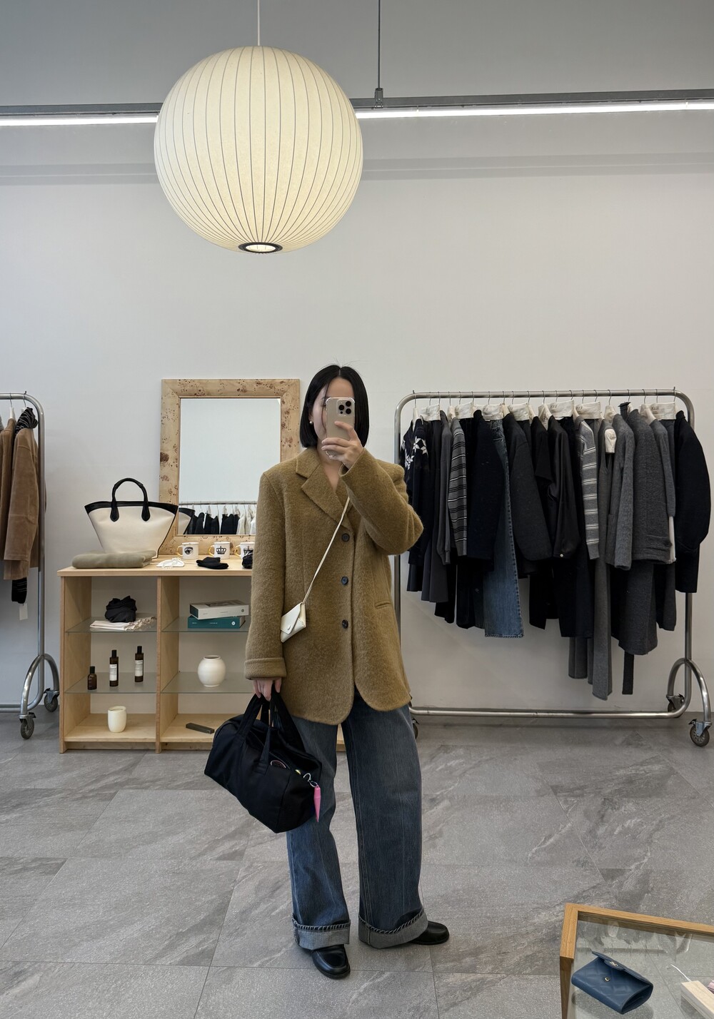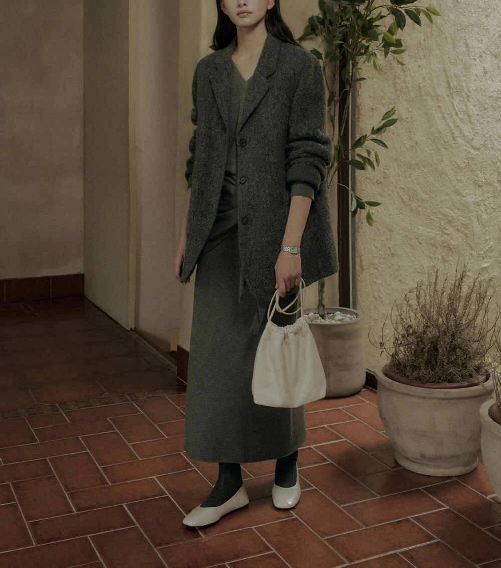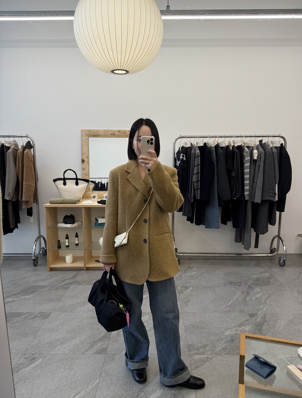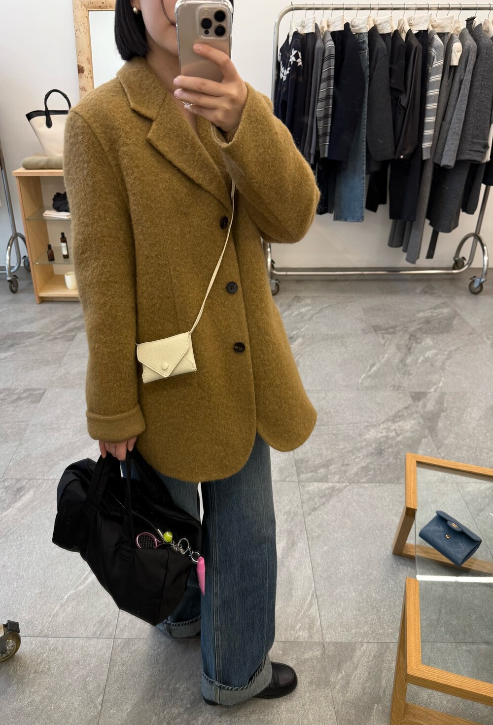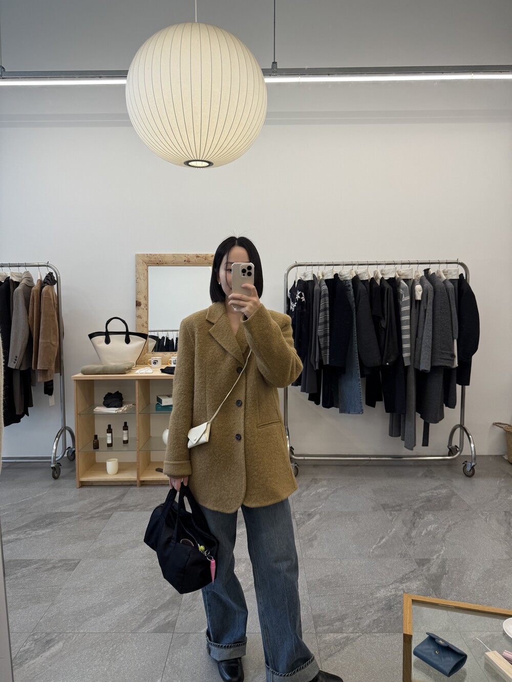 알파카 블렌드 부클 소재로 제작된 핸드메이드 자켓입니다. 표면에 은은한 입체감을 더해주는 부클 텍스처가 고급스러우며, 따뜻하고 부드러운 착용감을 전합니다. 어깨에는 와이드한 패드를 넣어 실루엣을 안정감 있게 잡아주고, 프론트에는 더블 웰트 포켓 디테일을 더해 간결한 완성도를 높였습니다. 전체 안감을 더해 착용 시 이너와의 마찰 없이 부드럽게 감싸주며, 소뿔 버튼으로 클래식한 포인트를 더했습니다. 적당히 여유 있는 루즈 핏으로 포멀한 스타일부터 캐주얼한 무드까지 이너에 따라 다양하게 활용 가능하며, 담백한 디자인과 시즌감 있는 소재가 자연스럽게 어우러집니다. 포근한 질감이 돋보이는 그레이 단일 컬러로 전개되어, 데일리룩은 물론 세미 포멀 스타일링에도 무리 없이 녹아드는 아이템입니다.