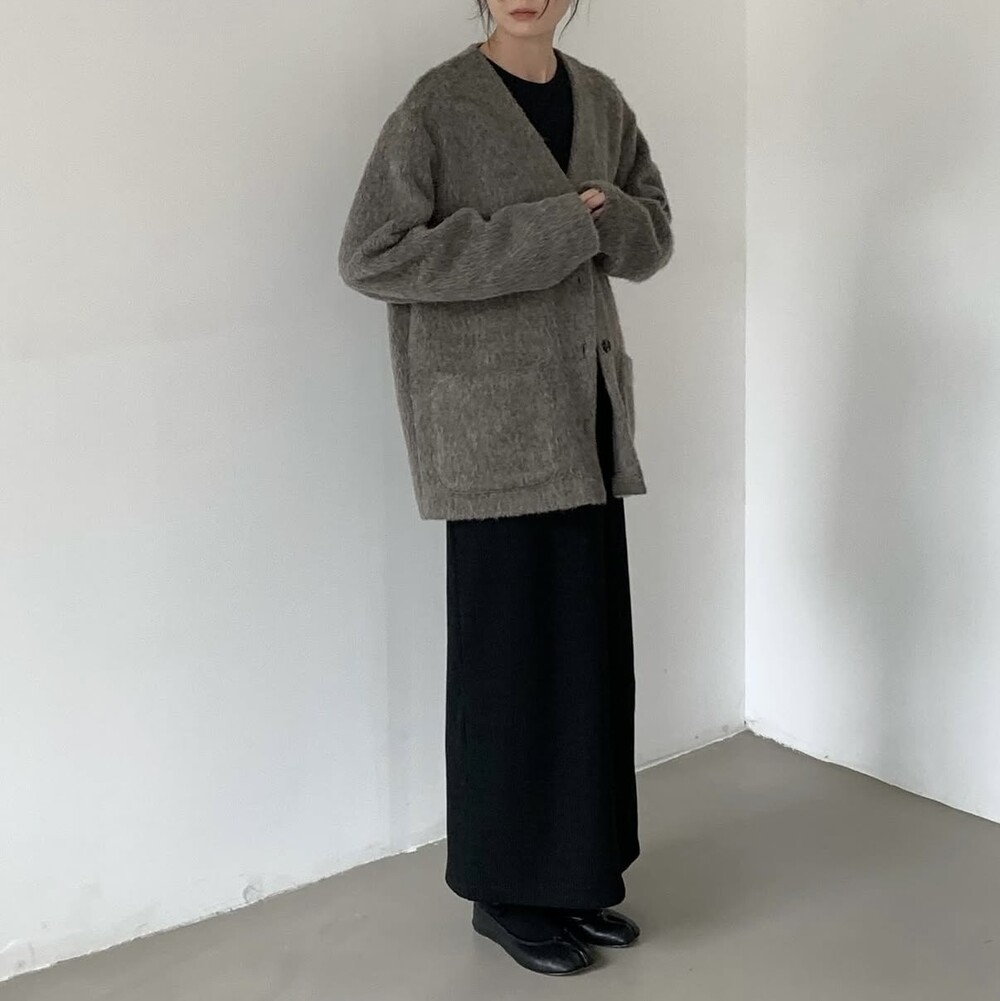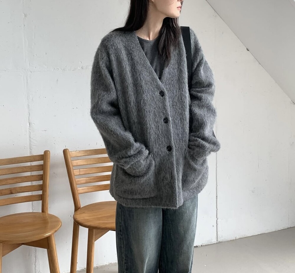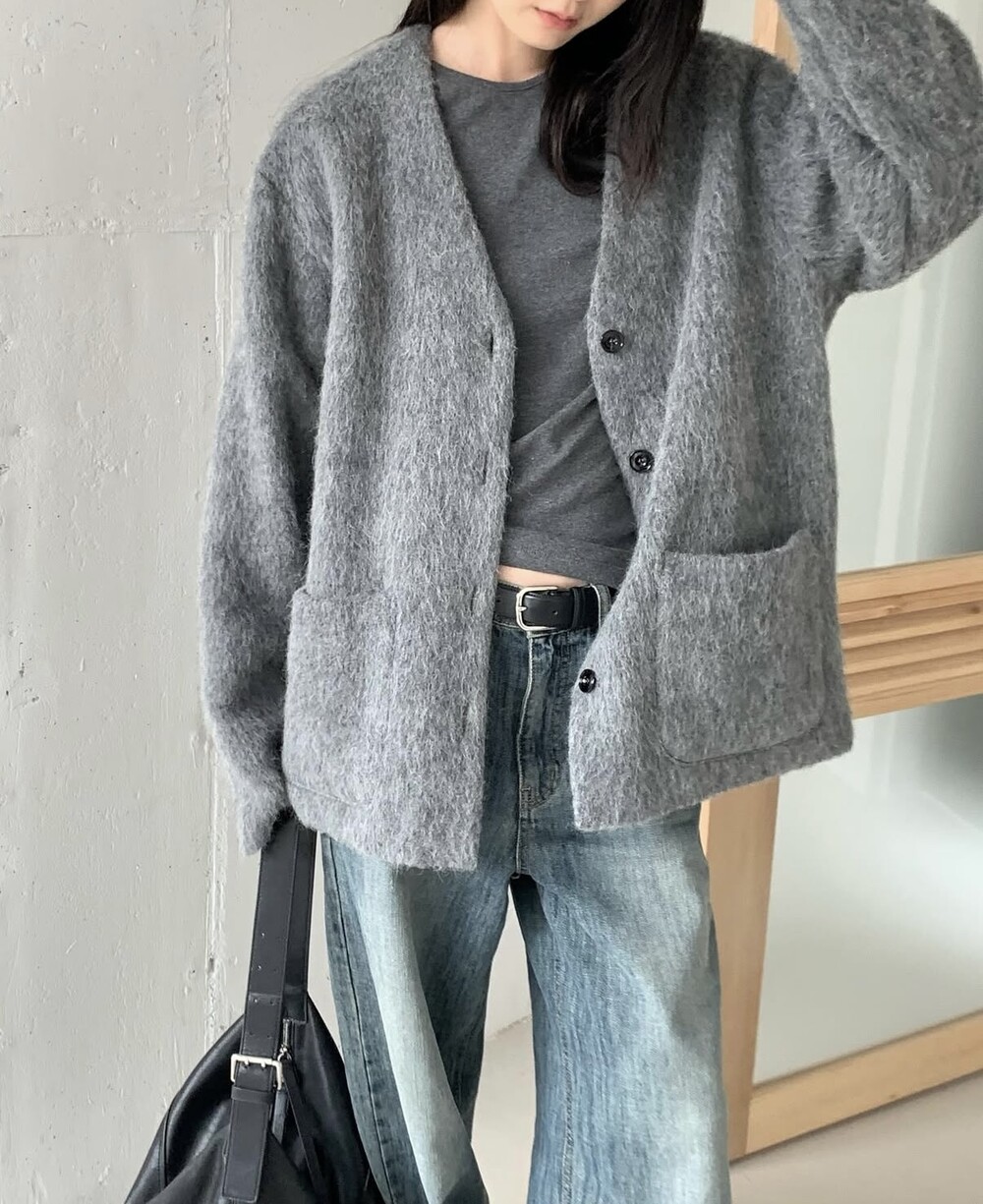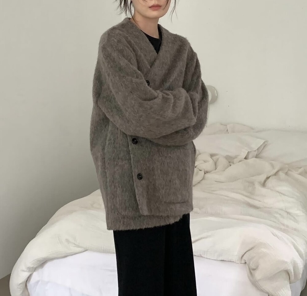 컬러는 그레이, 베이지 두가지 컬러로 진행합니다. 루즈한 타입으로 레이어드해서 겨울 내내 가볍게 착용하기 좋은 스타일입니다.