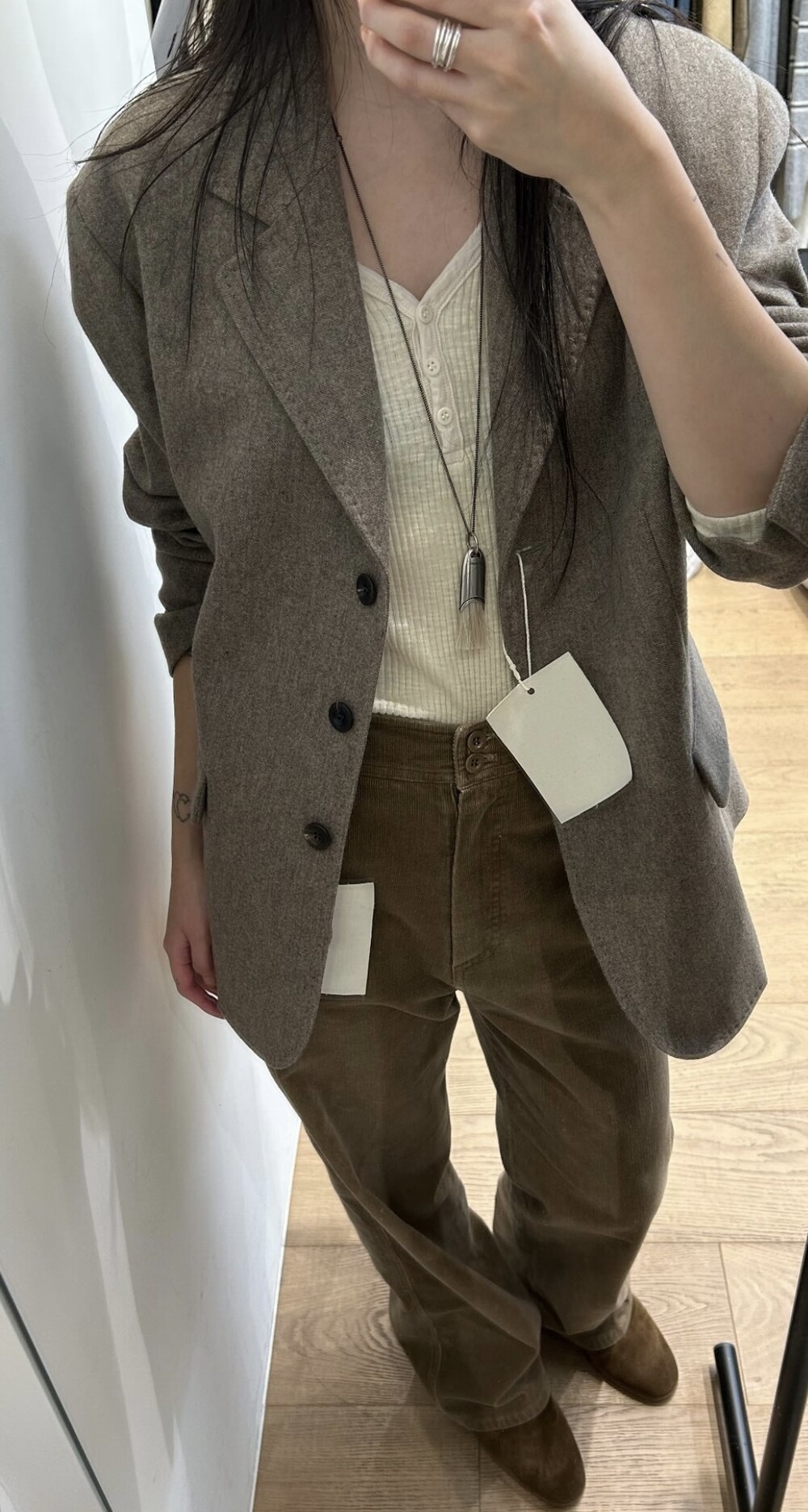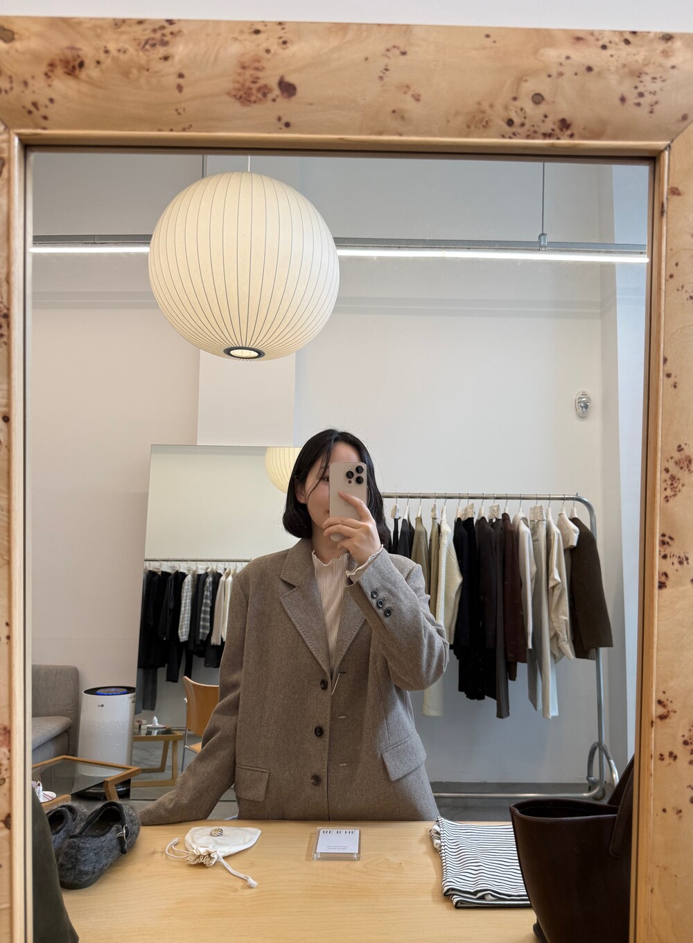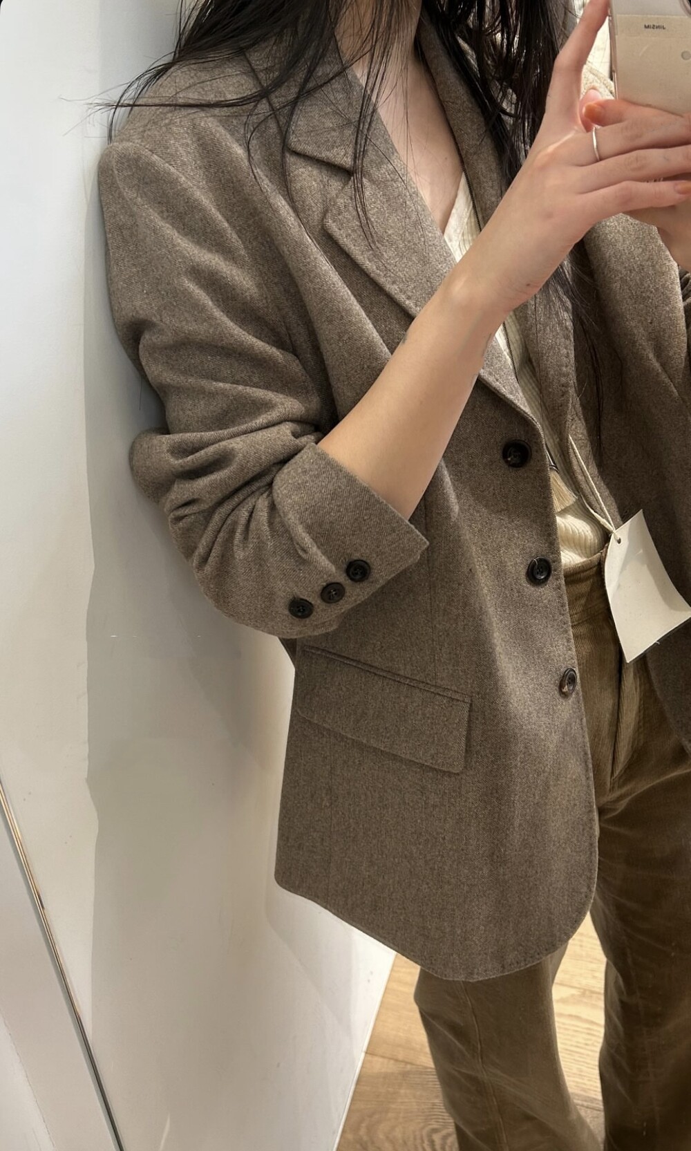 캐시미어 울 블렌디드 고급 소재로 제작 되었습니다. 카라 부분에 호시 디테일을 넣어 고급스러움을 더했고 과하지 않은 오버핏으로 아담한고객님께도 자연스럽게 어울리는 스타일입니다. 오트 베이지 원단에 소뿔 단추로 퀄리티를 높혔습니다. 베르헤의 다양한 하의와 함께 연출하기 좋은 스타일입니다.