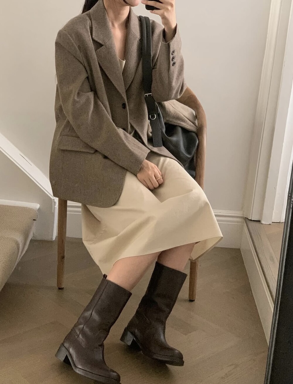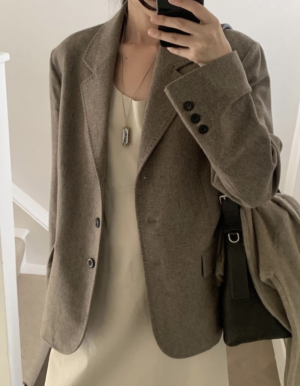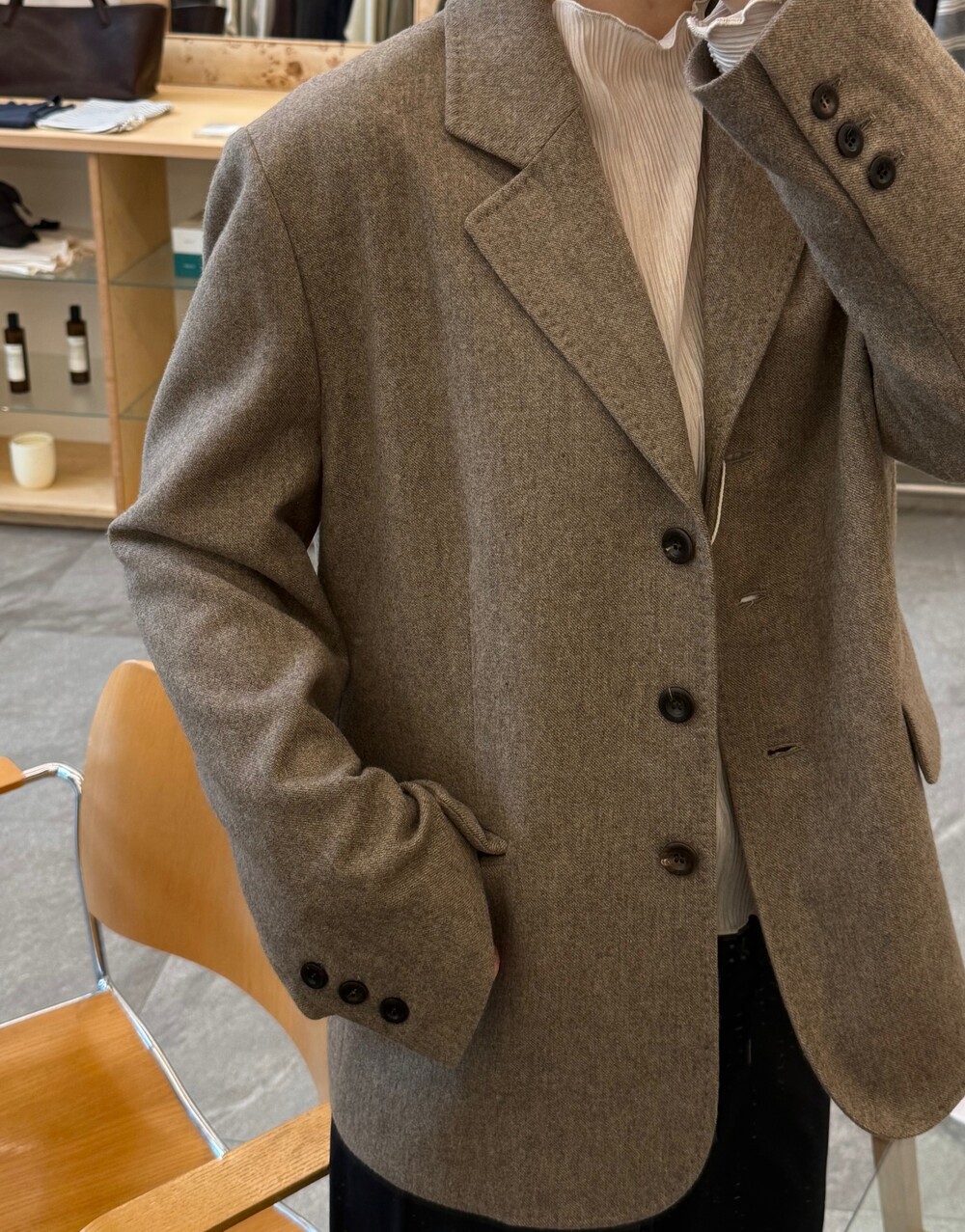 캐시미어 울 블렌디드 고급 소재로 제작 되었습니다. 카라 부분에 호시 디테일을 넣어 고급스러움을 더했고 과하지 않은 오버핏으로 아담한고객님께도 자연스럽게 어울리는 스타일입니다. 오트 베이지 원단에 소뿔 단추로 퀄리티를 높혔습니다. 베르헤의 다양한 하의와 함께 연출하기 좋은 스타일입니다.