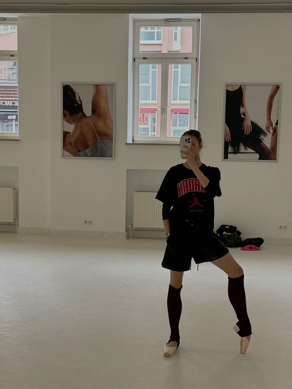피팅 사진 운동한 날 와이드 트레이닝 팬츠에 착용한건데 .. 나름 꾸안꾸 아닌가요?