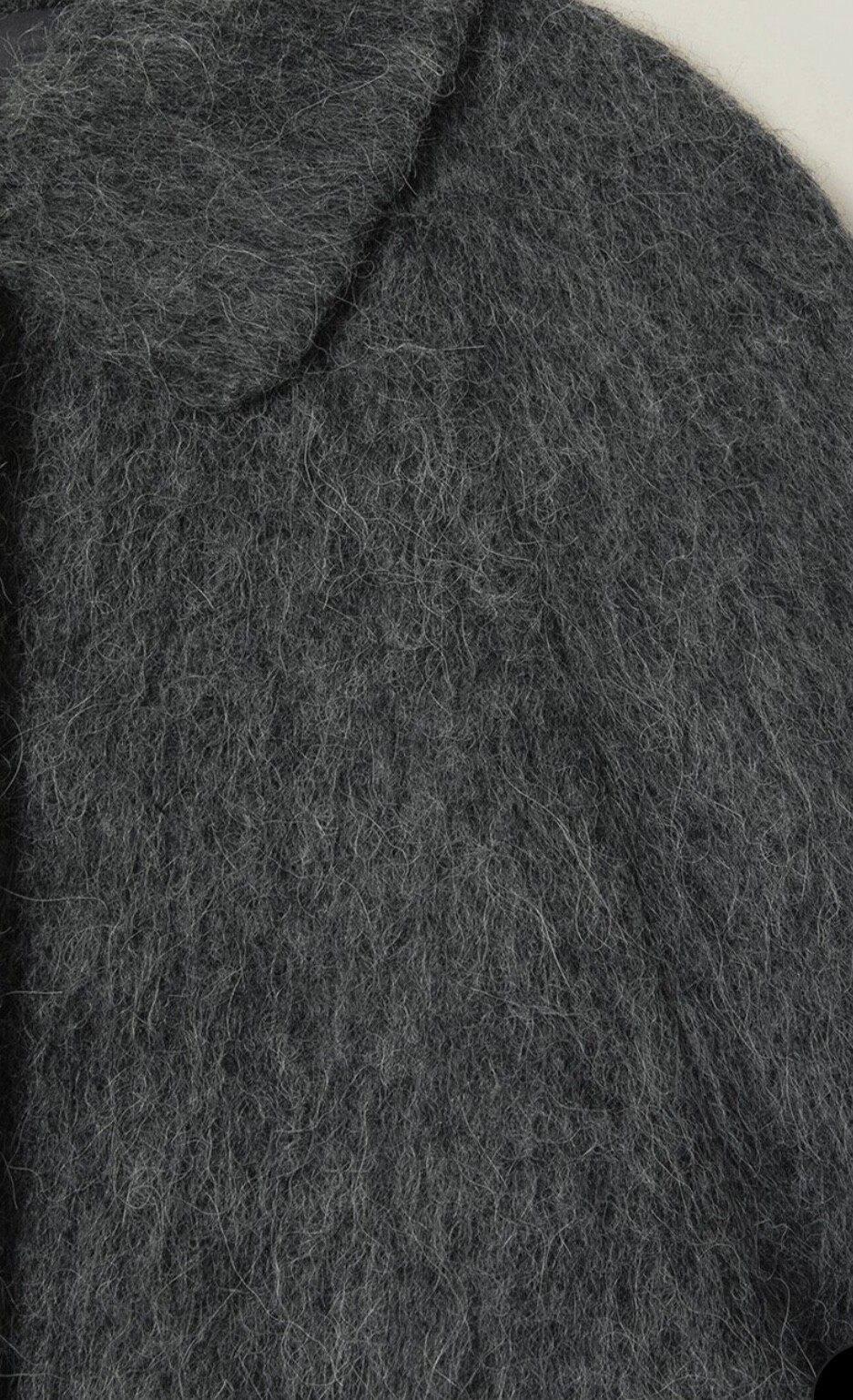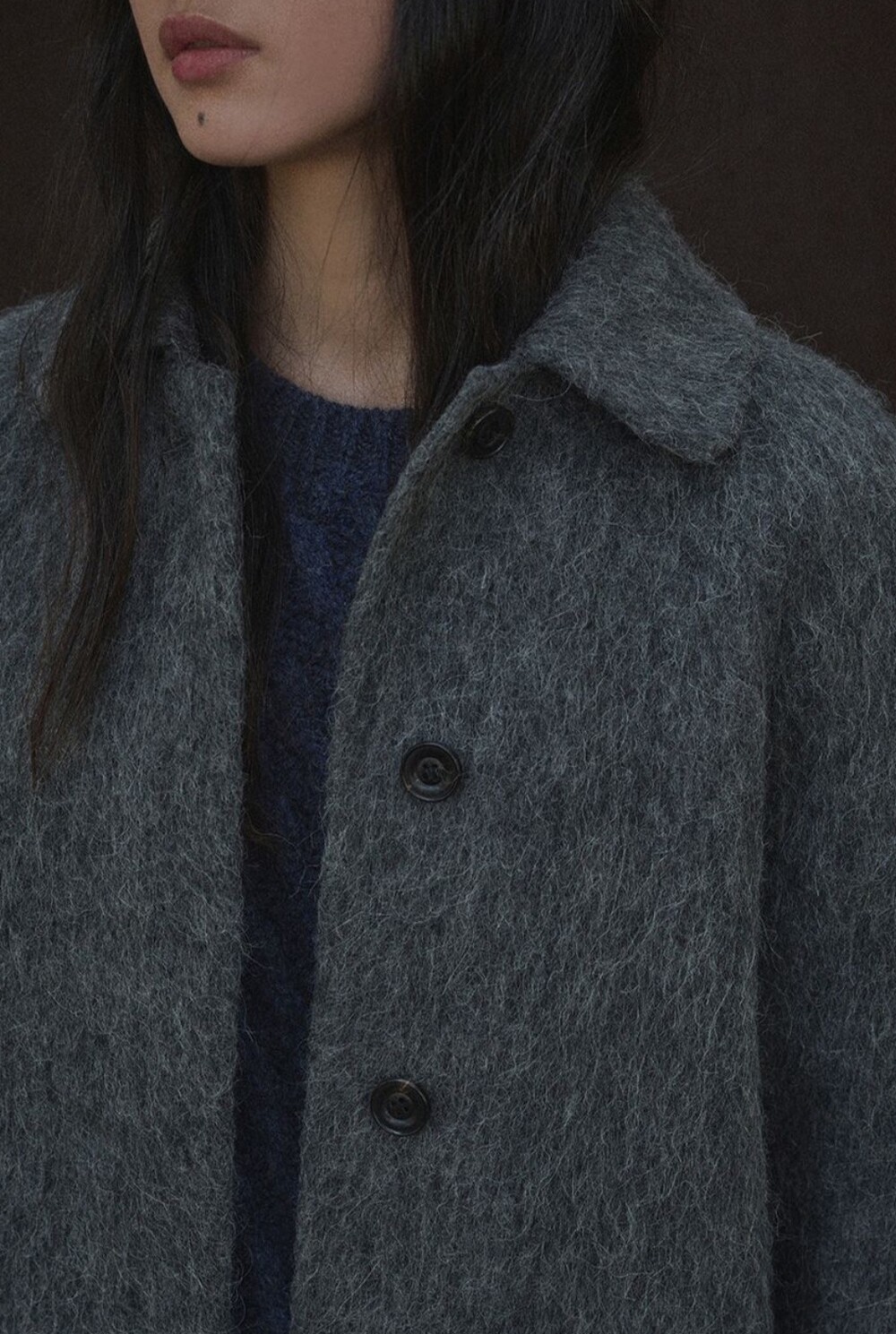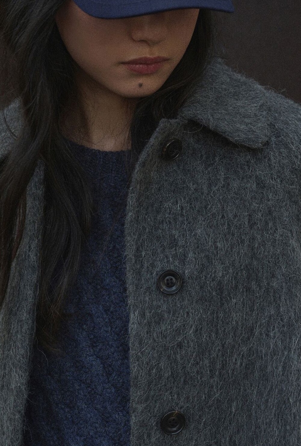 한겨울의 공기를 부드럽게 감싸는 핸드메이드 알파카 울 샤기 코트입니다. 알파카와 울이 혼방된 제직 원단으로 고급스러운 텍스처와 포근한 소재감으로 높은 보온성을 자랑하며, 나일론과 폴리에스터가 더해져 내구성까지 꼼꼼하게 챙겼습니다. 풍성하게 올라오는 헤어 텍스처가 자연스러운 음영과 볼륨을 만들어내며, 움직일 때마다 은은한 윤광이 감도는 것이 특징입니다. 정교한 핸드메이드 봉제로 완성했으며, 살짝 퍼지는 A라인 실루엣에 뒷트임을 더해 우아하면서도 활동적인 착용감을 선사합니다. 롱한 기장감 덕분에 보온성은 물론 안정적인 핏을 연출하며, 적당히 루즈한 핏으로 겨울 이너와 함께 착용해도 여유있게 착용 가능합니다. 몸판은 반안감, 소매는 전체 안감 처리로 마찰 없이 부드럽게 착용되며, 프론트 원버튼을 제외한 히든 버튼 디자인에 사이드 포켓을 더해 깔끔하게 마감되어 미니멀한 인상을 완성합니다. 고급스러운 멜란지 결의 그레이 컬러로 준비되었으며, 조용하지만 확실한 존재감을 지닌 이 코트는 고급스러운 질감과 절제된 실루엣을 완벽하게 구현한 아이템입니다.