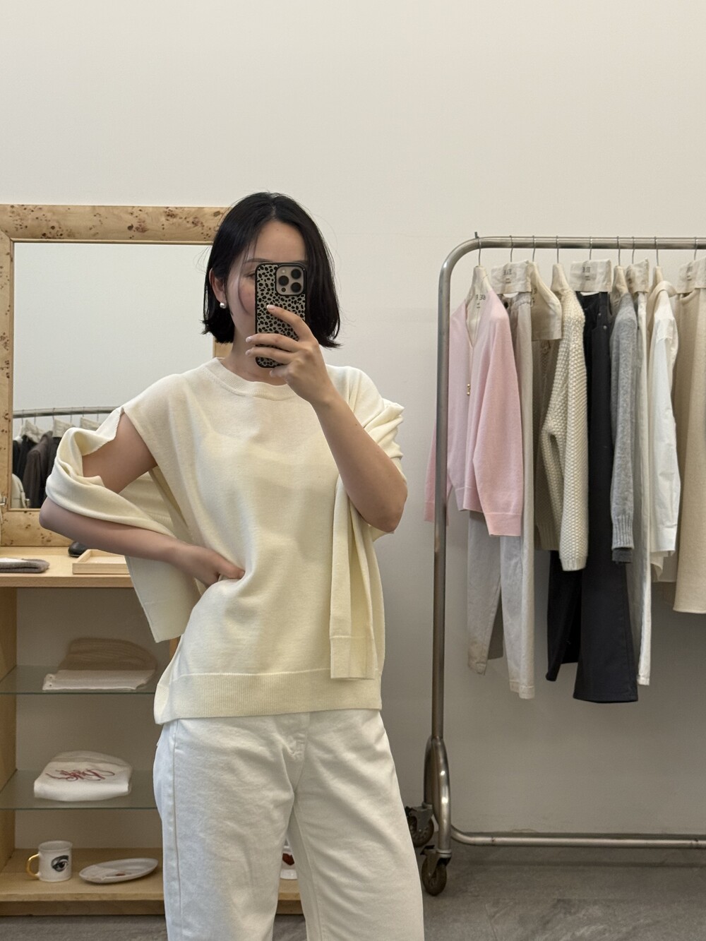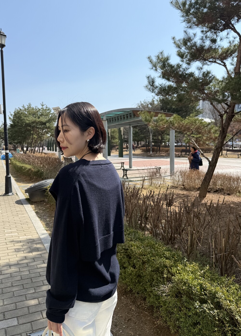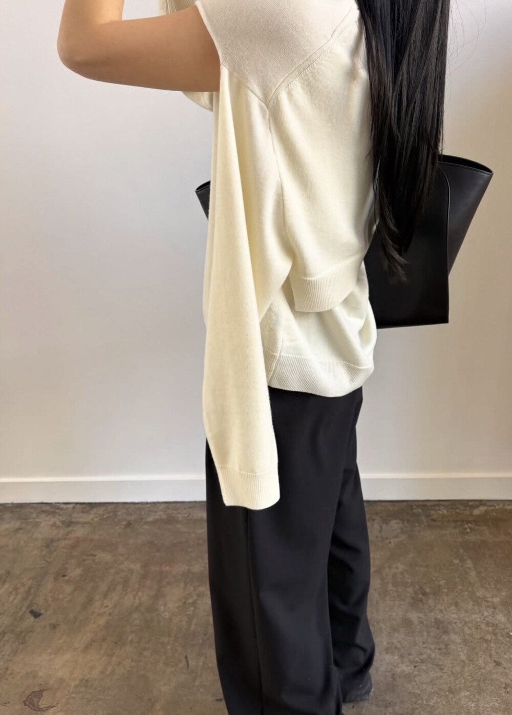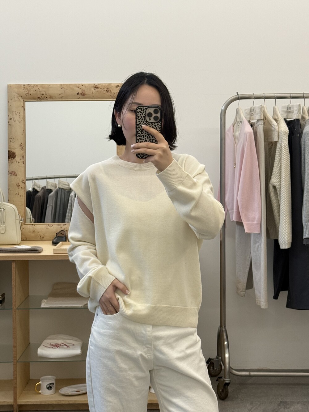 뒷면은 레이어드 스타일로 떨어져 자연스러운 무드를 더합니다.