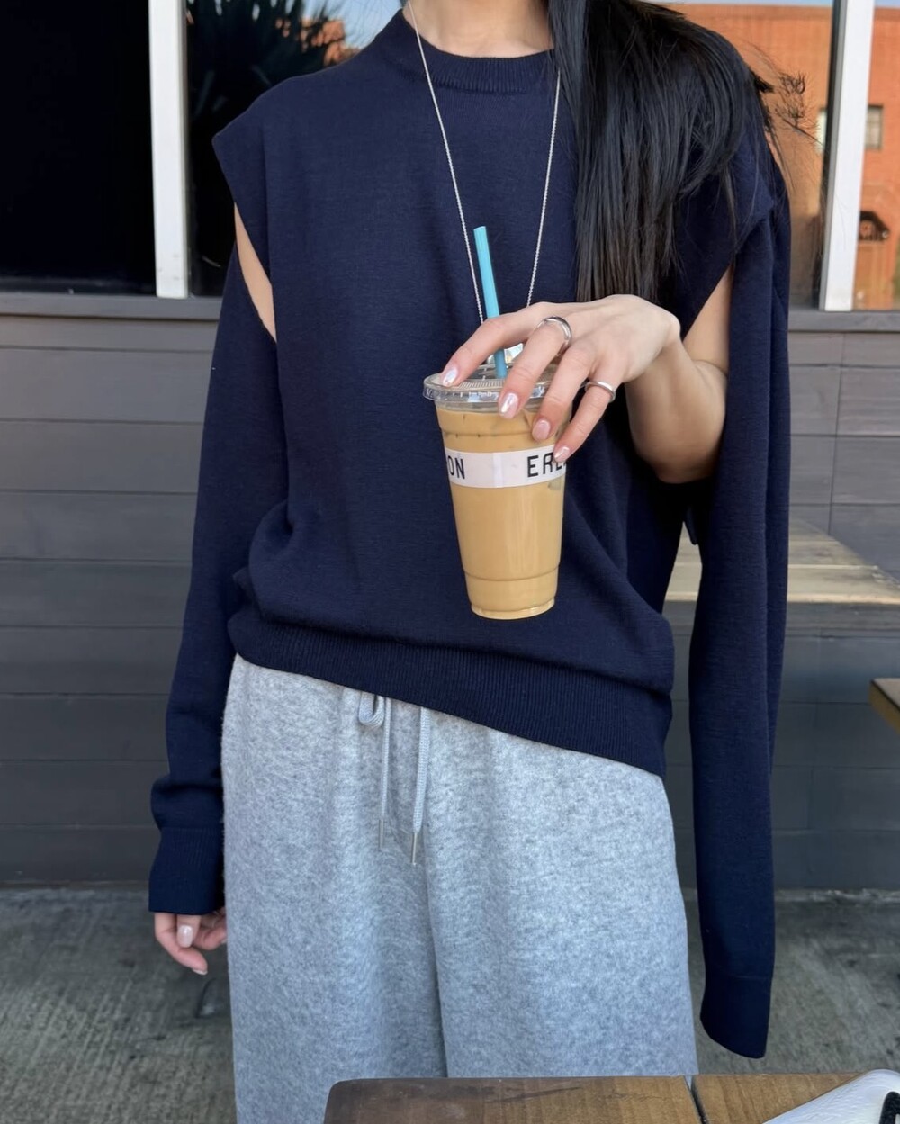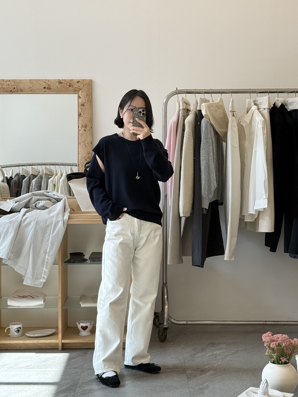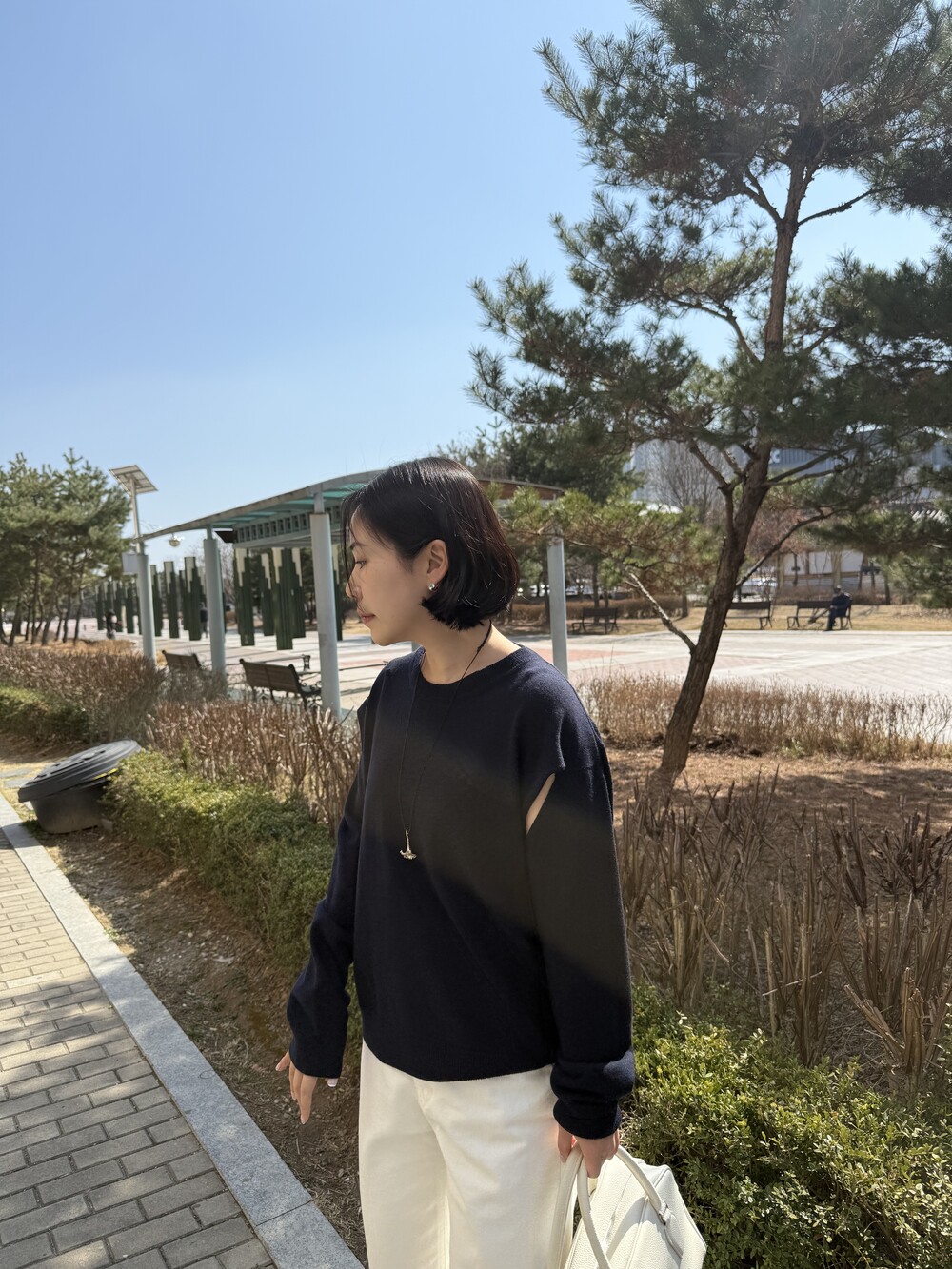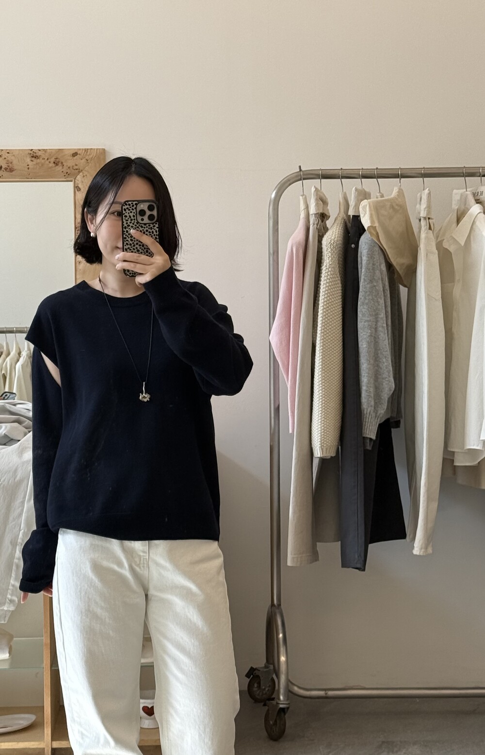 뒷면은 레이어드 스타일로 떨어져 자연스러운 무드를 더합니다.