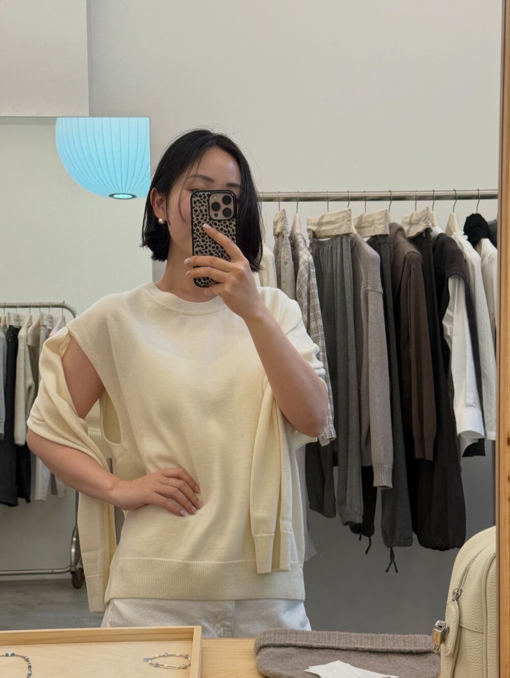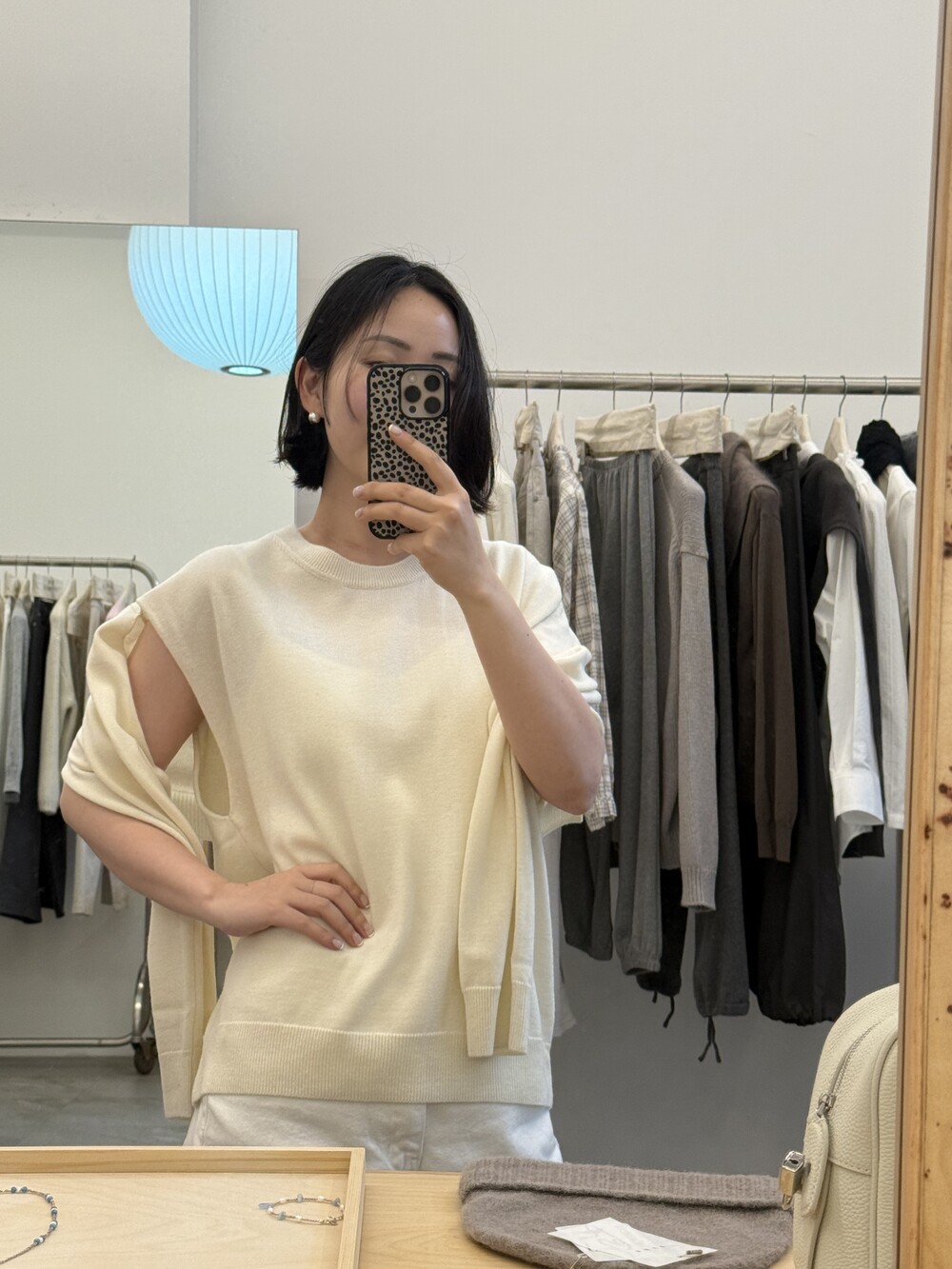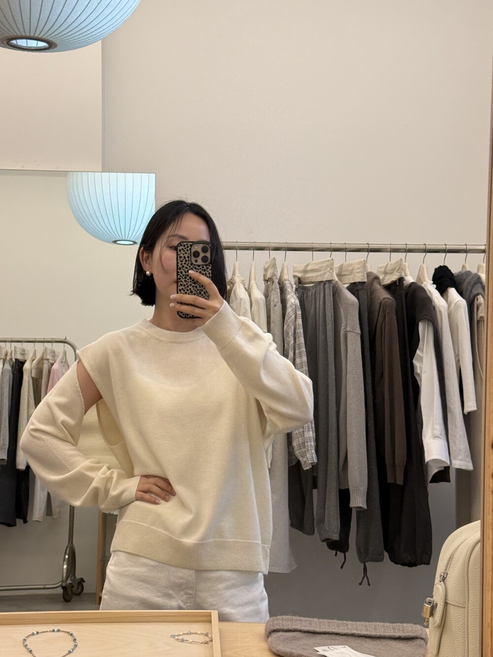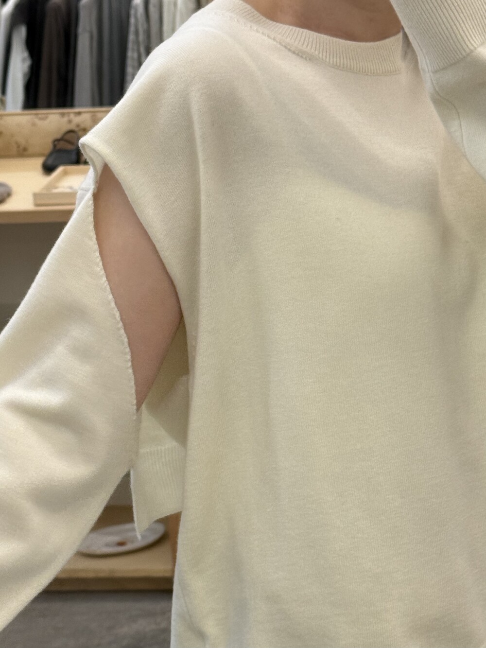 소매를 가볍게 걸쳐 팔 라인을 커버 해주거나 팔 부분을 끼워 안정감 있게 착용할 수 있어 상황에 따라 두 가지 무드로 활용 가능하며,
