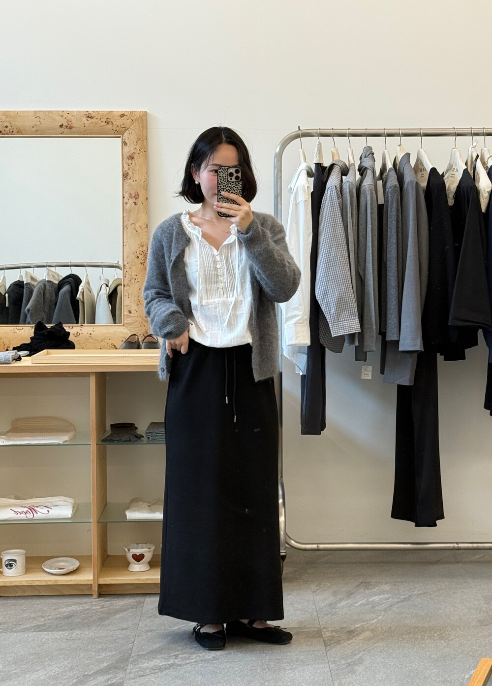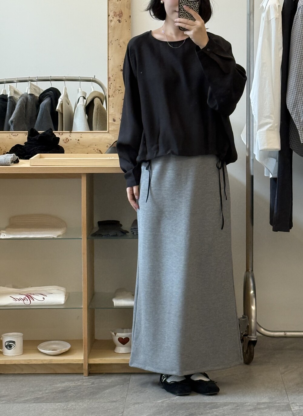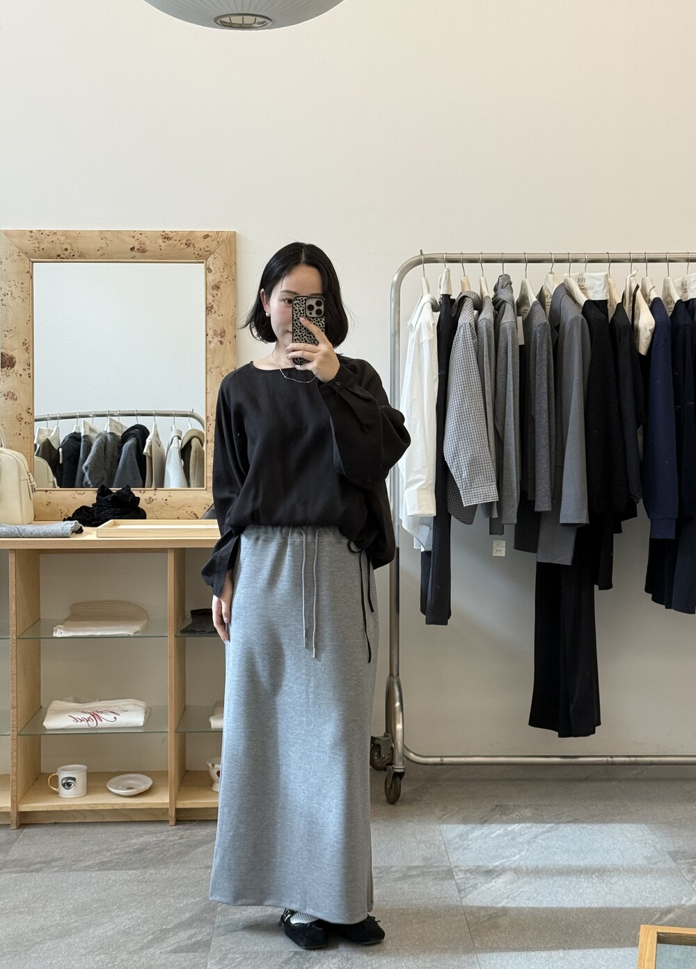 편안함과 정돈된 실루엣을 동시에 원하는 날 자주 손이 갈 기본 롱 스커트입니다.