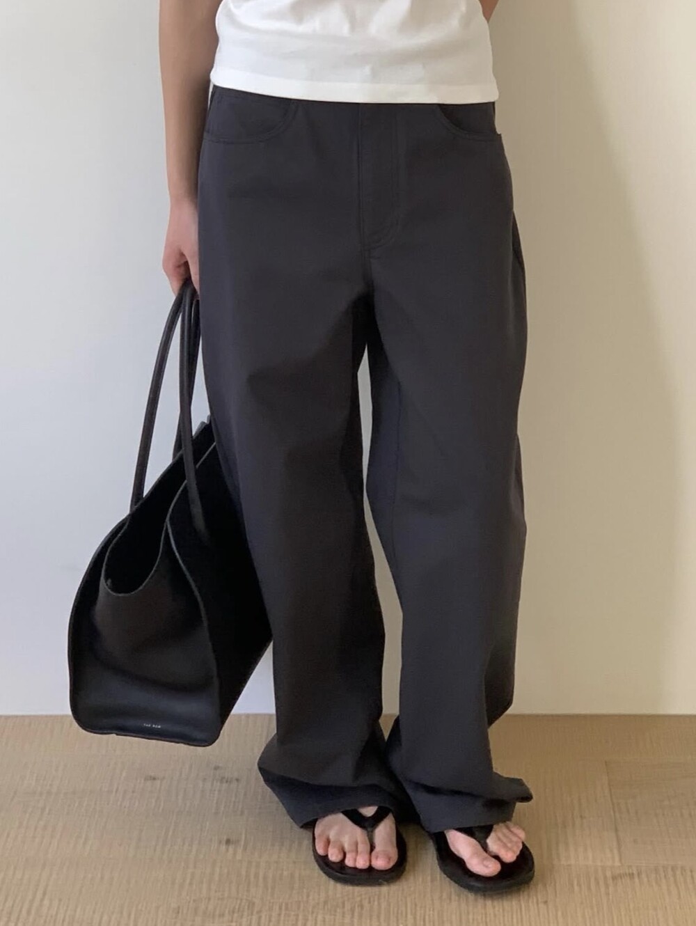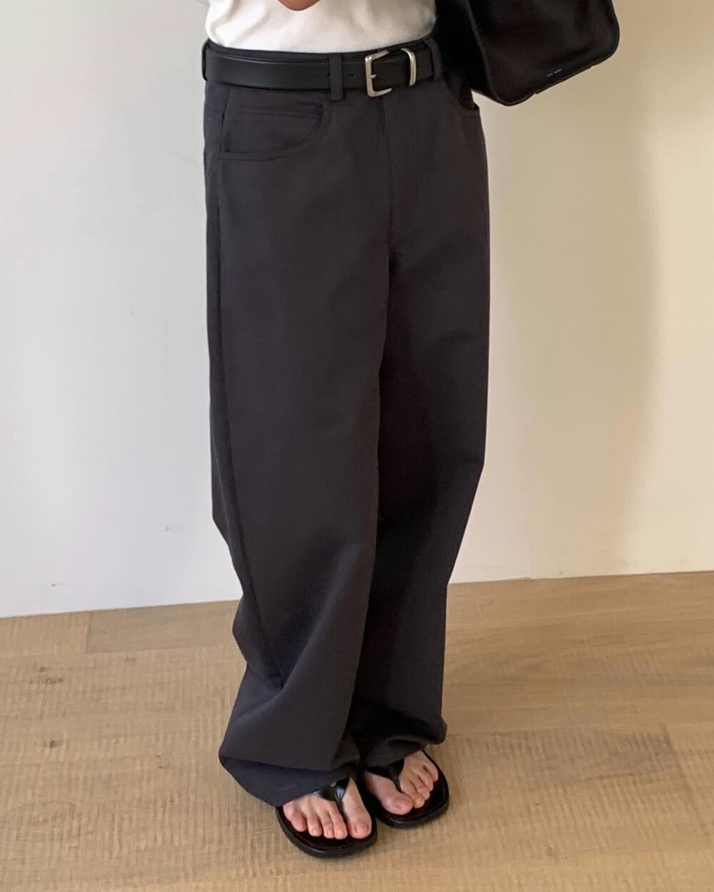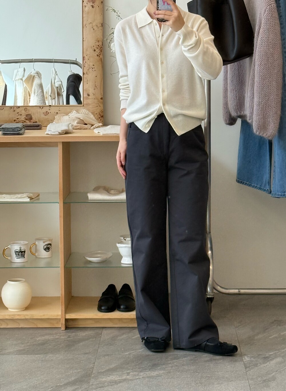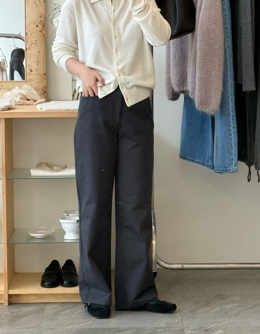 힙 라인은 과하지 않게 정리되고, 허벅지부터 스트레이트로 떨어지는 실루엣이라 체형을 자연스럽게 보정해줘요.