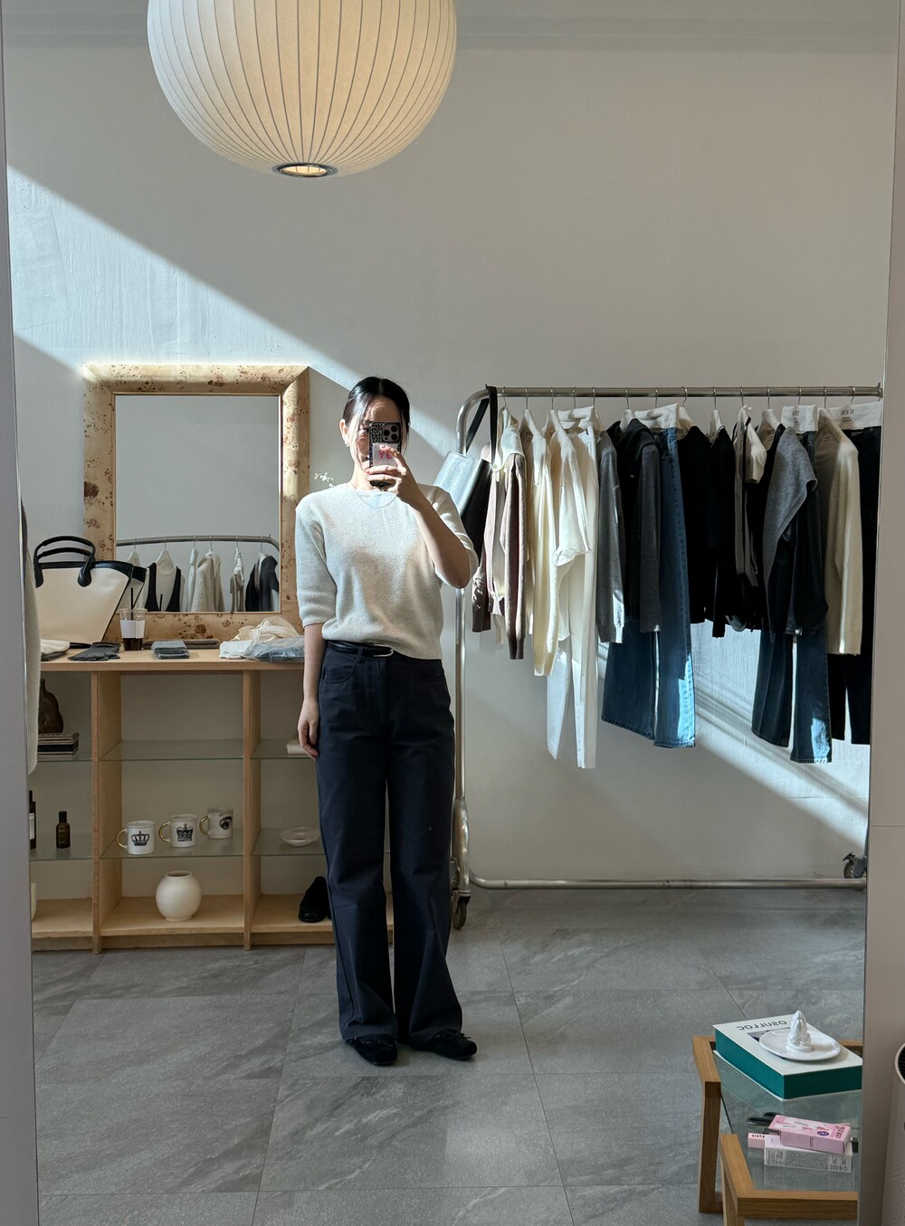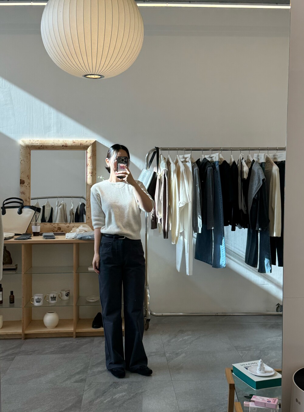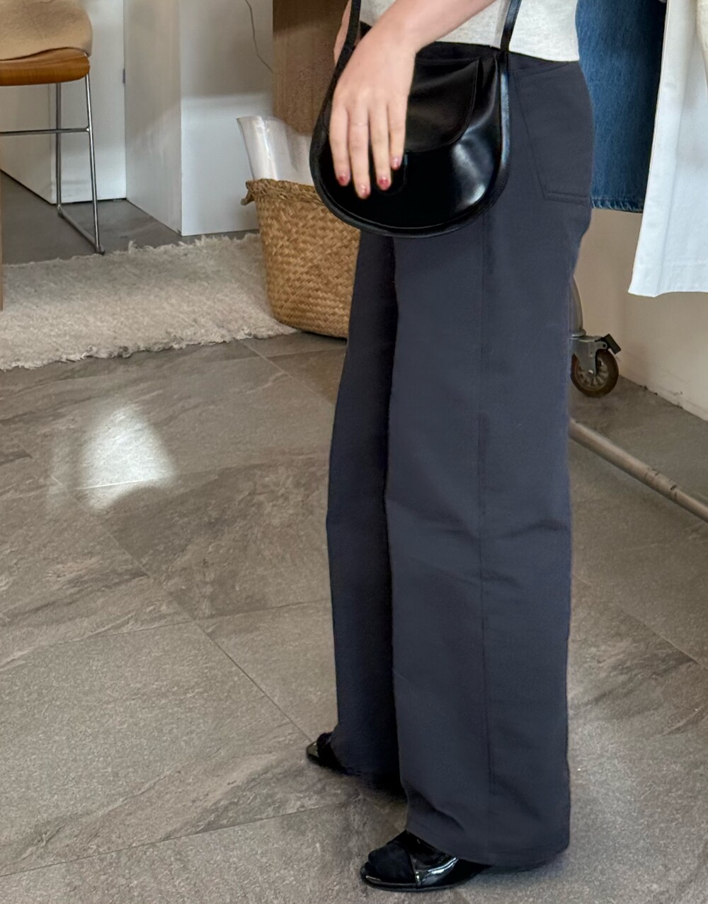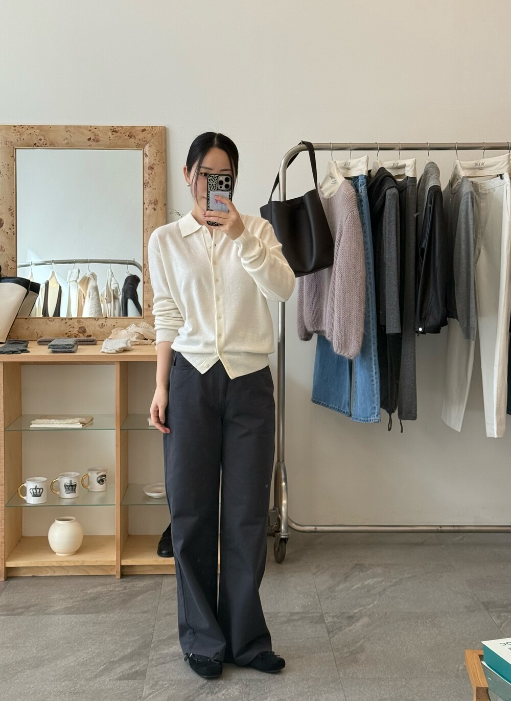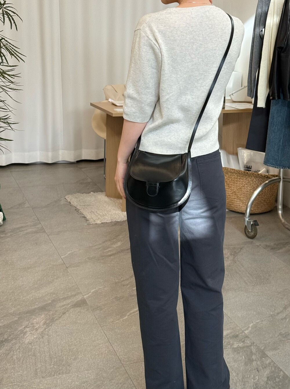 힙 라인은 과하지 않게 정리되고, 허벅지부터 스트레이트로 떨어지는 실루엣이라 체형을 자연스럽게 보정해줘요.