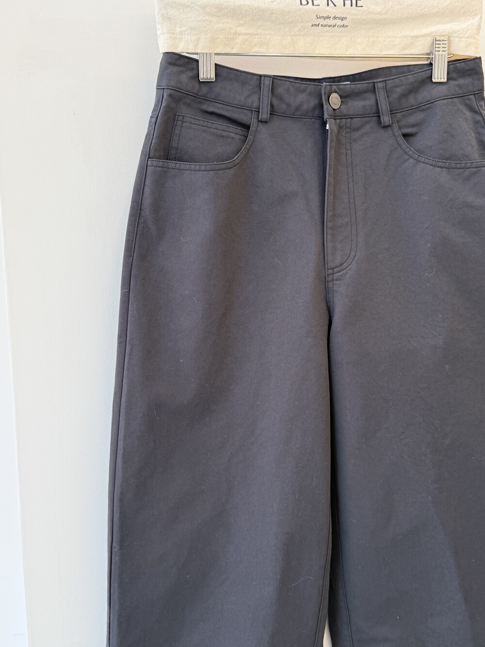 슬림 핏의 코튼 팬츠입니다.