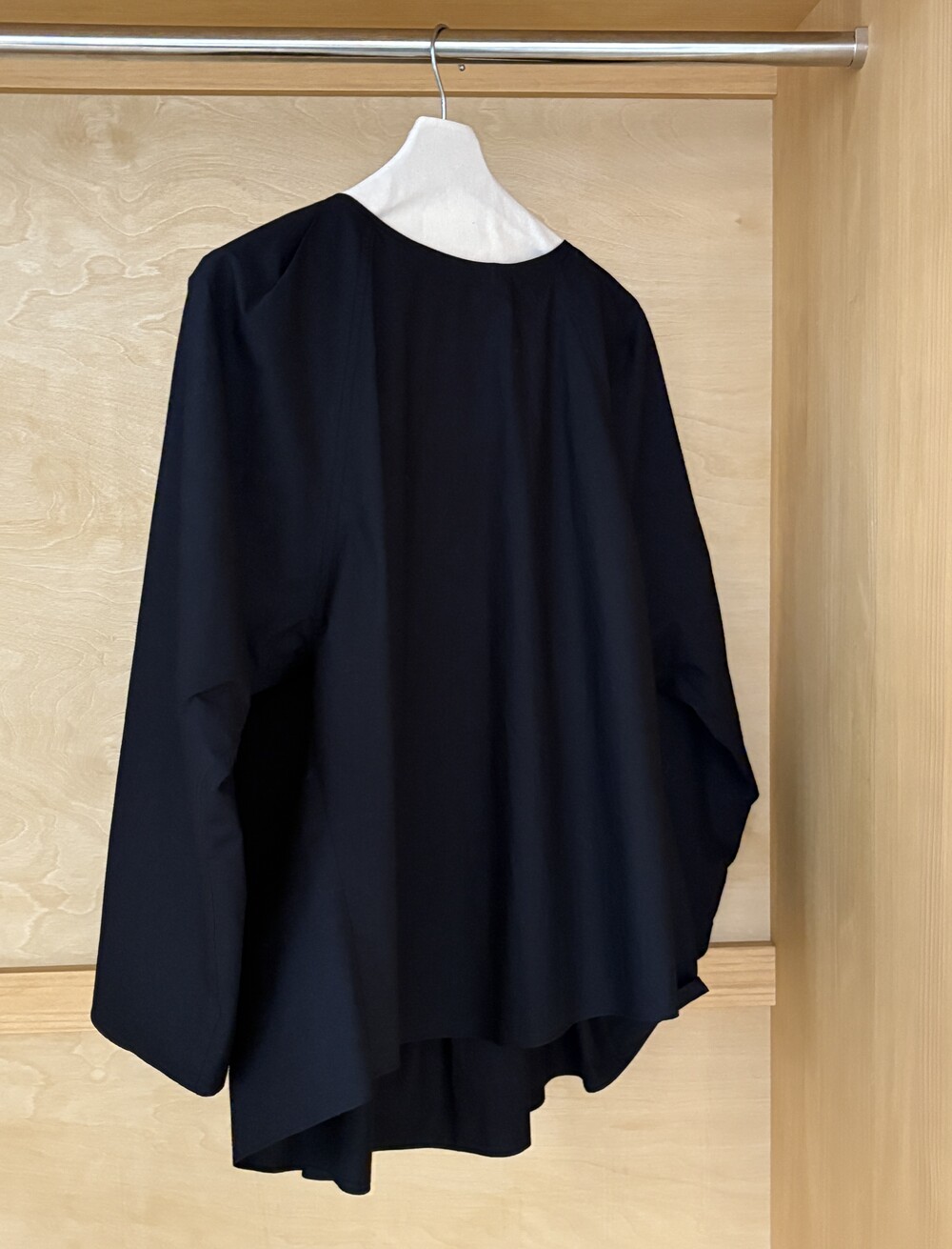 얇은 원단이라 여름에는 소매를 돌돌 말아 반팔로 입고 겨울에는 얇은 터틀을 레이어드해서 입었던 제품입니다.