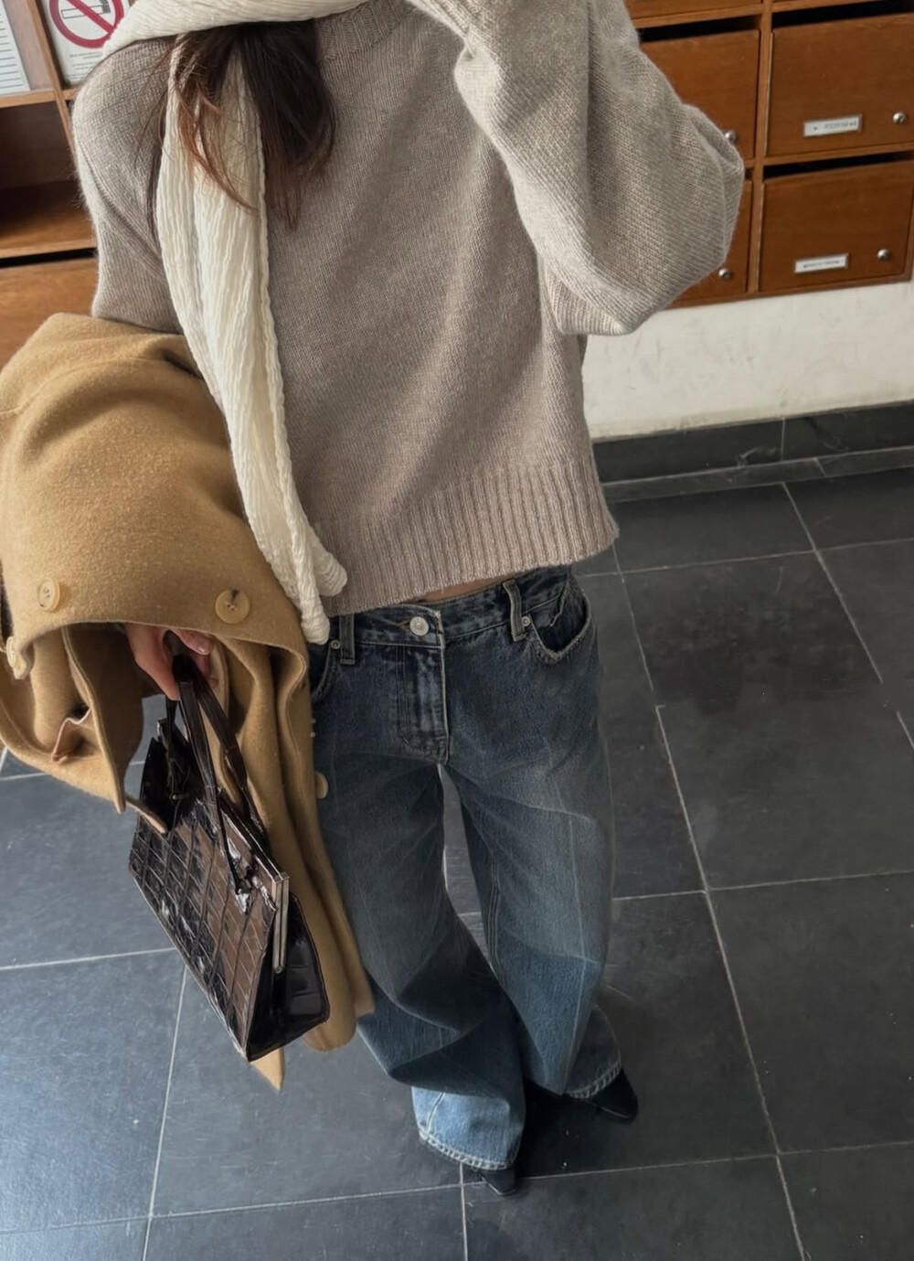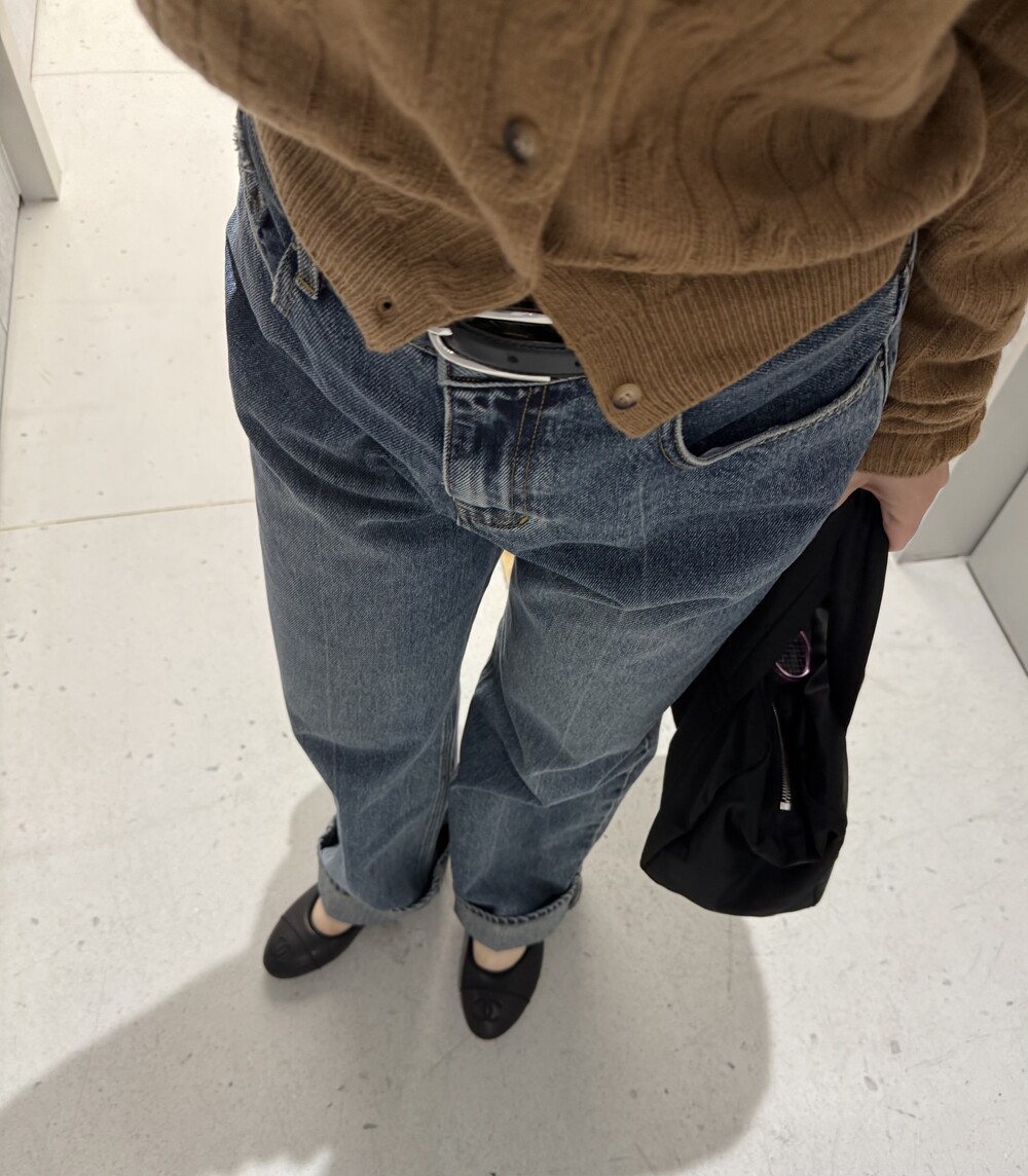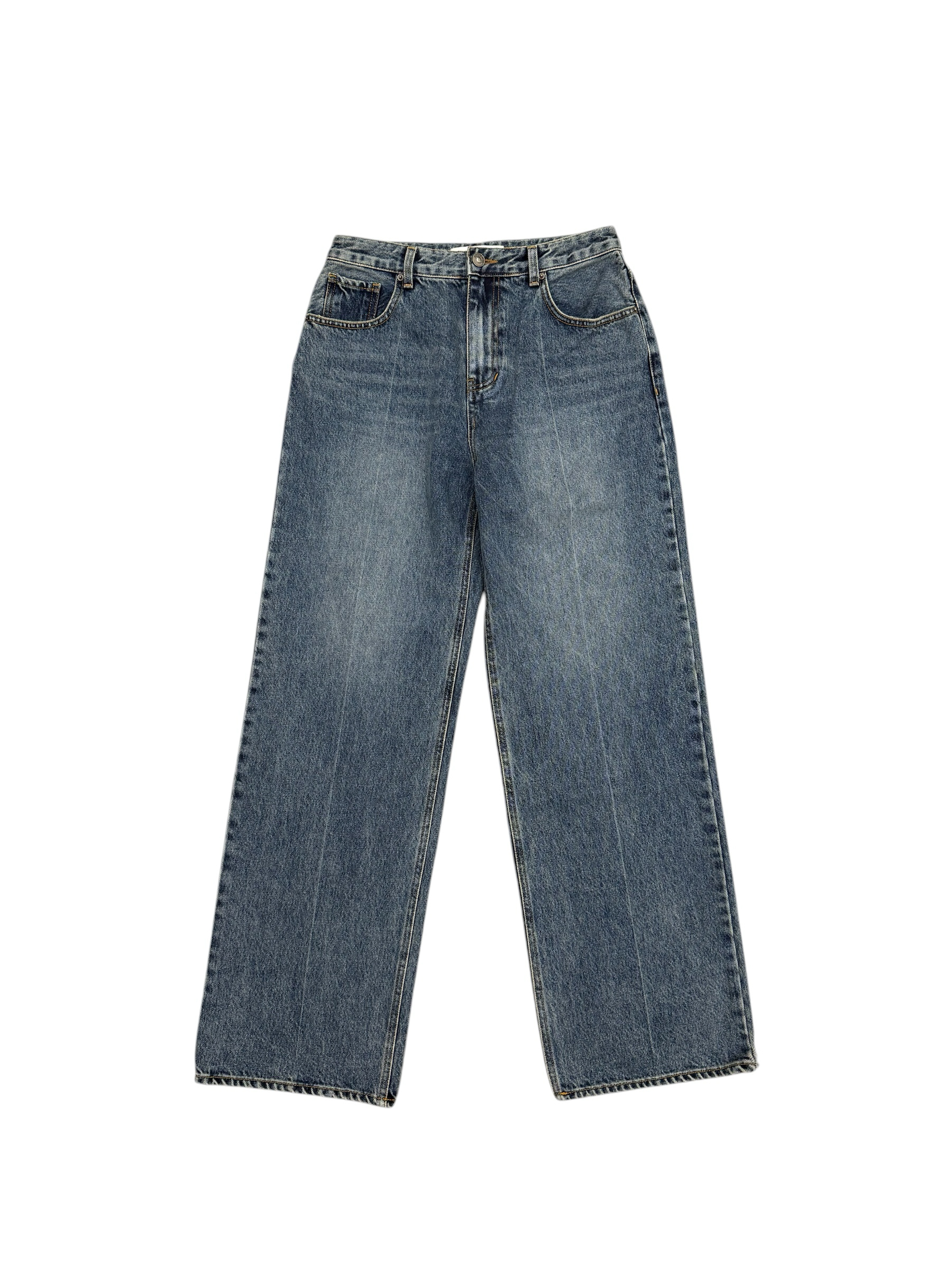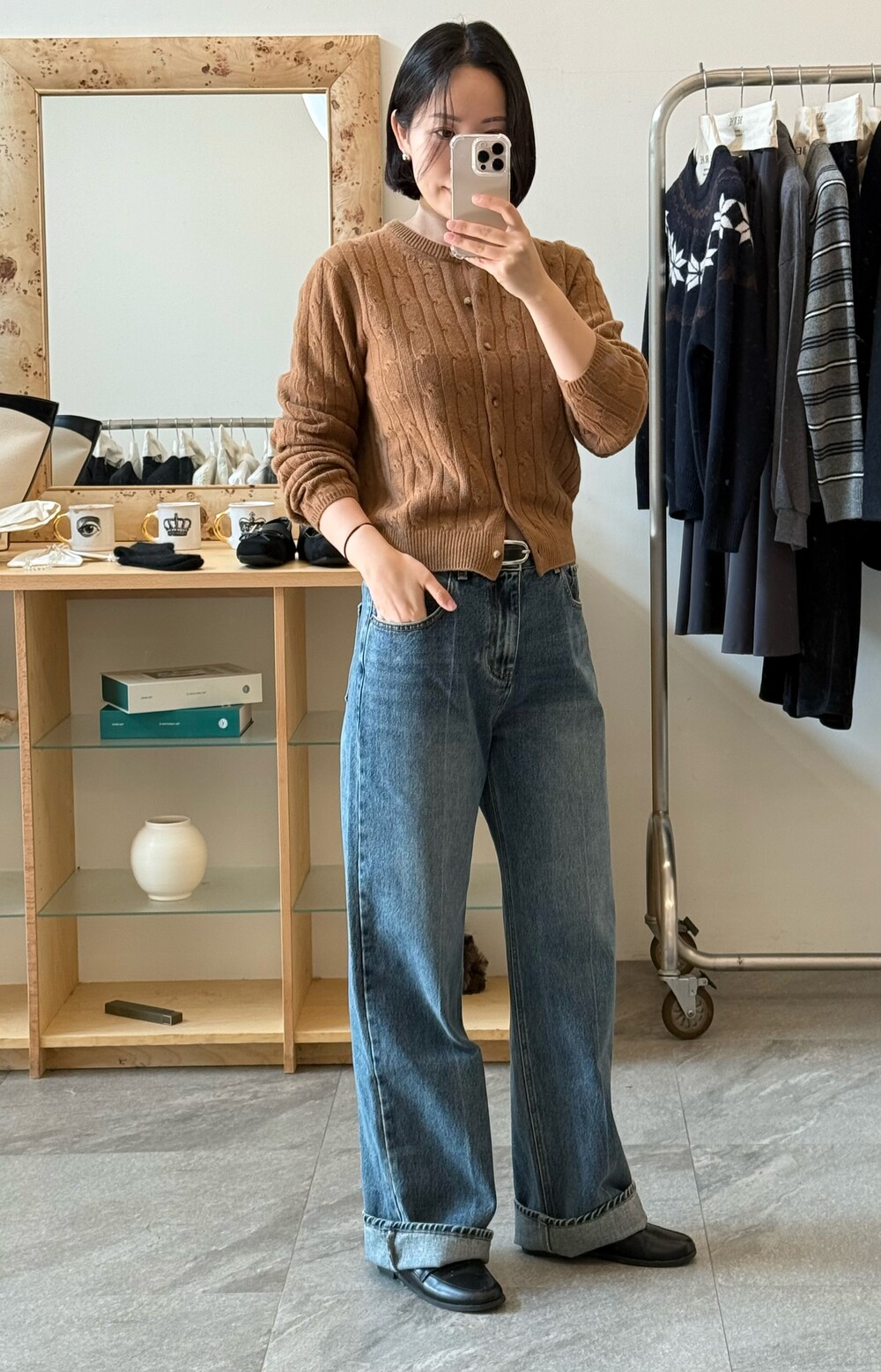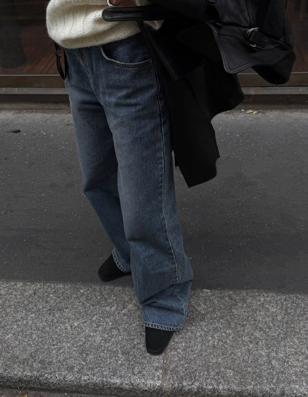직선적인 워싱과 구조적인 실루엣이 매력적인 toms denim 입니다. 허벅지부터 무릎 아래까지 자연스러운 세미 와이드핏 팬츠로 제작 되었습니다. 앞 부분 직선 워싱은 다리 라인 길어보이는 효과를 줍니다. 중청톤의 베이스로 은은한 느낌으로 다양한 상의와 조화롭습니다. 스판 없는 코튼 베이스 팬츠이며 라쿤 울 소재가 섞여 겨울 내내 활용하기 좋은 데님입니다.