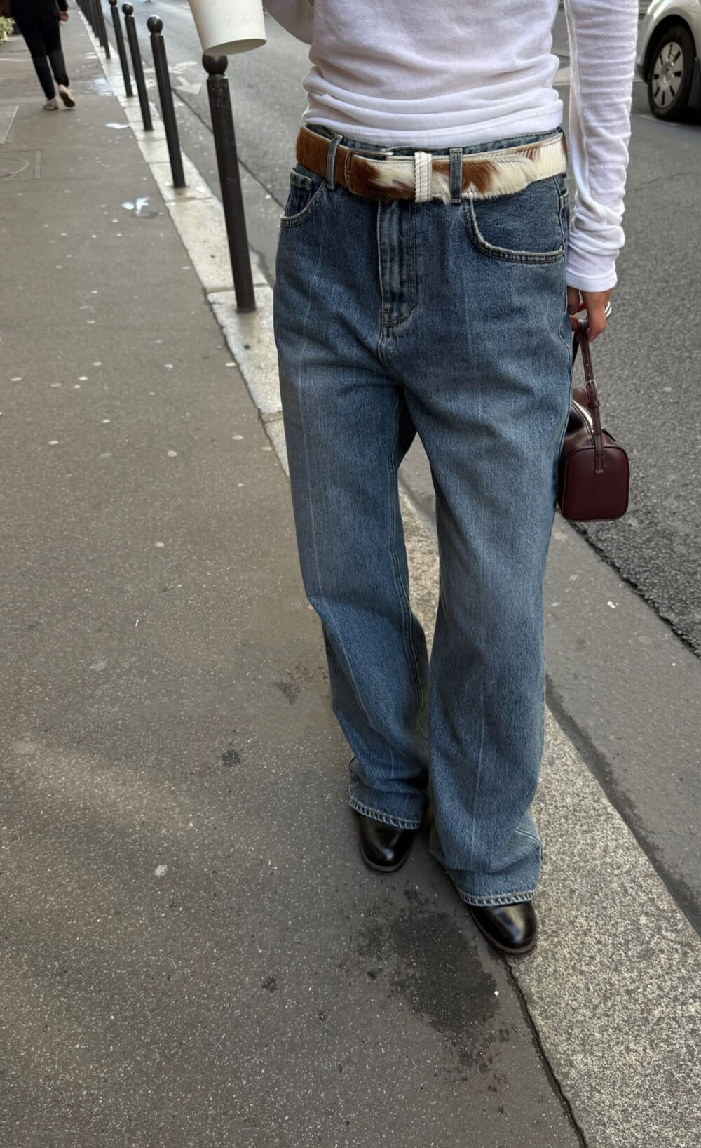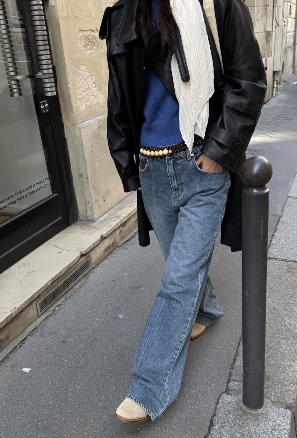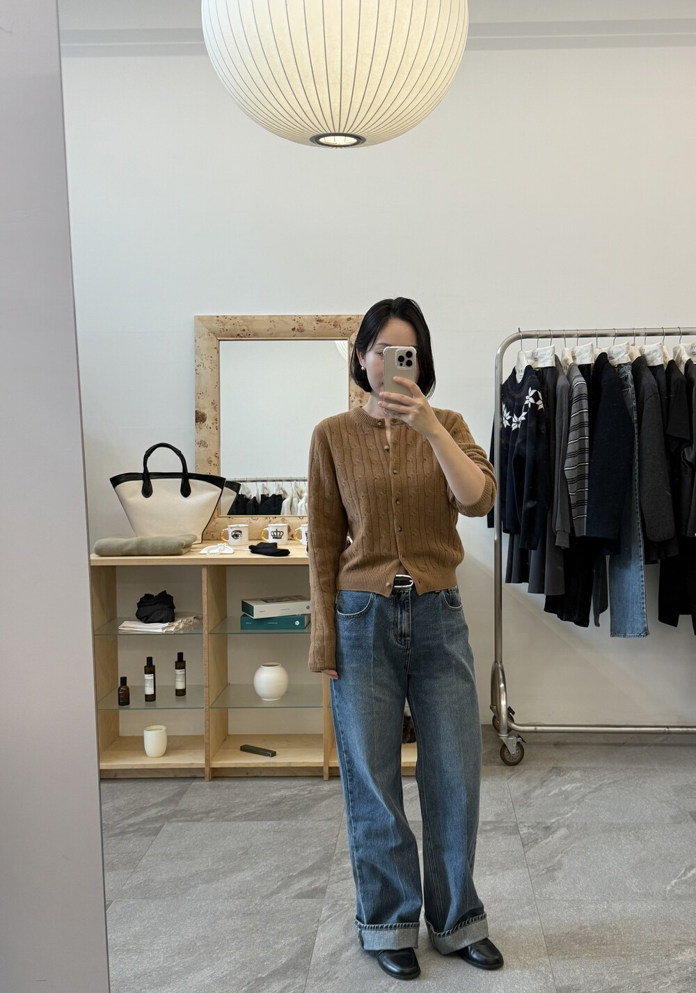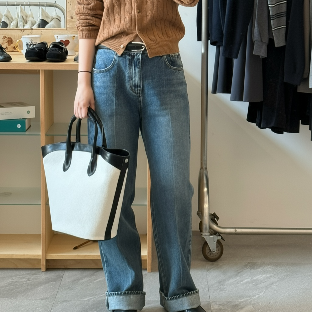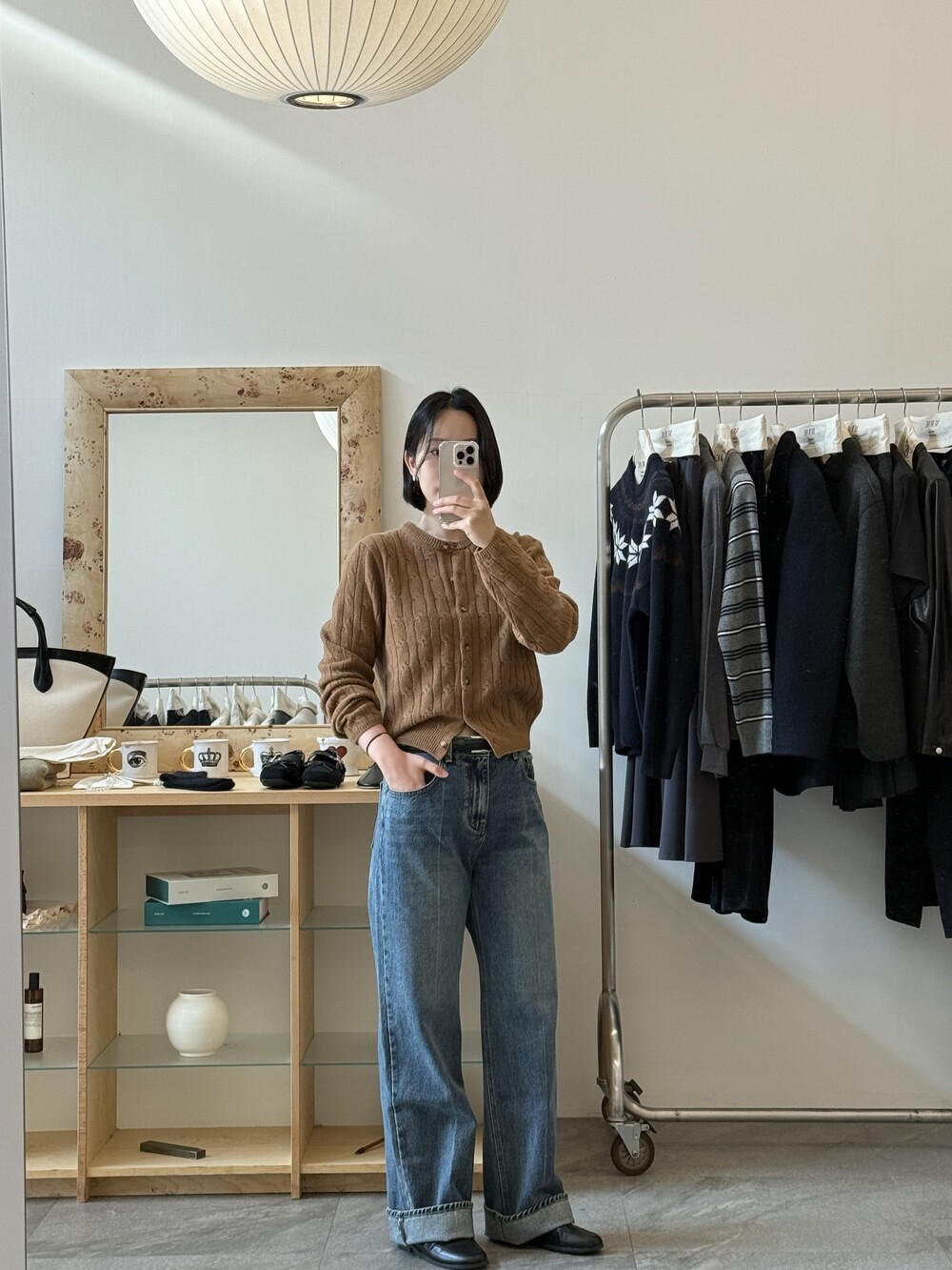 직선적인 워싱과 구조적인 실루엣이 매력적인 toms denim 입니다. 허벅지부터 무릎 아래까지 자연스러운 세미 와이드핏 팬츠로 제작 되었습니다. 앞 부분 직선 워싱은 다리 라인 길어보이는 효과를 줍니다. 중청톤의 베이스로 은은한 느낌으로 다양한 상의와 조화롭습니다. 스판 없는 코튼 베이스 팬츠이며 라쿤 울 소재가 섞여 겨울 내내 활용하기 좋은 데님입니다.
