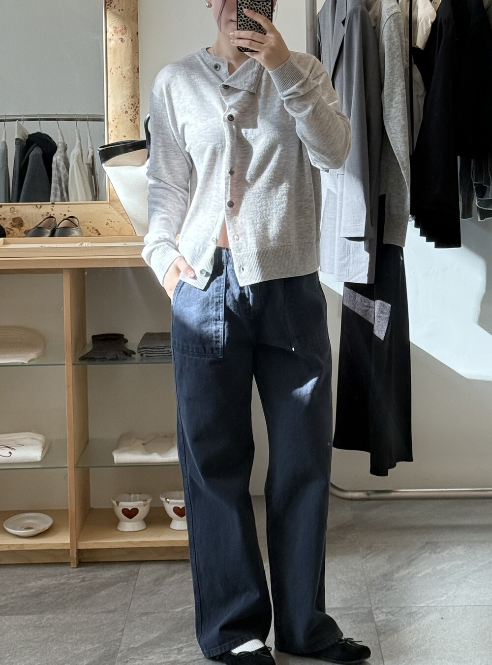 자연스럽게 떨어지는 드레이프 덕분에 가디건과 자켓 중간의 느낌으로 연출 가능해요!