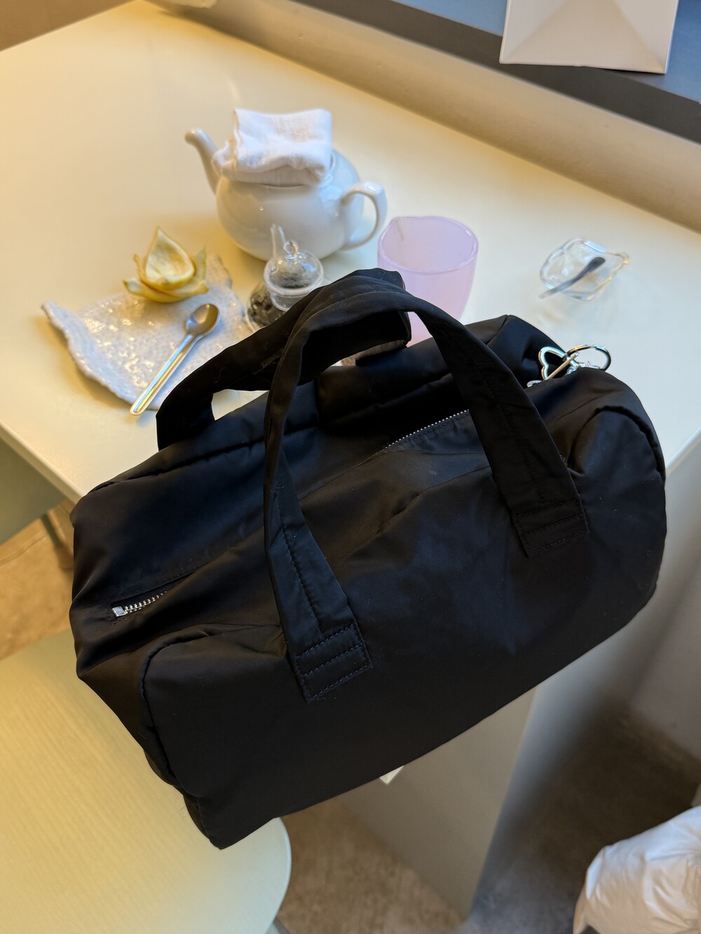 가죽 가방 말고 에코백보단 격식있는 백을 하나 갖고 싶었는데 일상 룩에도 잘 어울리고 운동할때도 활용도 좋아서 잘 매칭하고 있습니다.