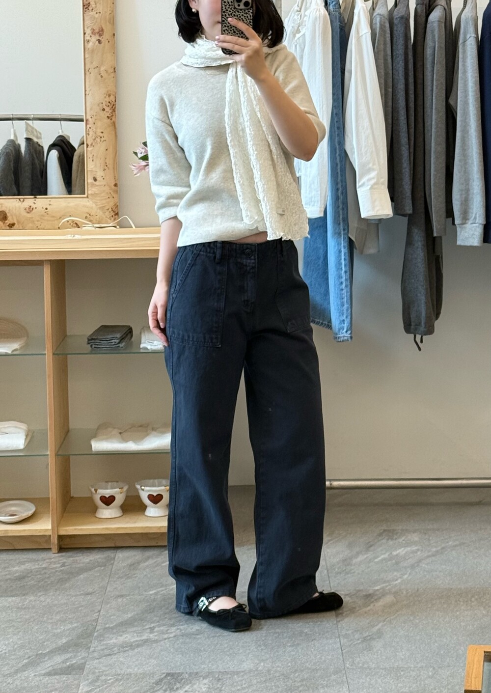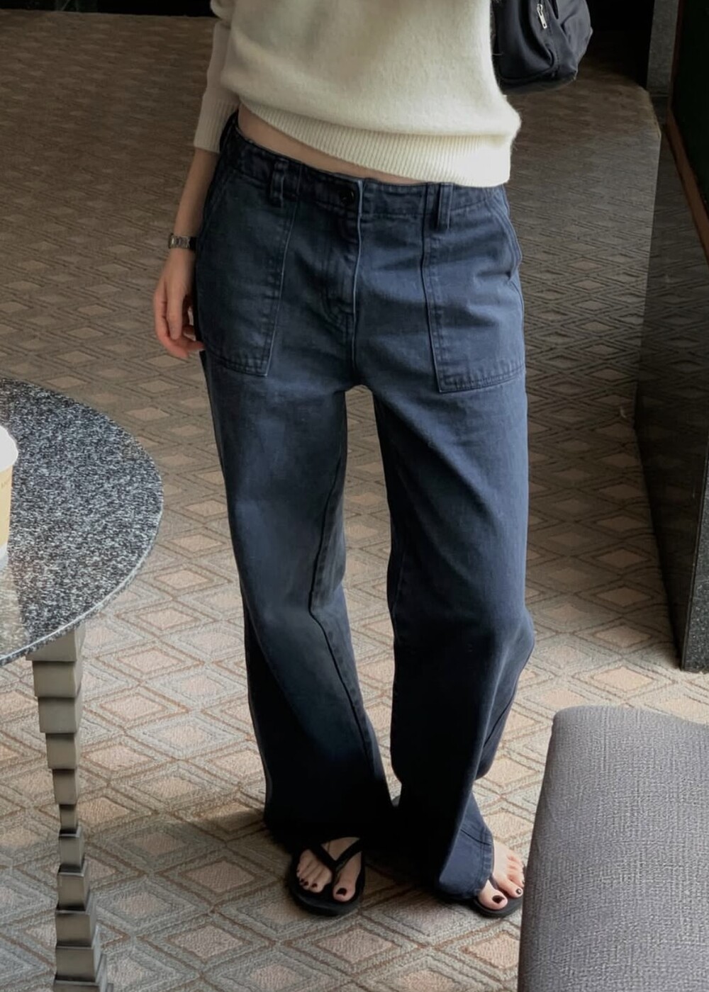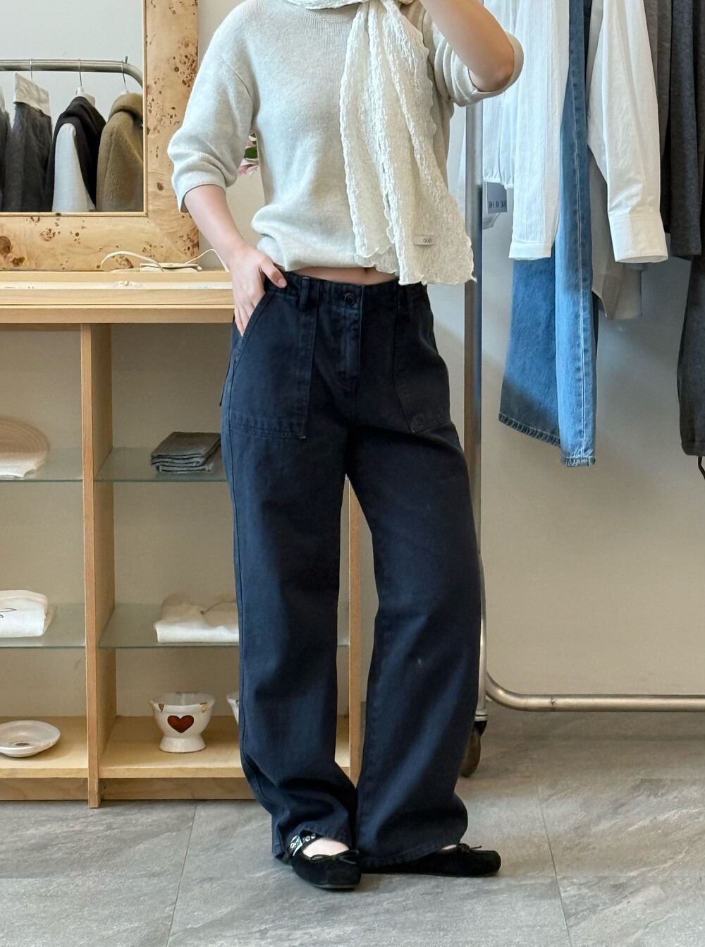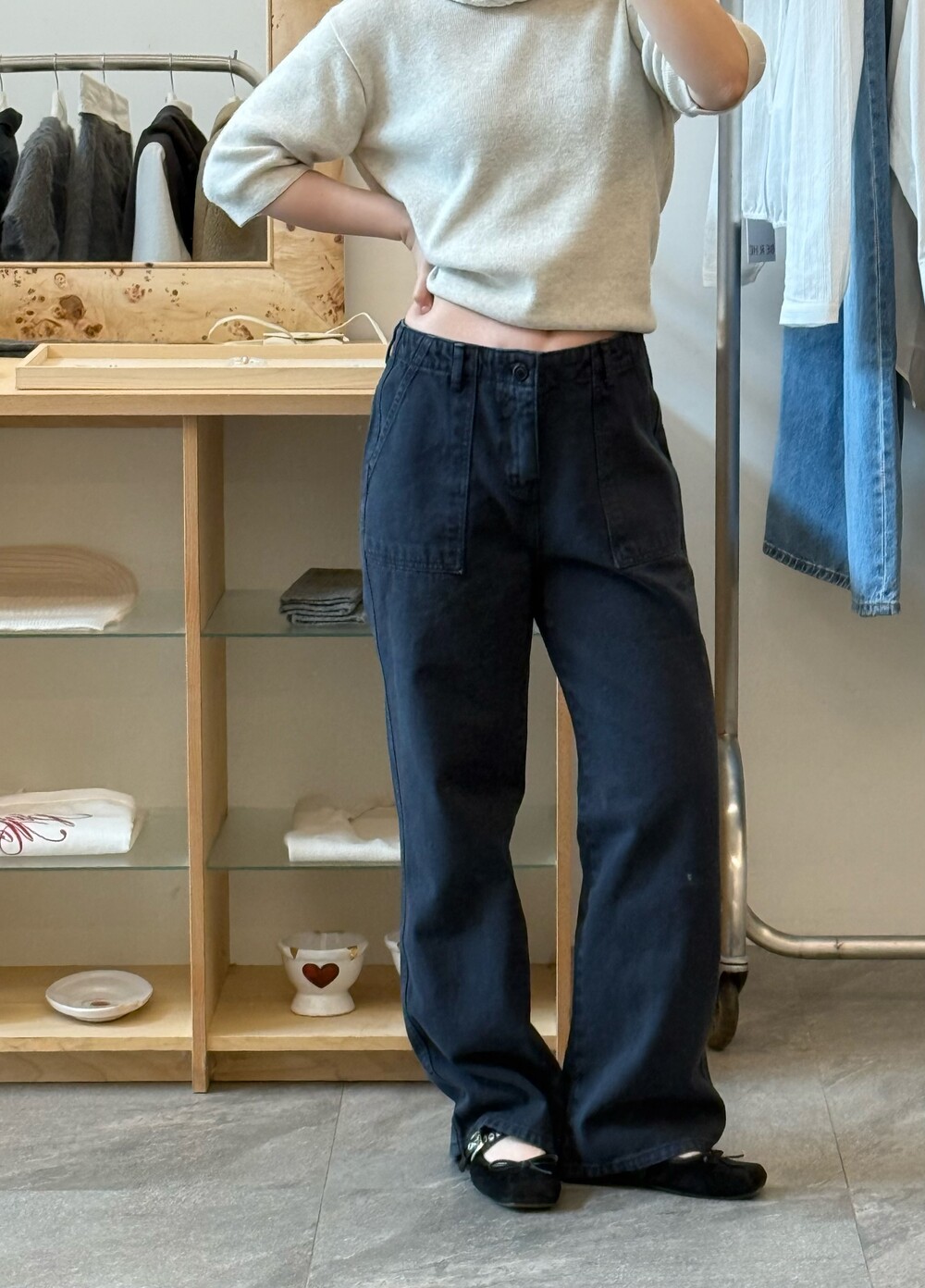 앞 사이드에 더해진 포켓 디테일이 확실한 포인트가 되어주는데, 일반 데님보다 감도 있는 무드르 만들어줘요.