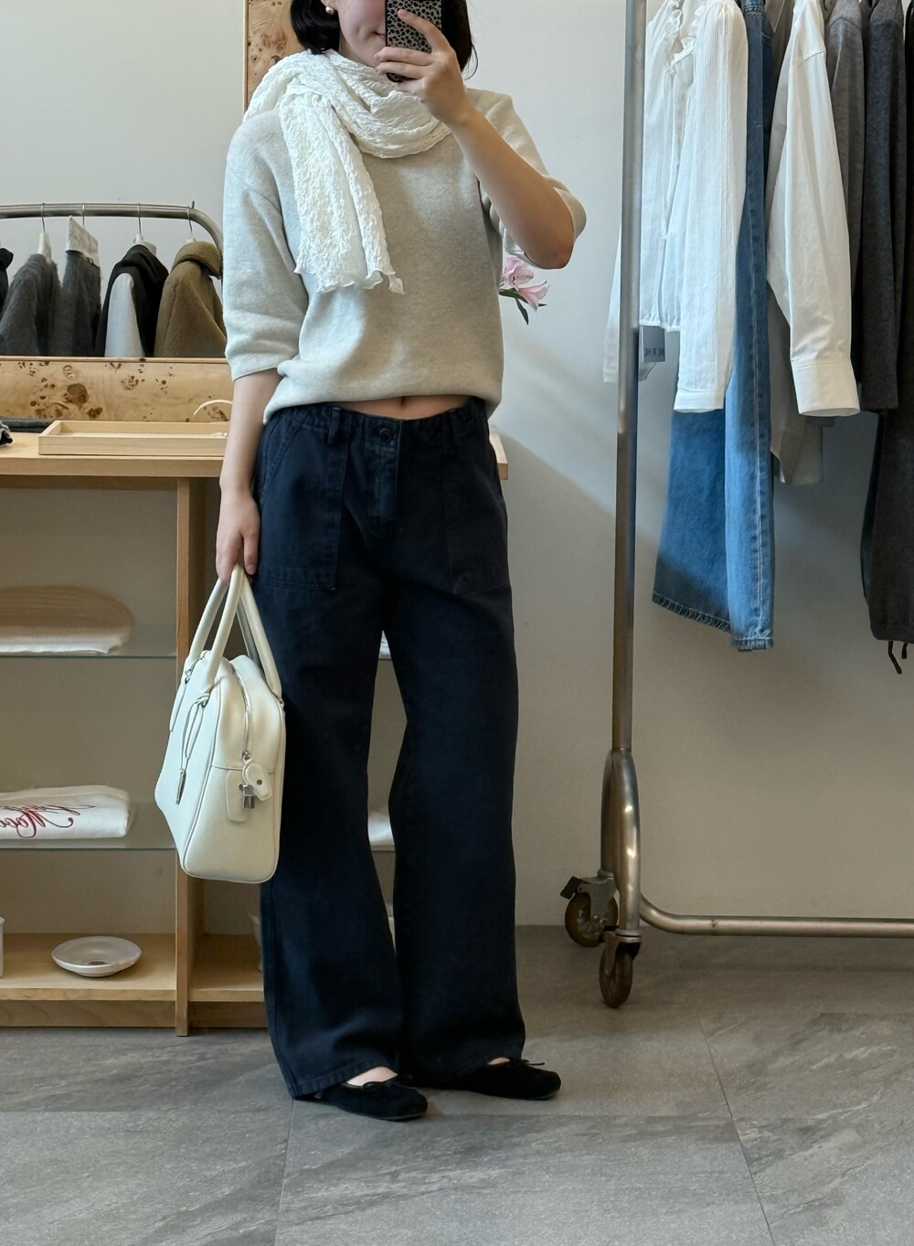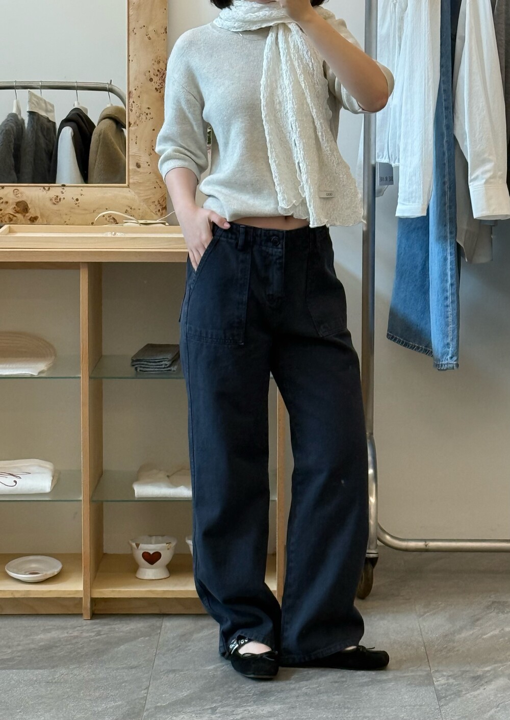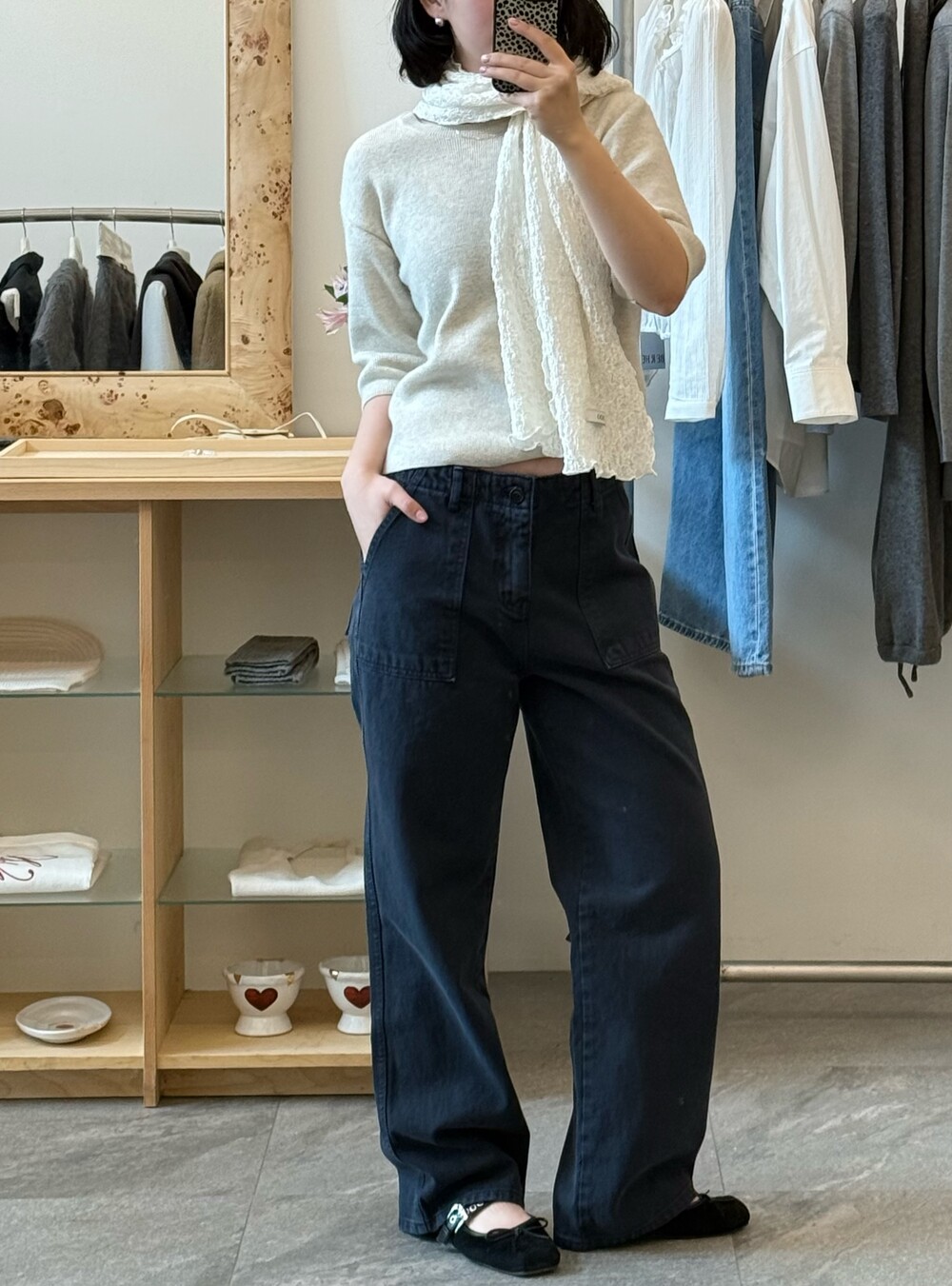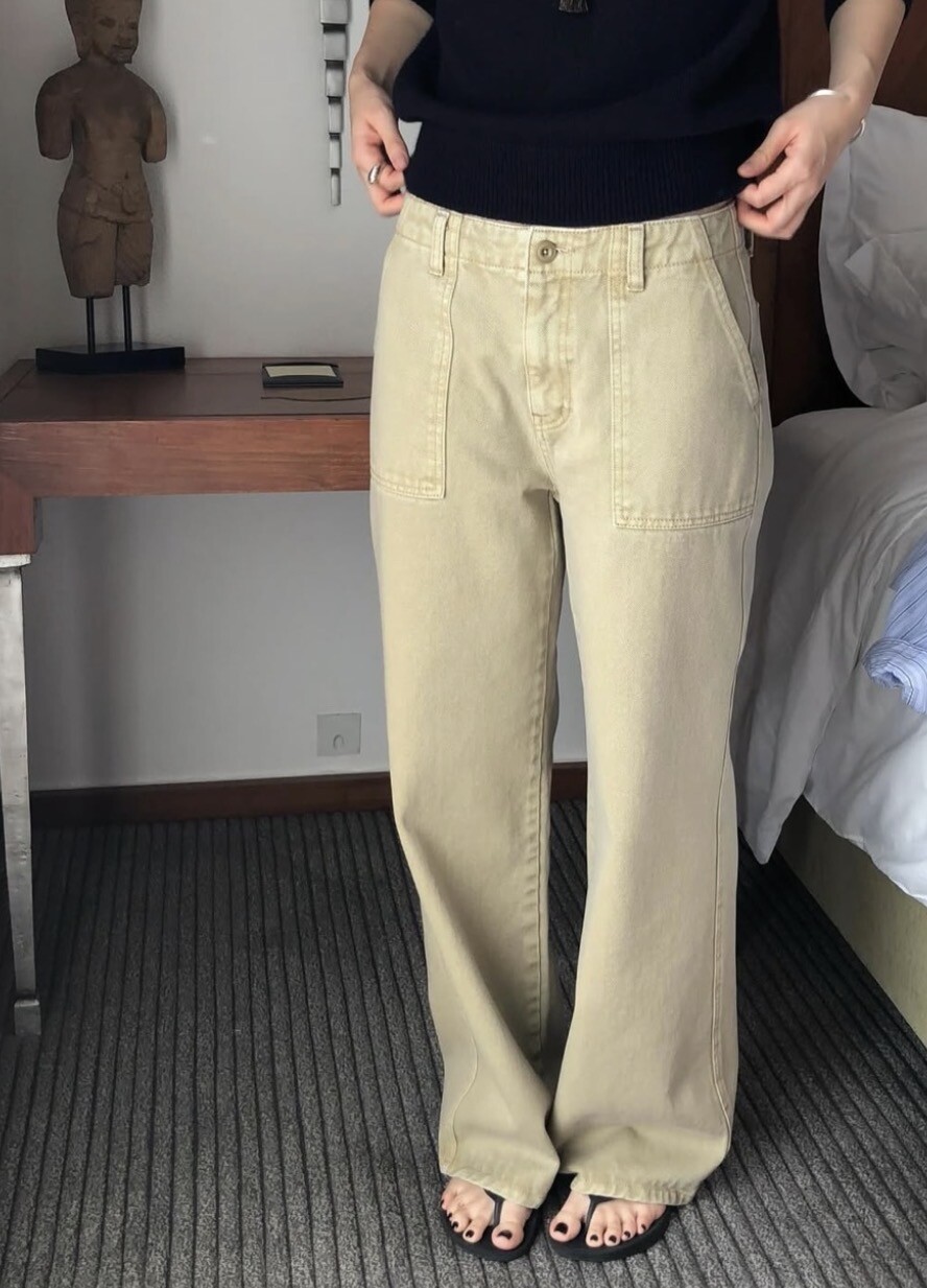 앞 사이드에 더해진 포켓 디테일이 확실한 포인트가 되어주는데, 일반 데님보다 감도 있는 무드르 만들어줘요.