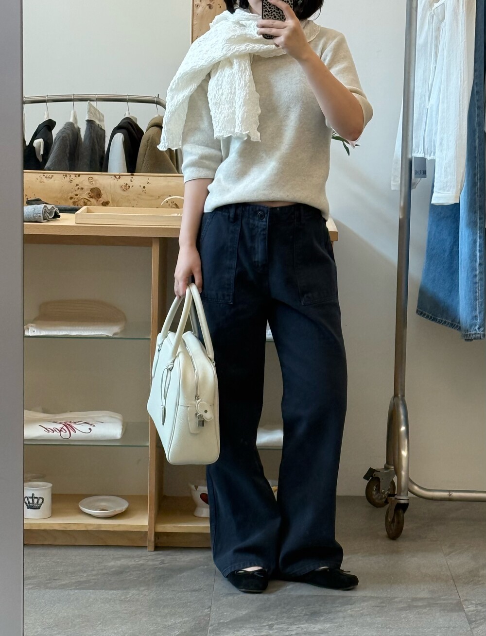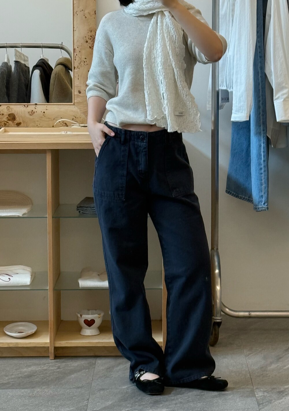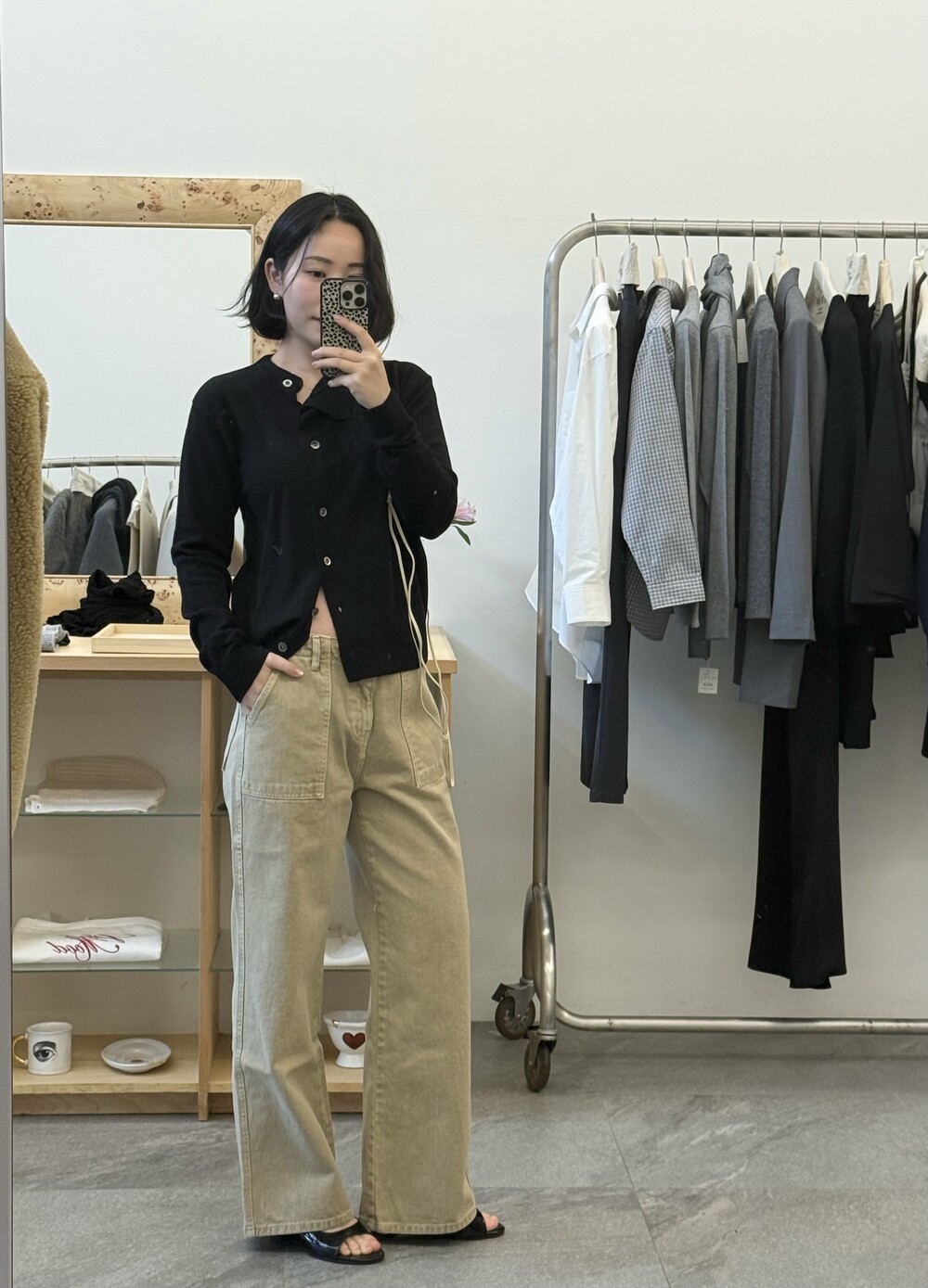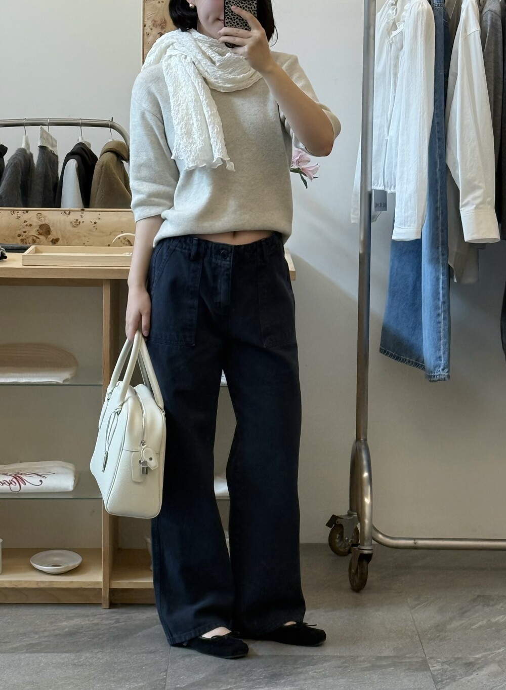 앞 사이드에 더해진 포켓 디테일이 확실한 포인트가 되어주는데, 일반 데님보다 감도 있는 무드르 만들어줘요.