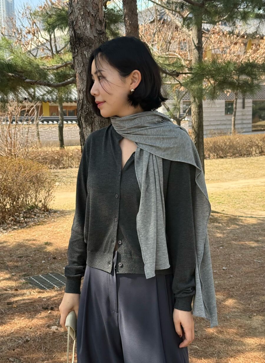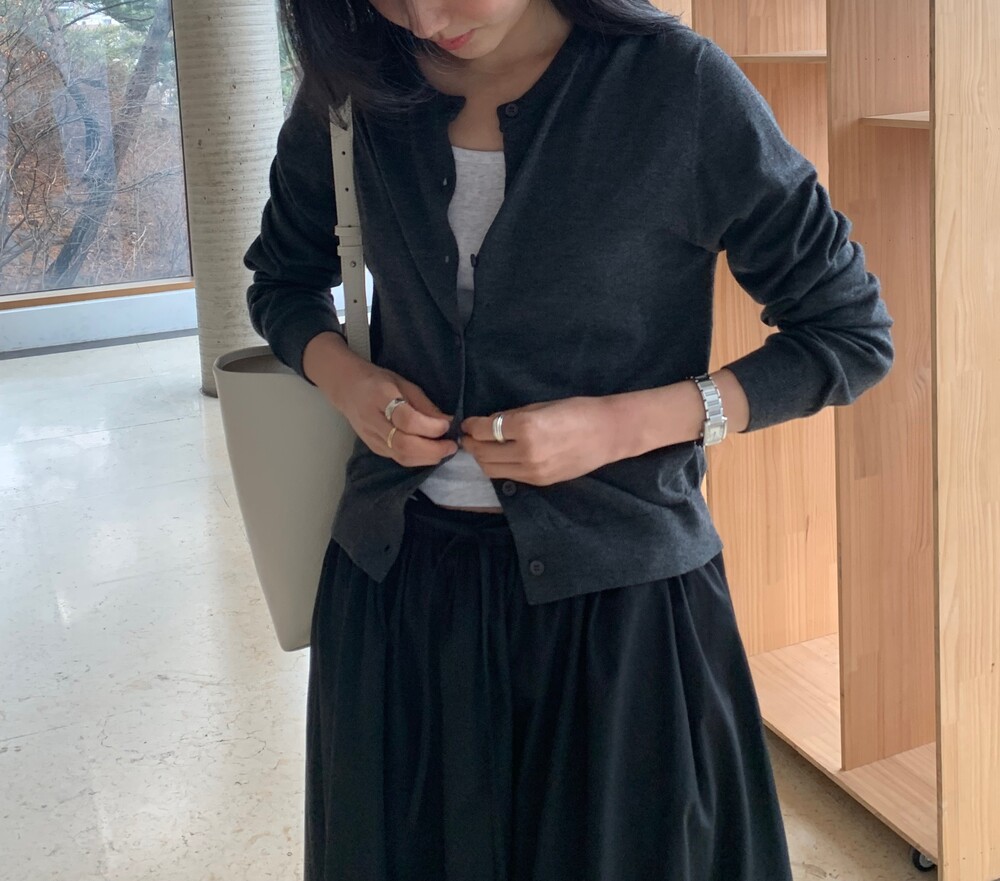 얇은 게이지로 완성된 울 실크 가디건입니다.
