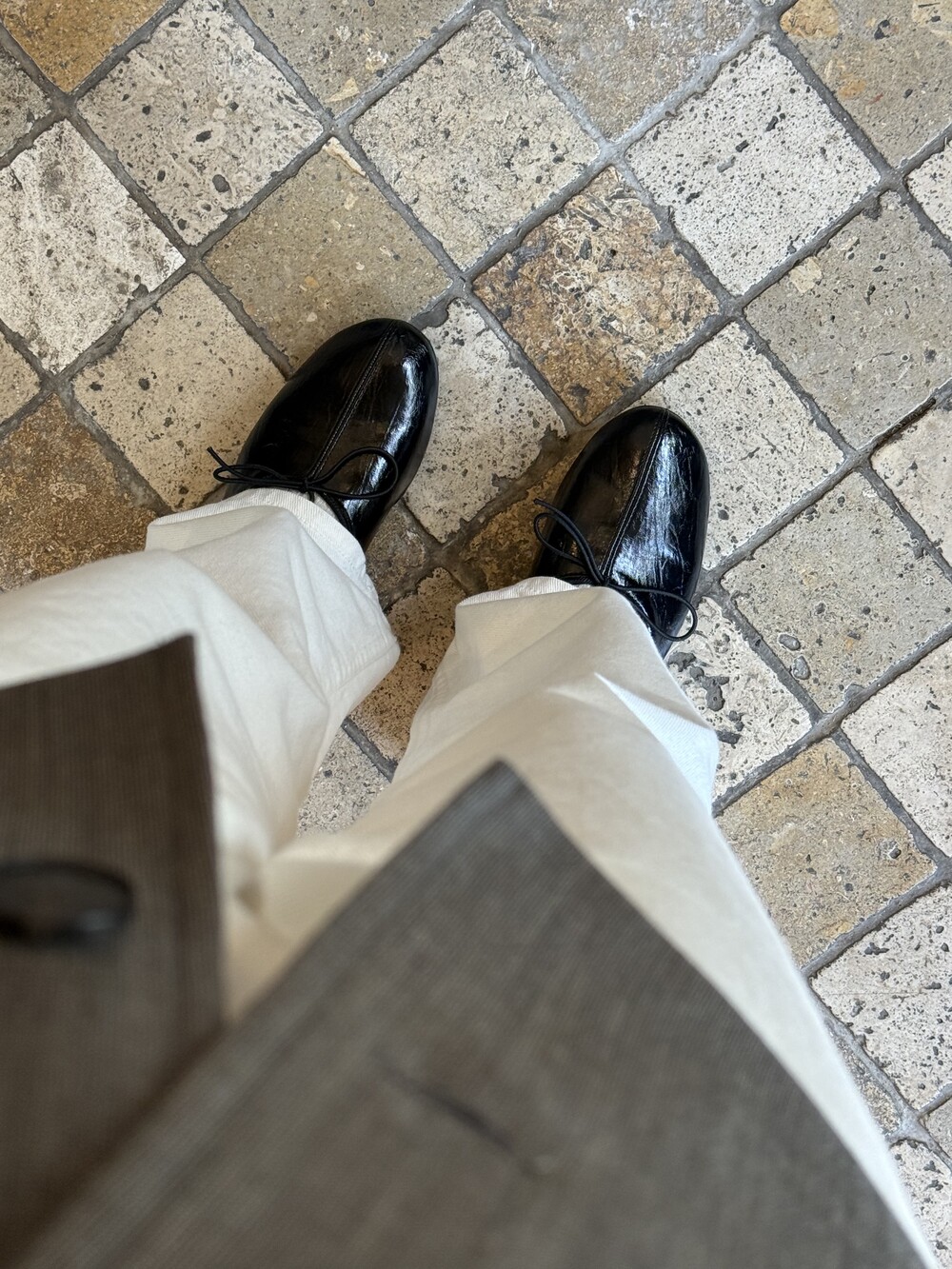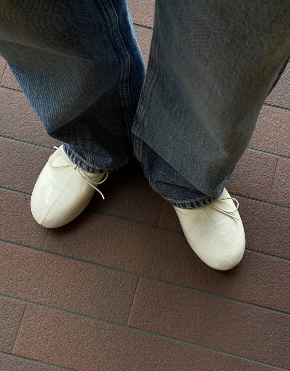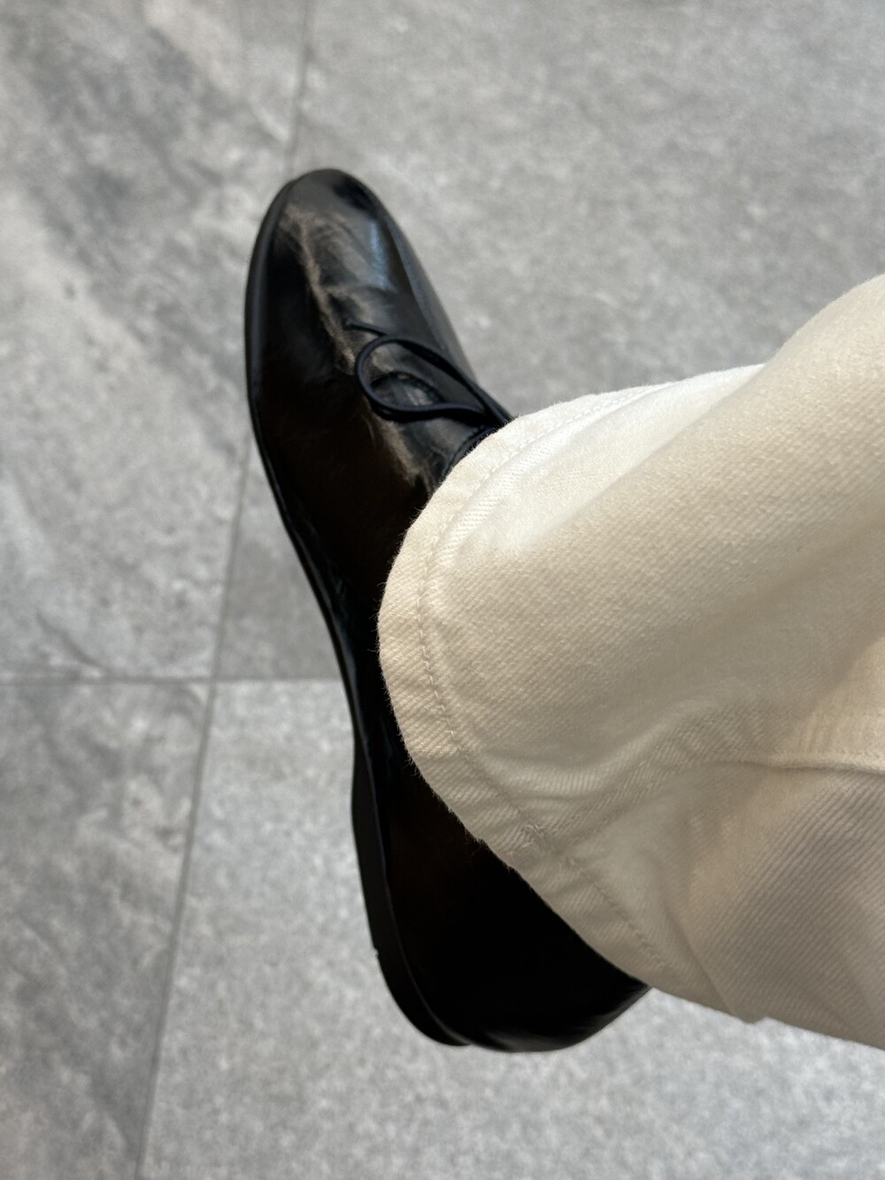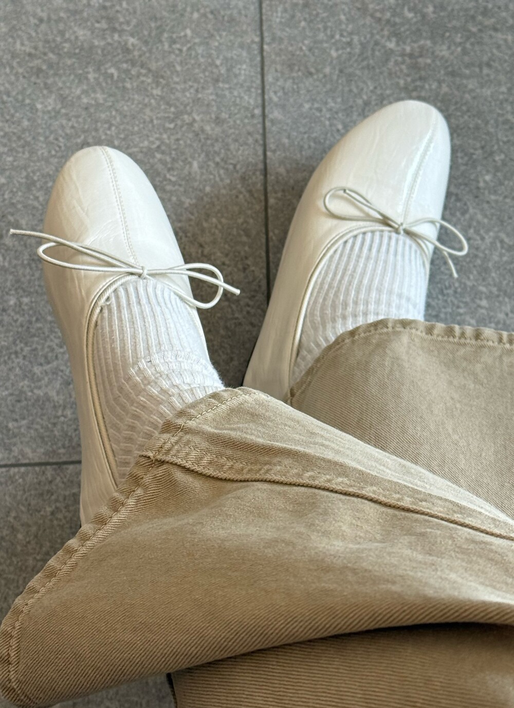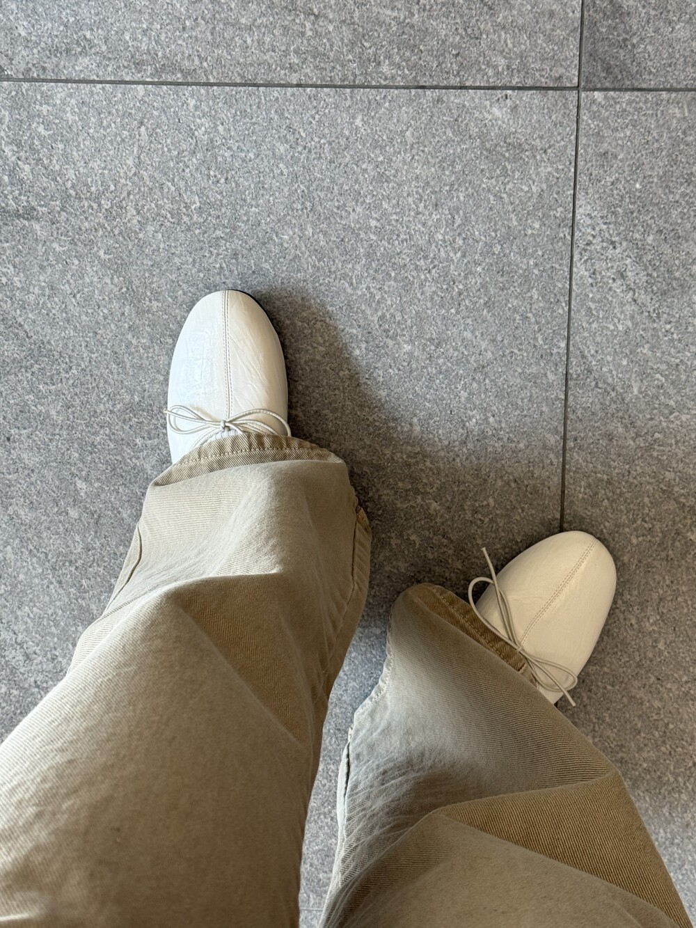 둥글게 떨어지는 토 쉐입에 얇은 리본 디테일을 더해 단정하면서도 여성스러운 인상을 주고, 은은한 광이 감도는 크림 컬러가 발등을 부드럽게 정리해줍니다.