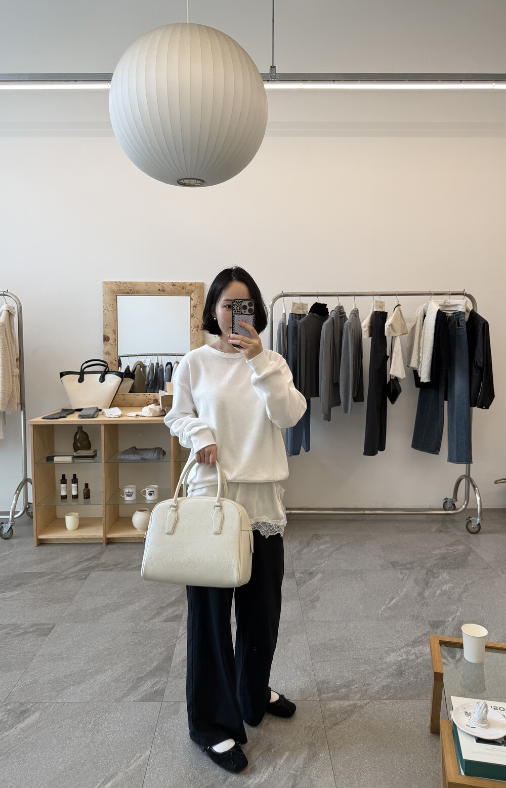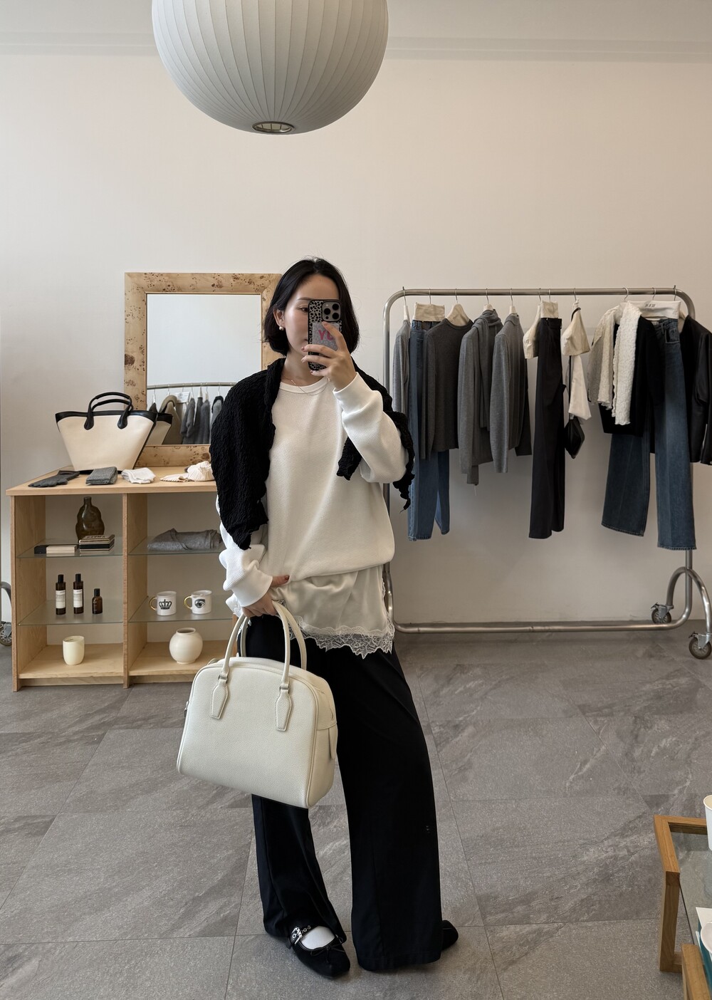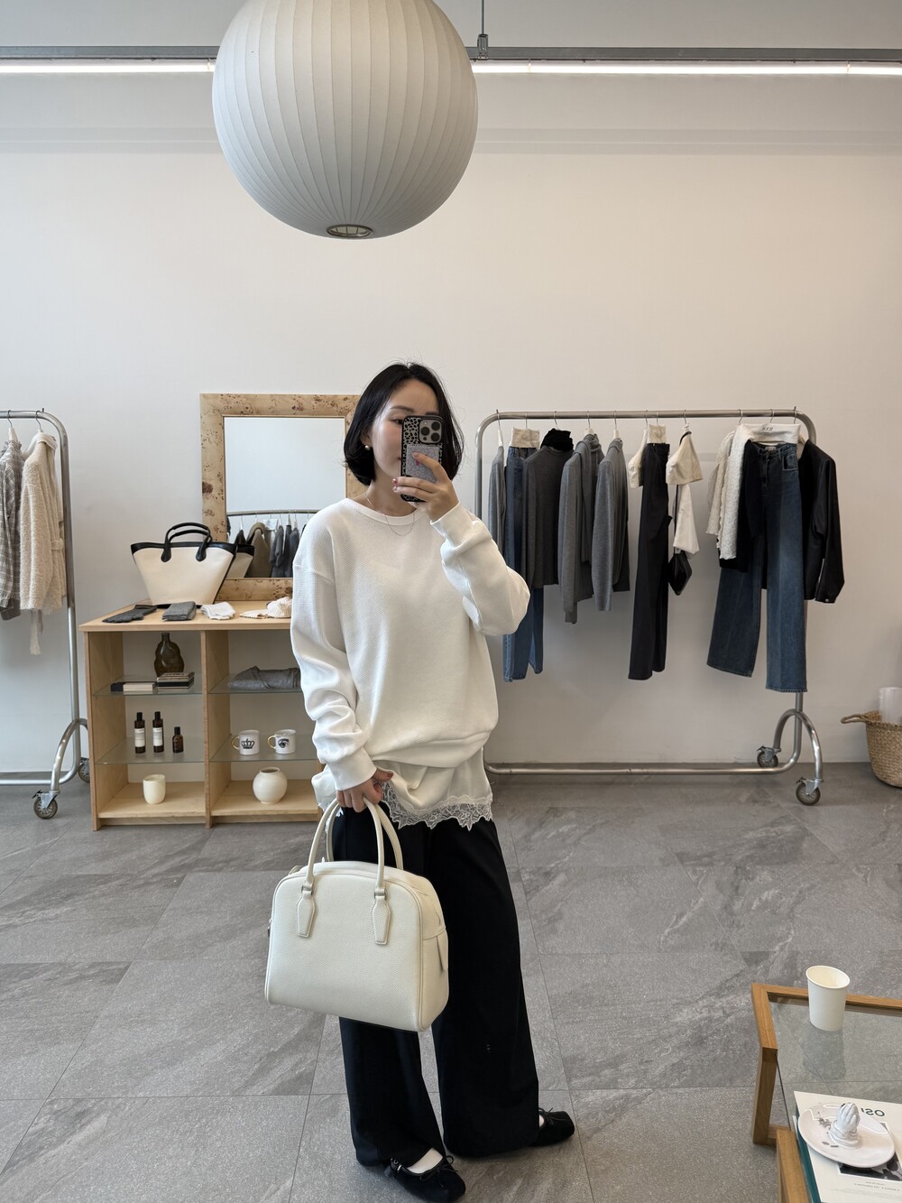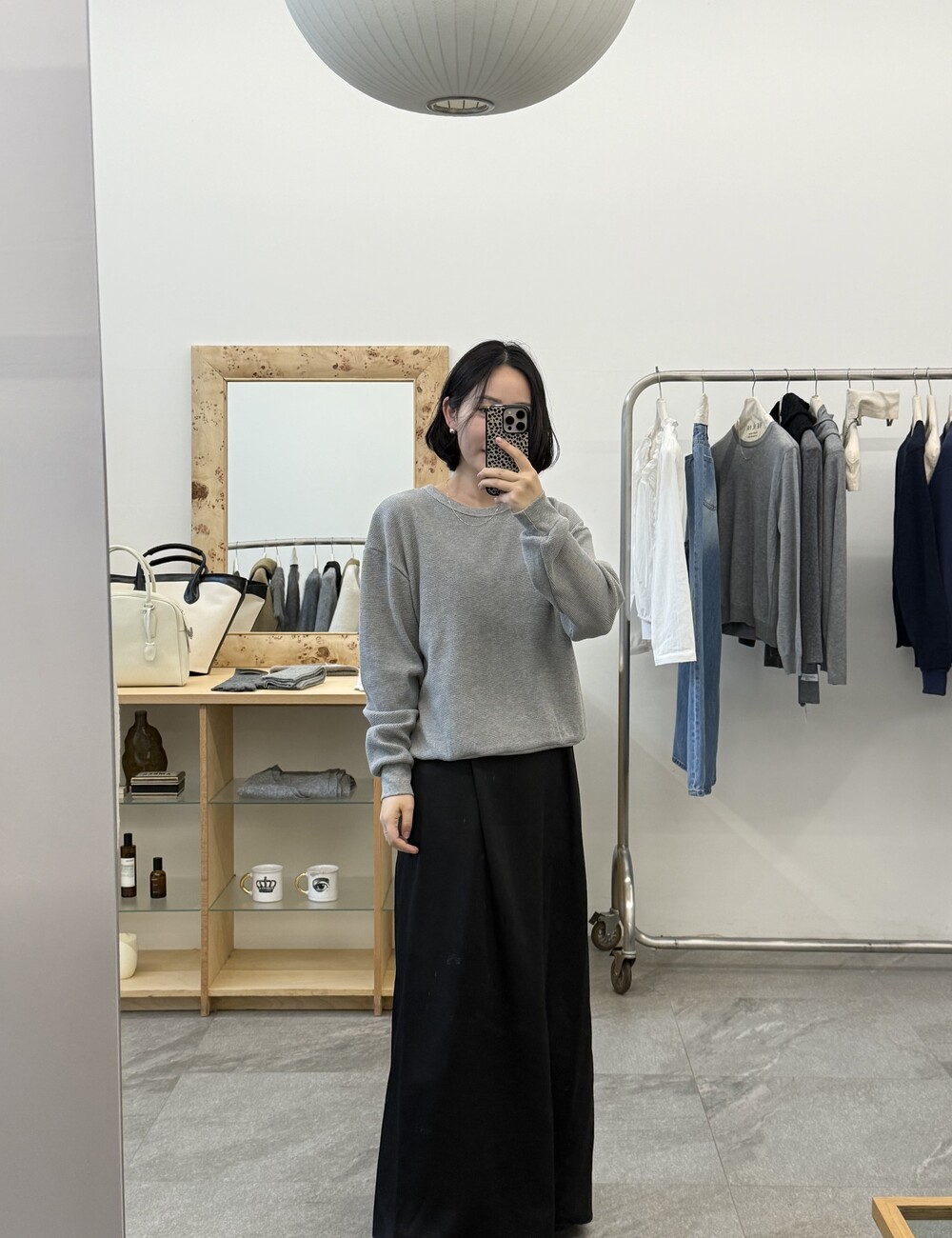 잔잔한 텍스처 덕분에 단독으로 입어도 밋밋하지 않고, 아우터 안에 이너로 매치해도 자연스럽게 존재감이 느껴져요.