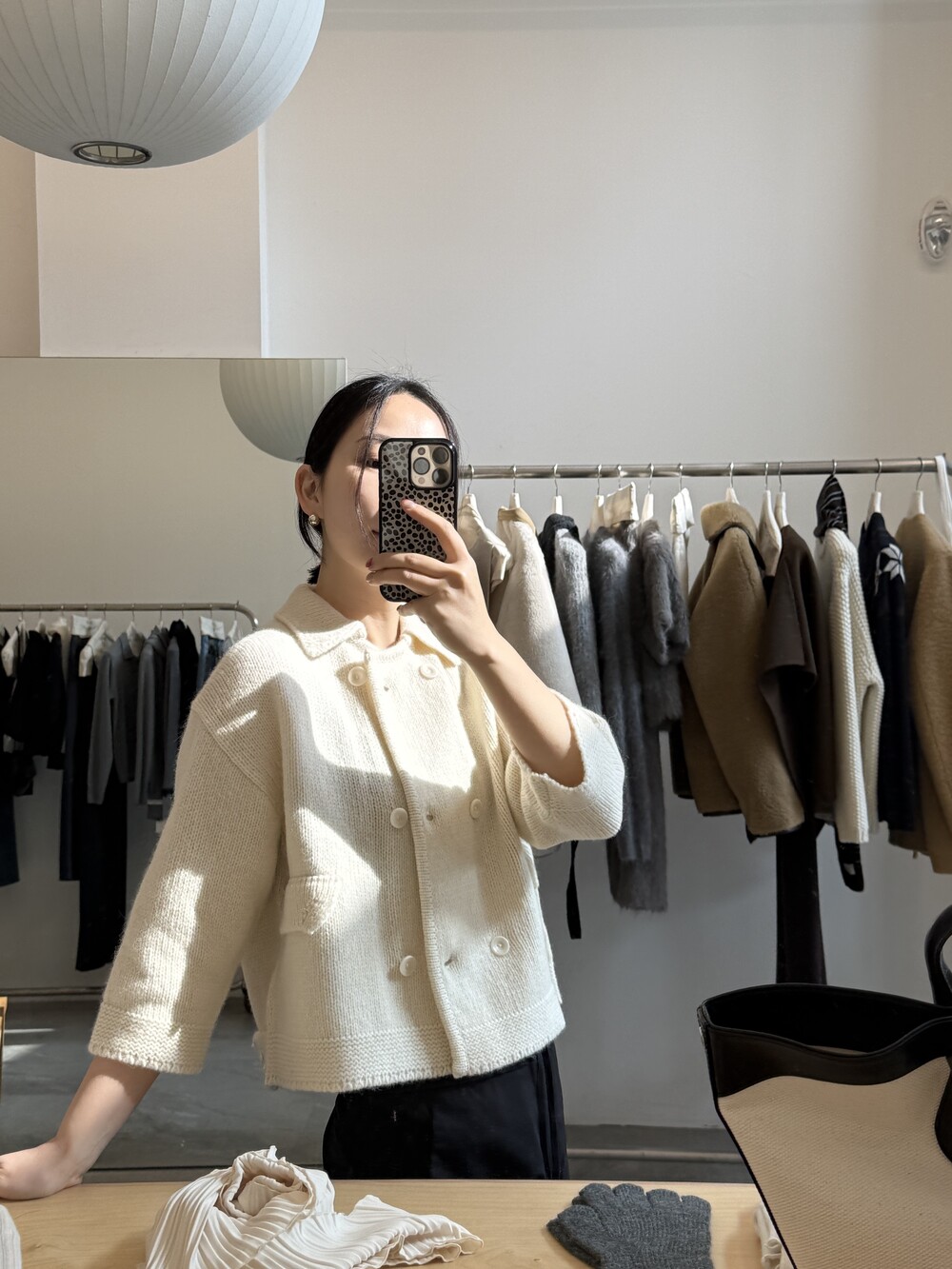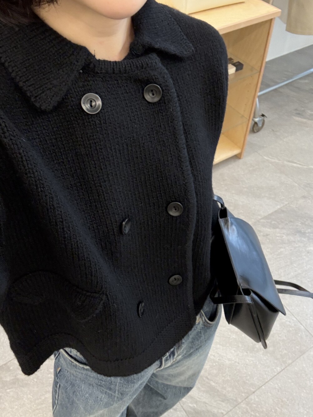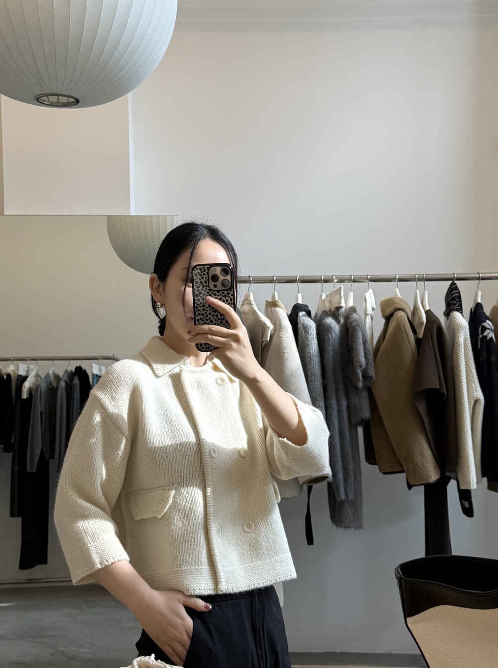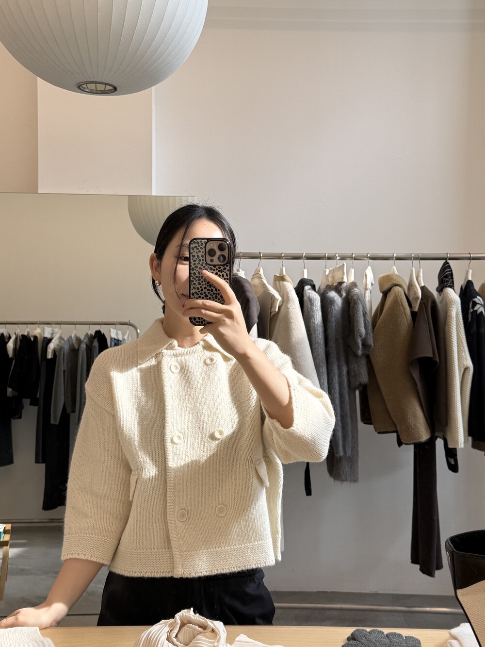 밑단은 탄탄하게 마감해 실루엣이 무너지지 않도록 잡아주었고, 주머니 포켓과 소매 끝단은 니트 조직을 정리해 단정하게 마무리했어요.