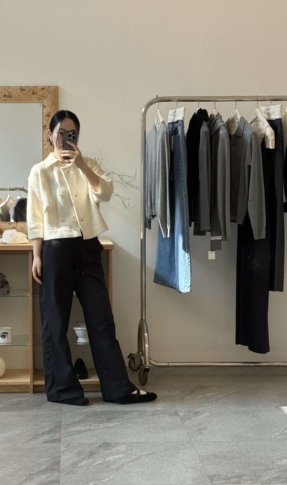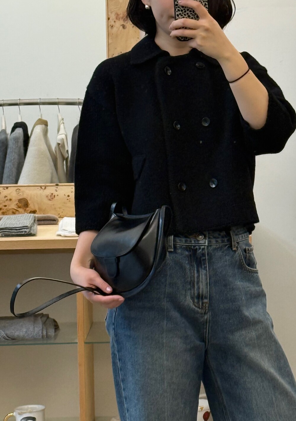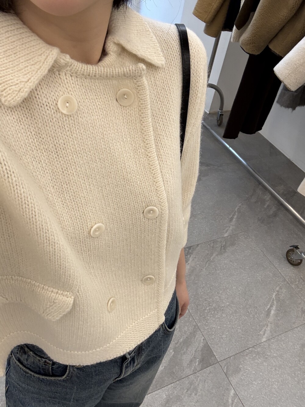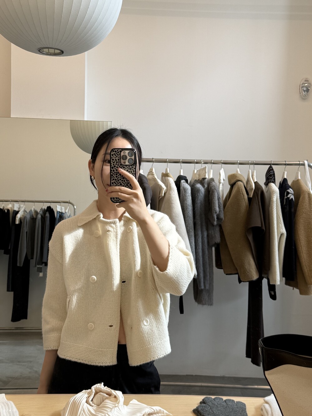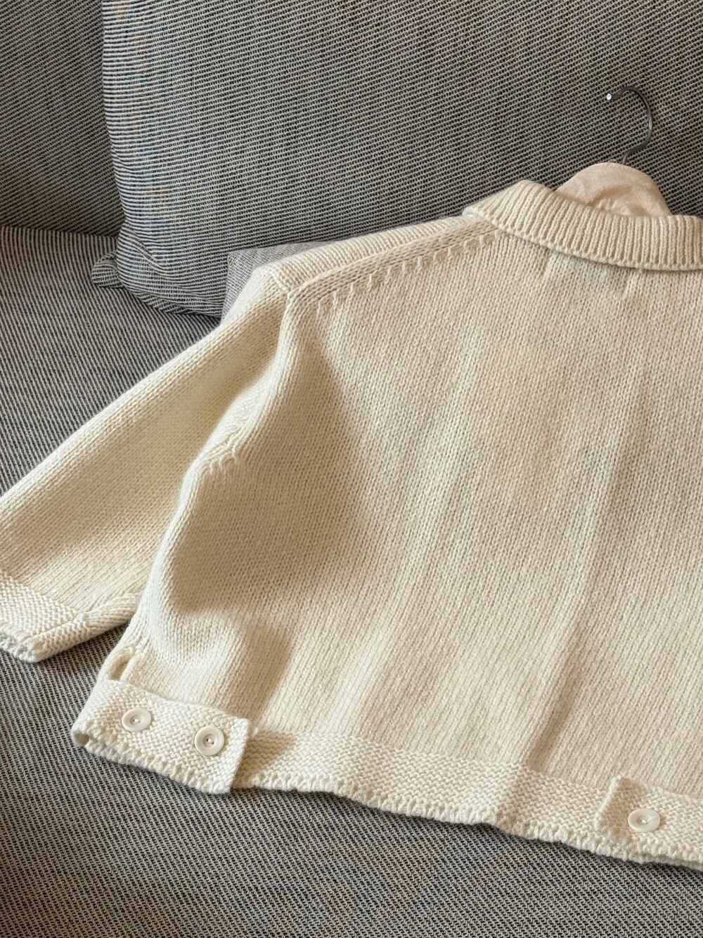 밑단은 탄탄하게 마감해 실루엣이 무너지지 않도록 잡아주었고, 주머니 포켓과 소매 끝단은 니트 조직을 정리해 단정하게 마무리했어요.