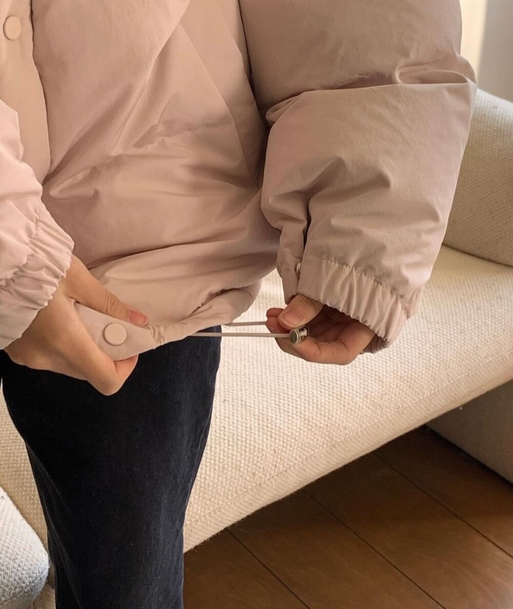 밑단 스트링, 소매 끝 똑딱이로 사이즈 조절이 가능합니다.