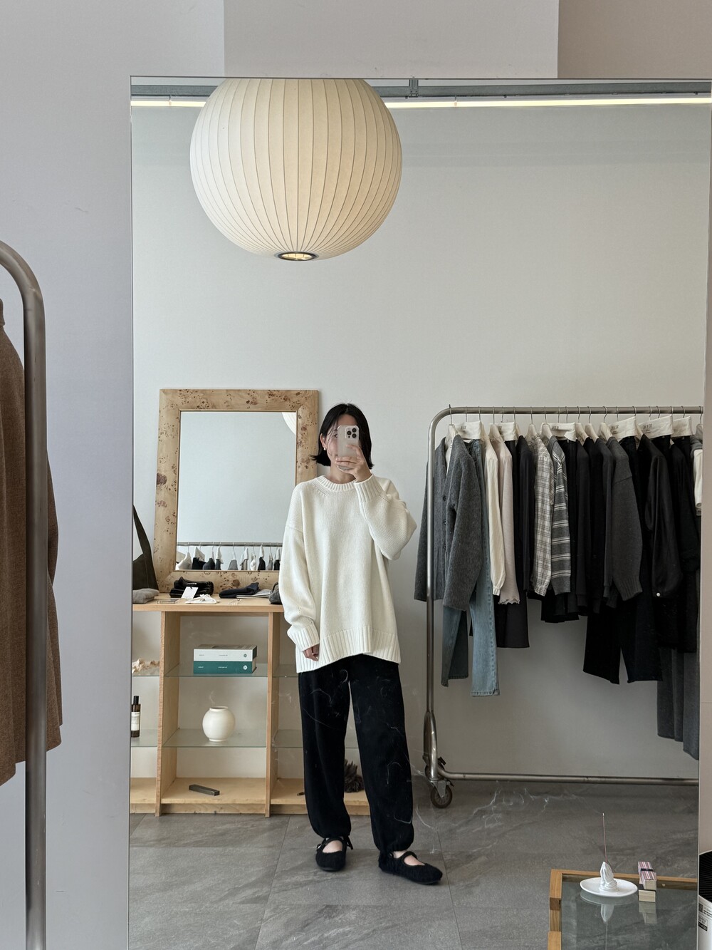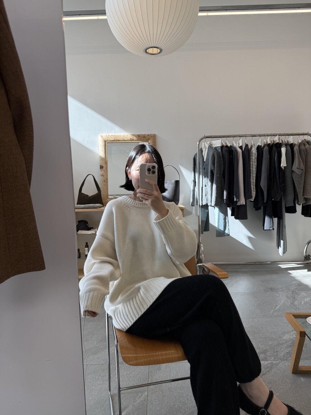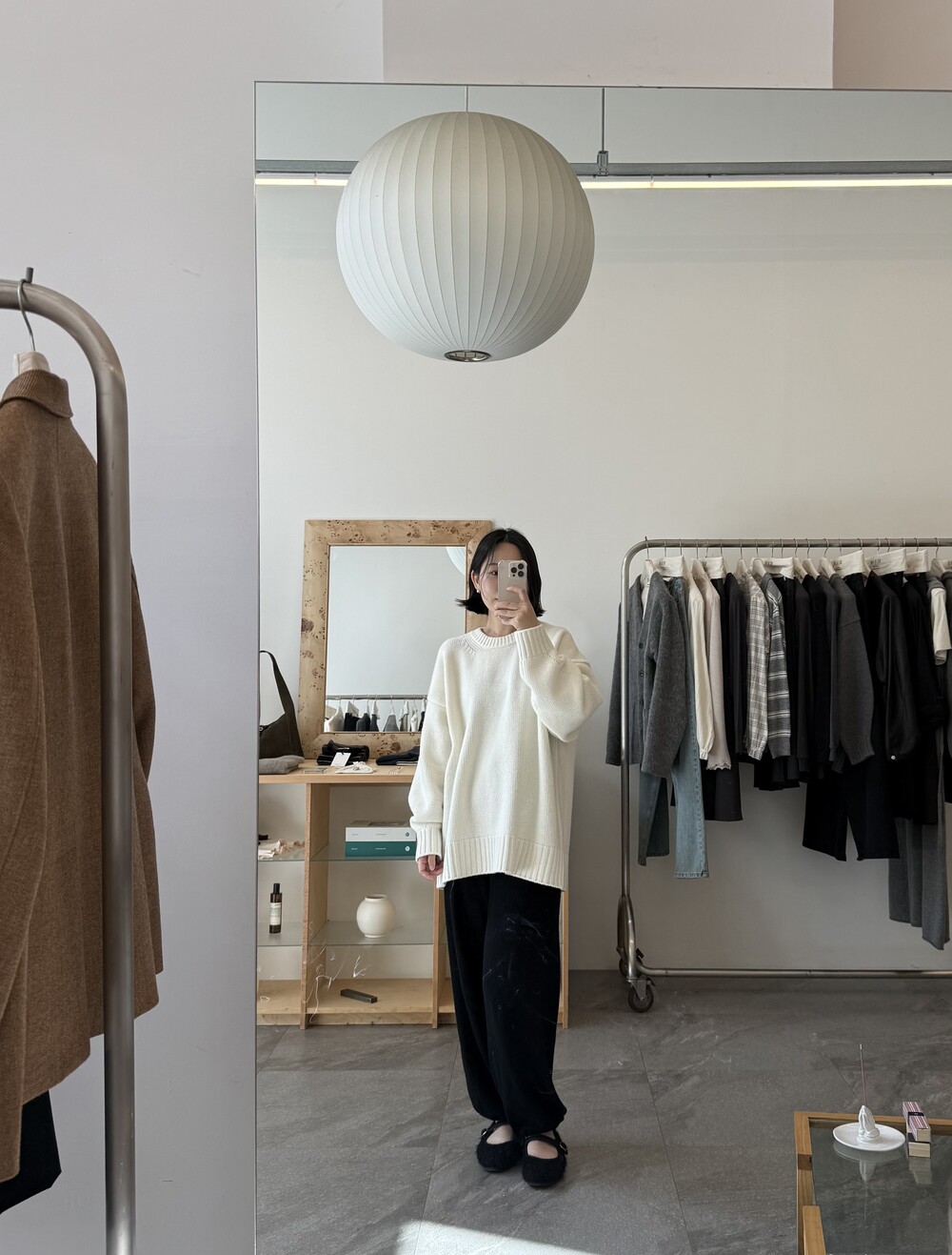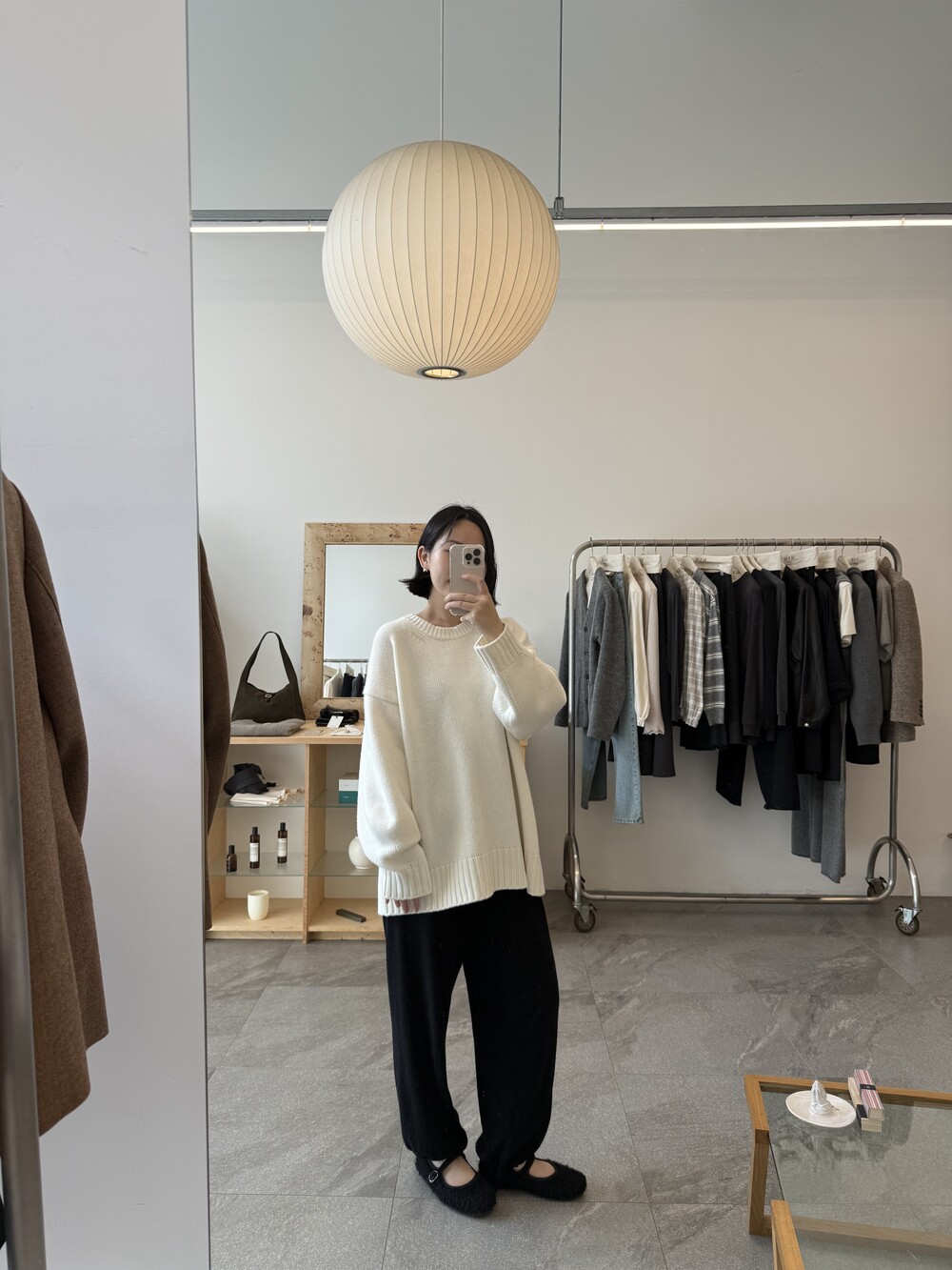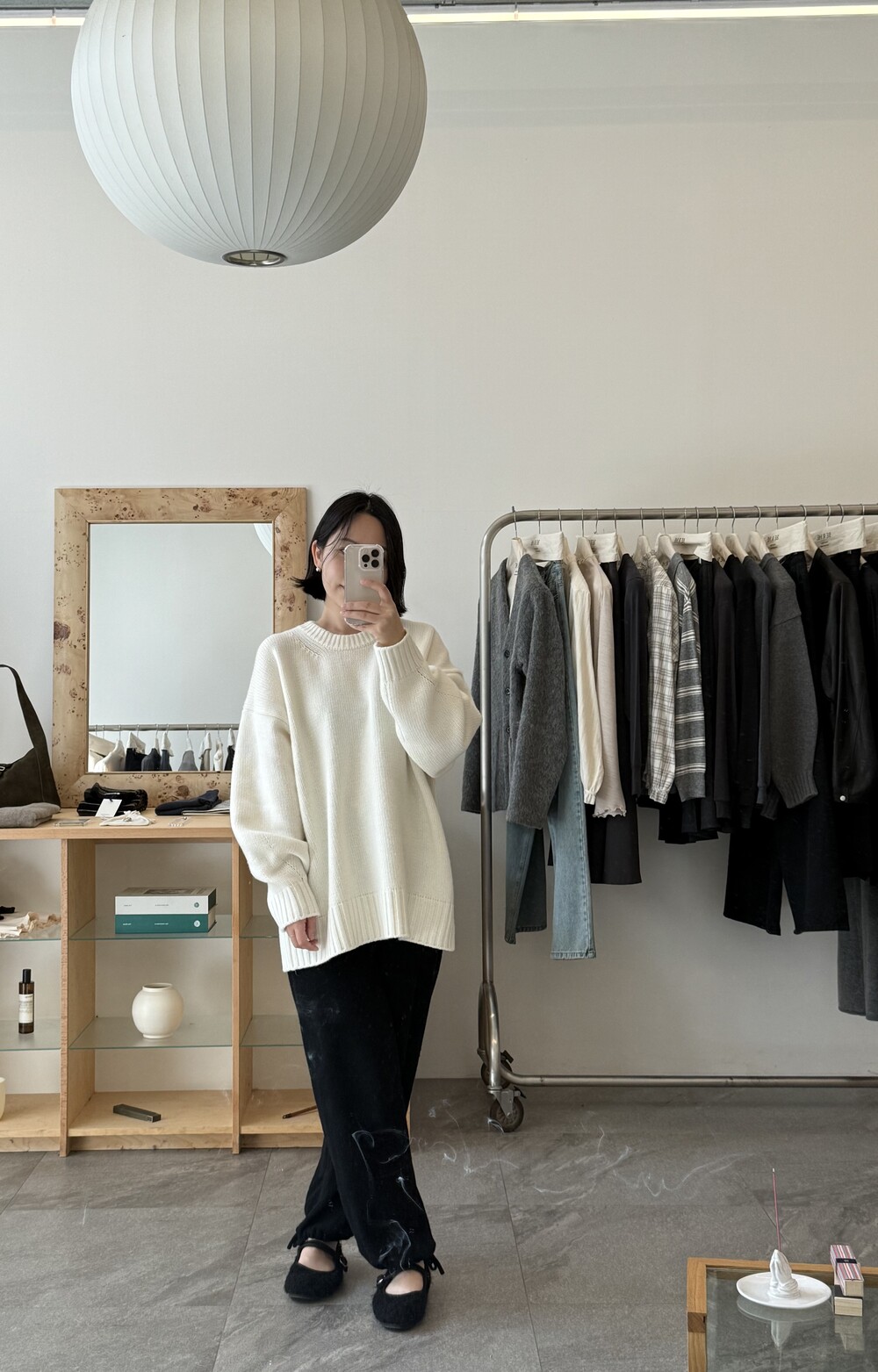 보통 박시한 니트는 부해보이기 마련인데 어깨 래글런 타입으로 슬림하게 떨어지는 핏이 특징입니다.