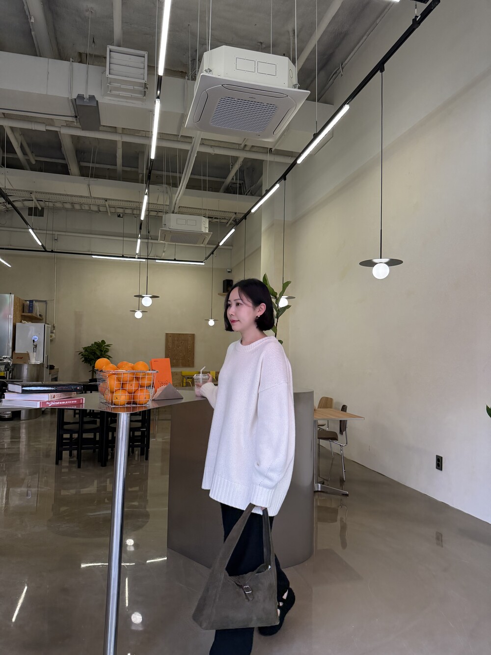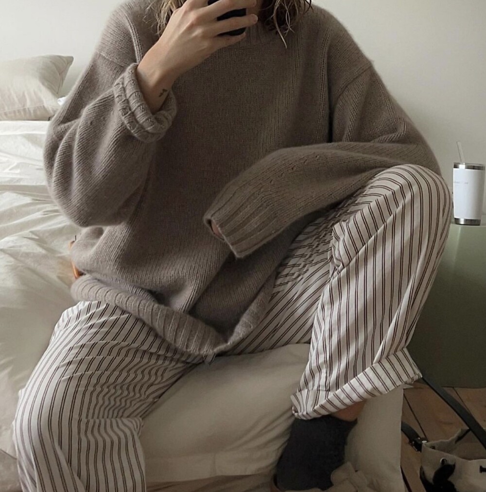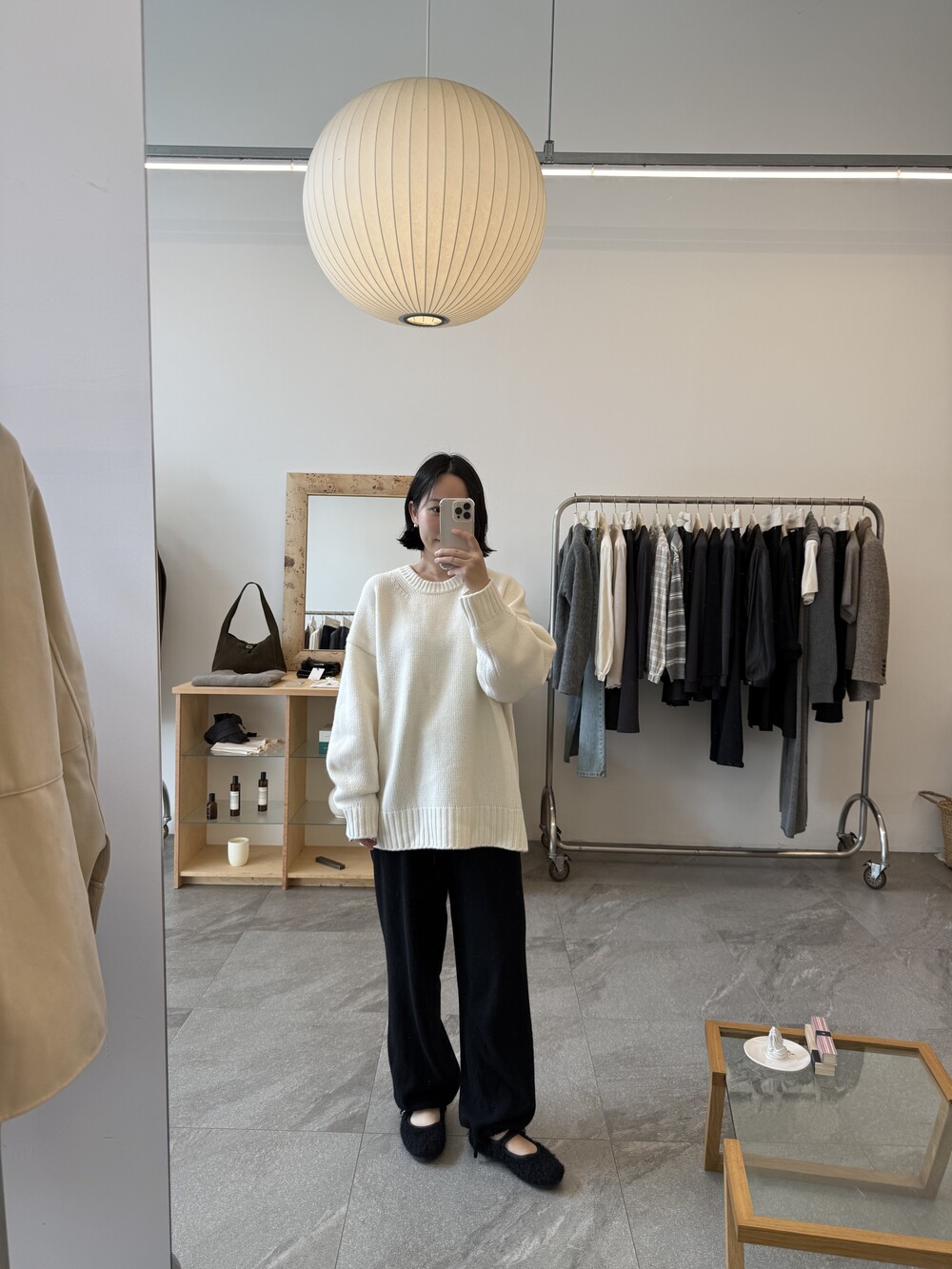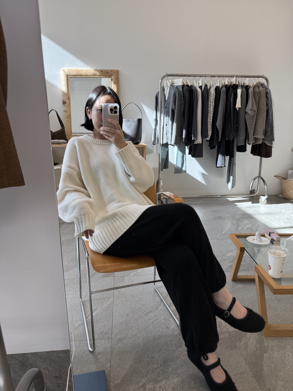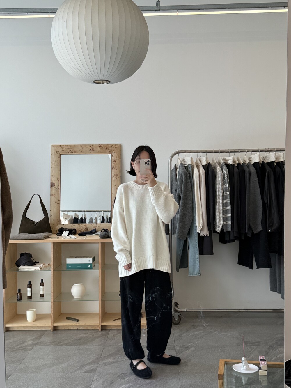 보통 박시한 니트는 부해보이기 마련인데 어깨 래글런 타입으로 슬림하게 떨어지는 핏이 특징입니다.