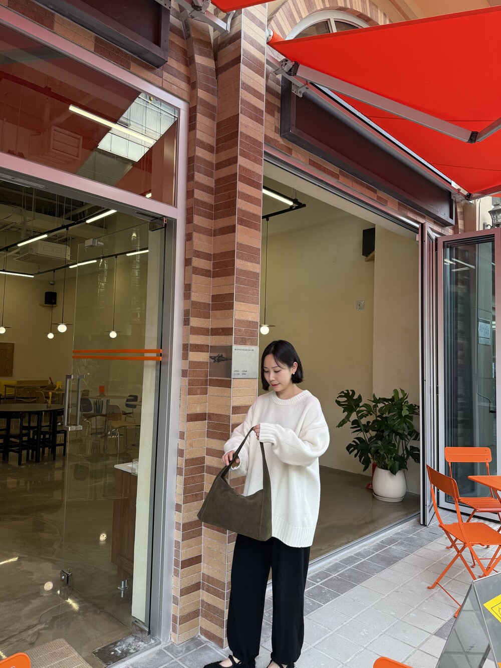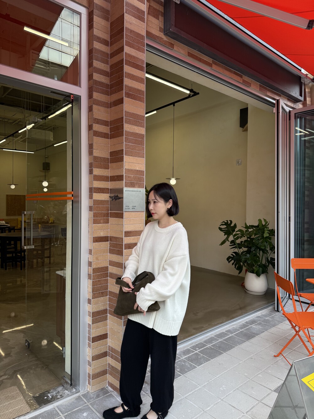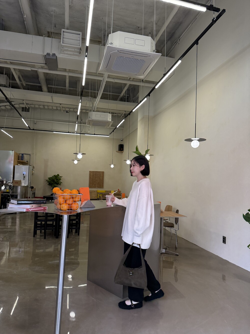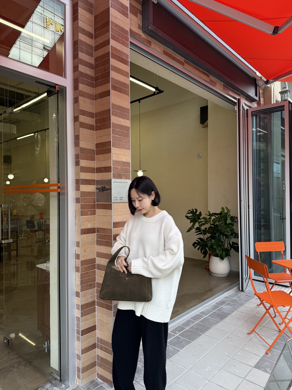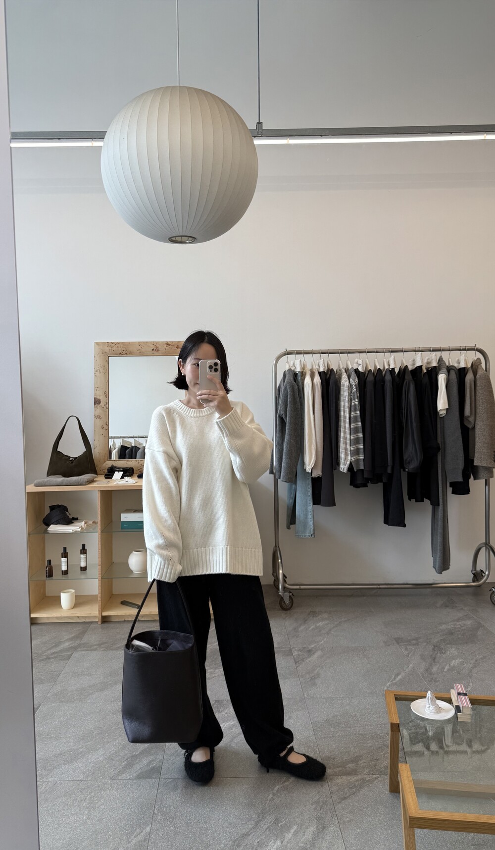 보통 박시한 니트는 부해보이기 마련인데 어깨 래글런 타입으로 슬림하게 떨어지는 핏이 특징입니다.