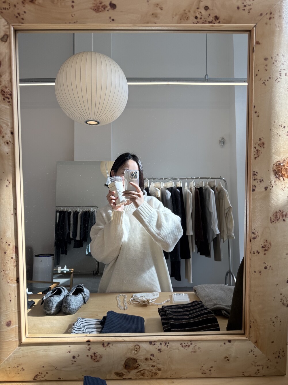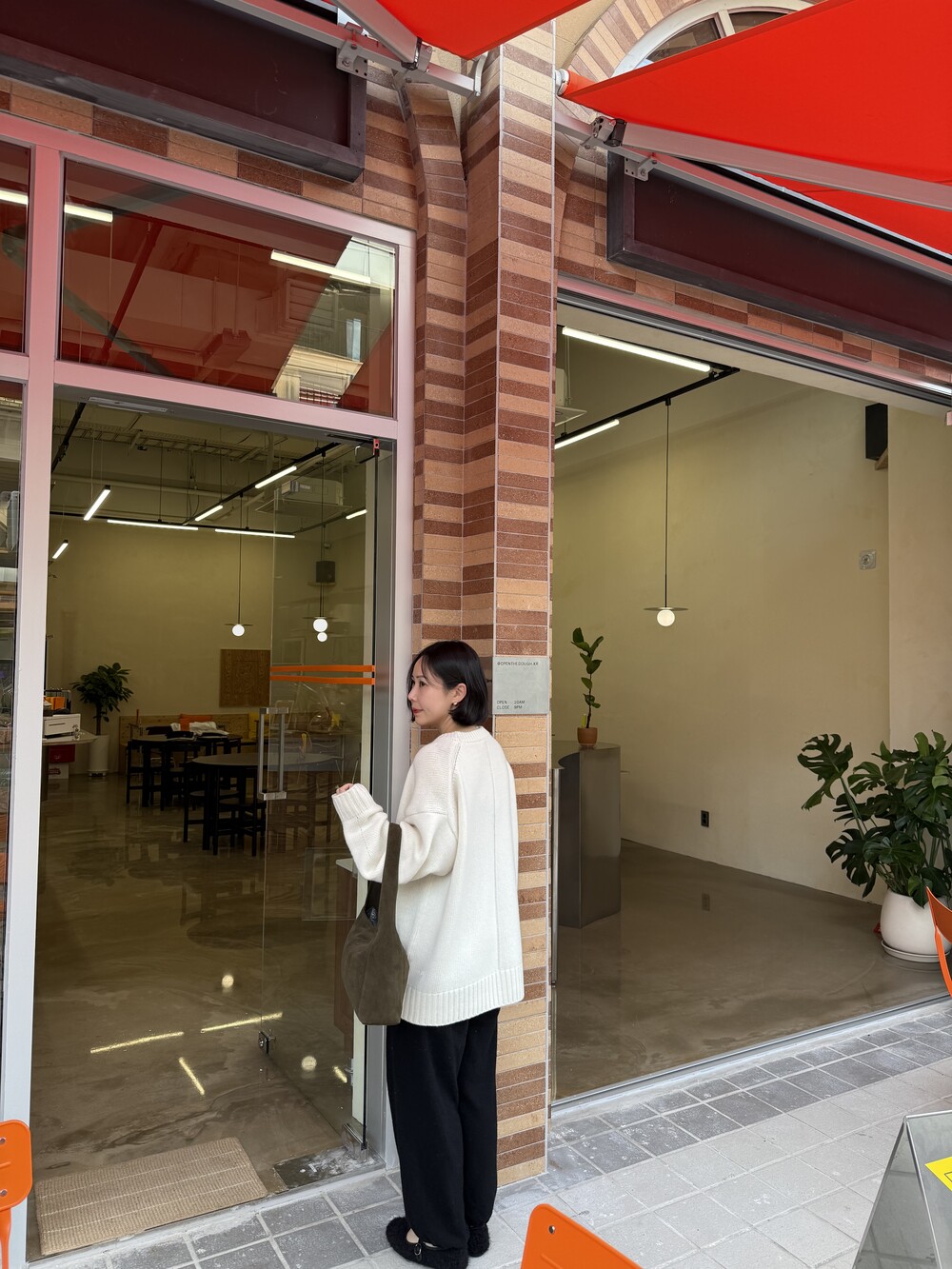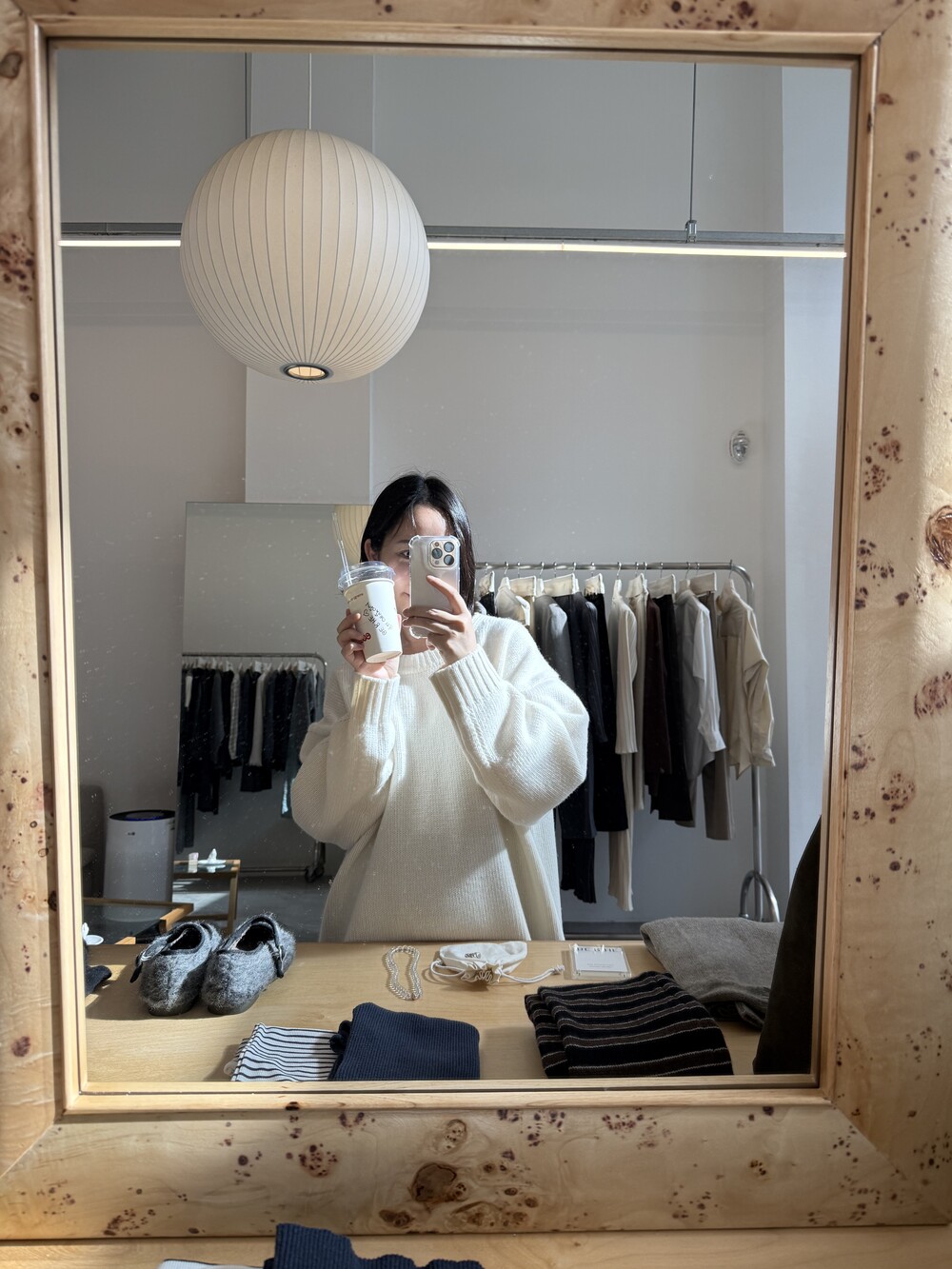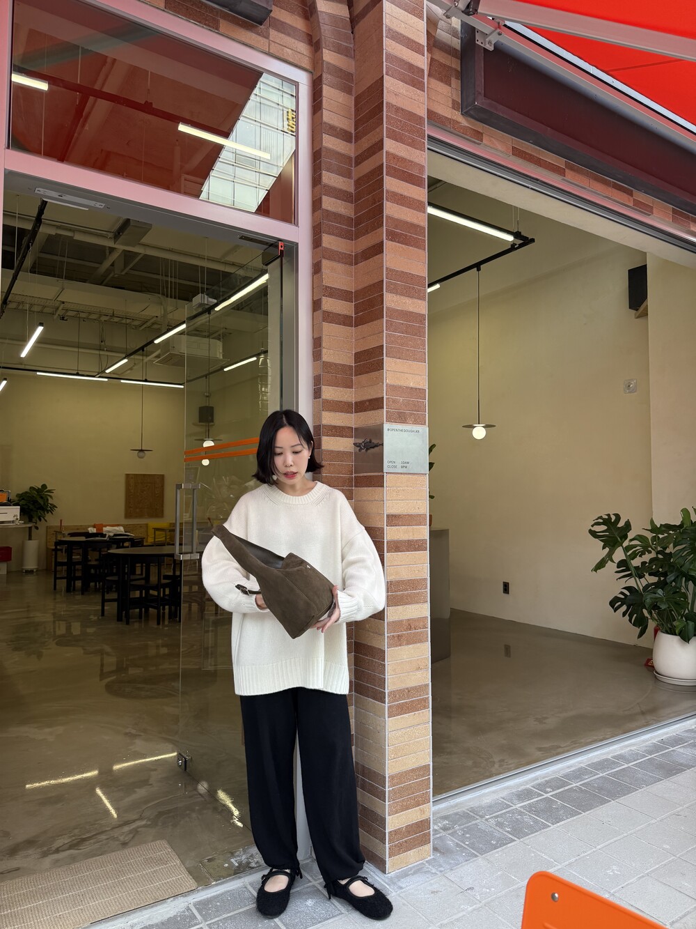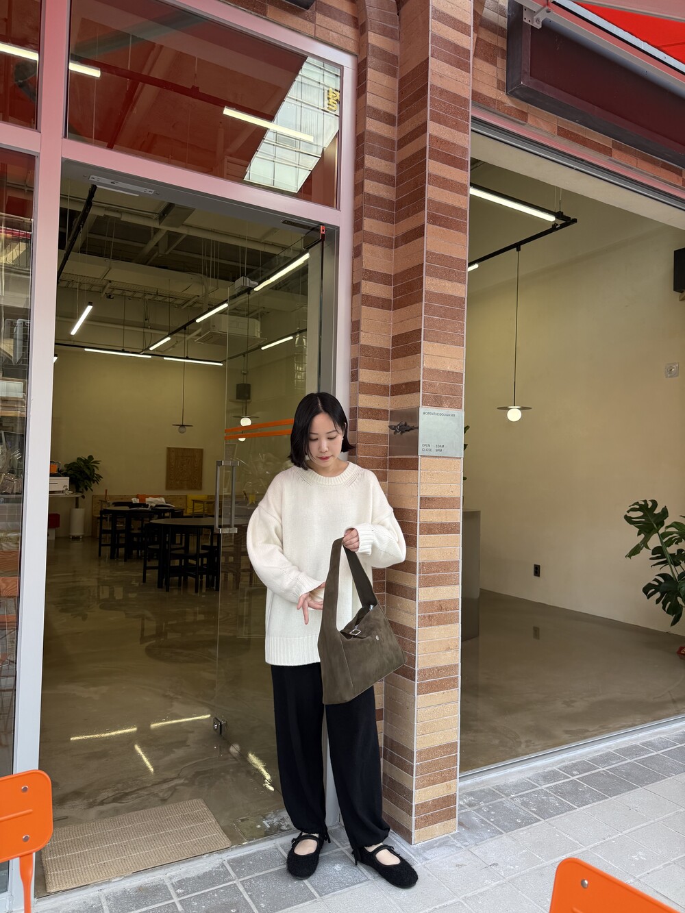 보통 박시한 니트는 부해보이기 마련인데 어깨 래글런 타입으로 슬림하게 떨어지는 핏이 특징입니다.