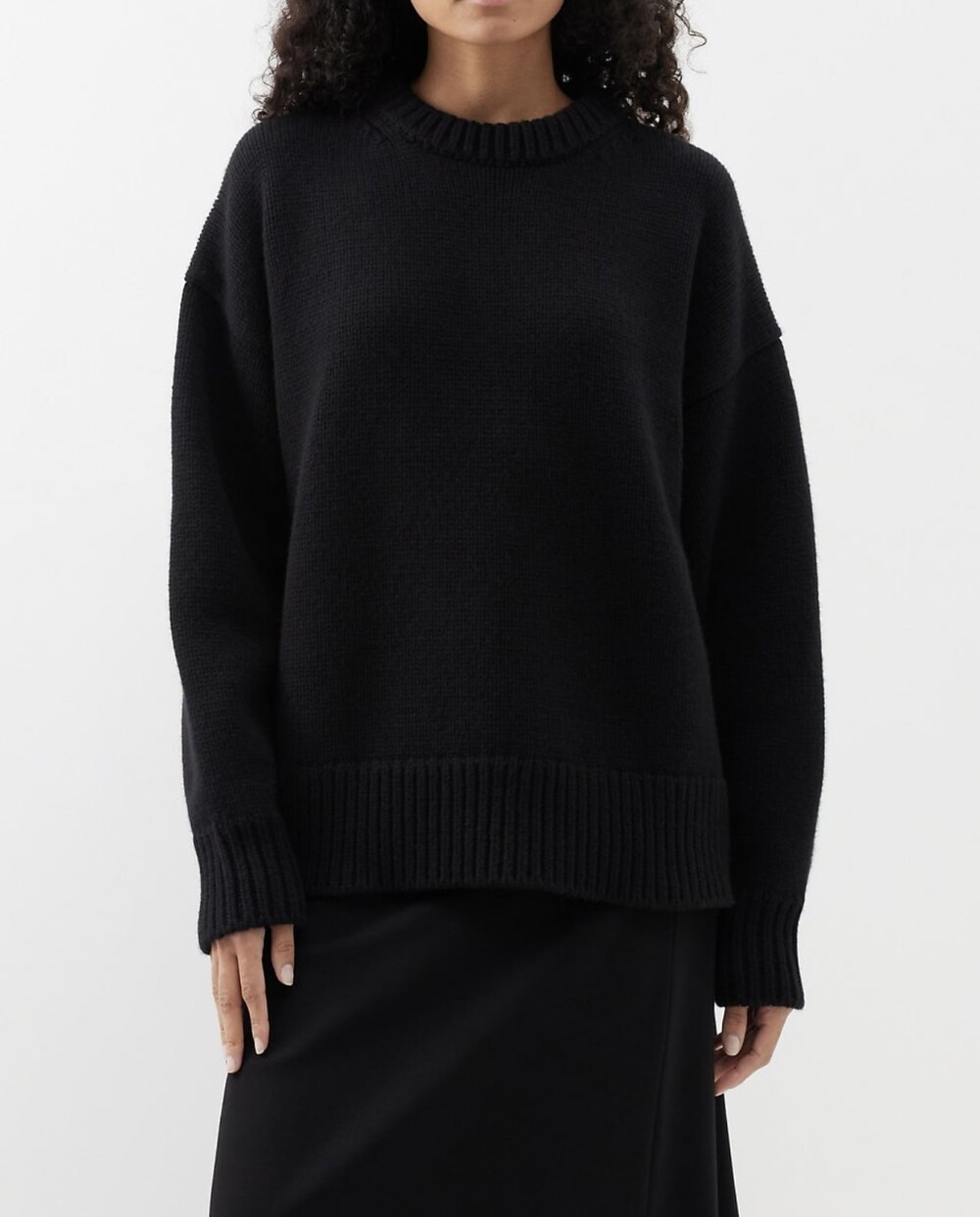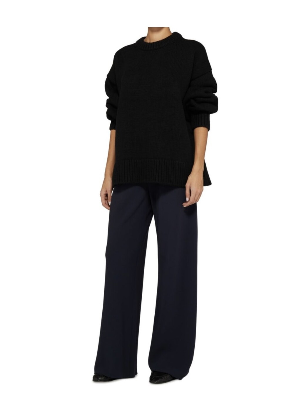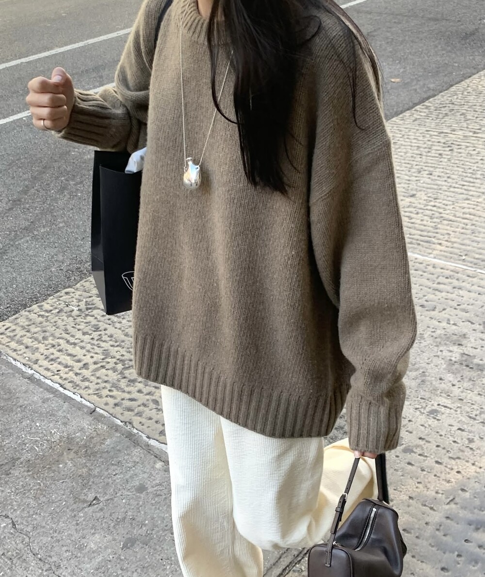 벌키한 스타일로 제작된 울 캐시미어 혼방 니트입니다.
