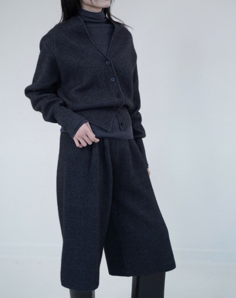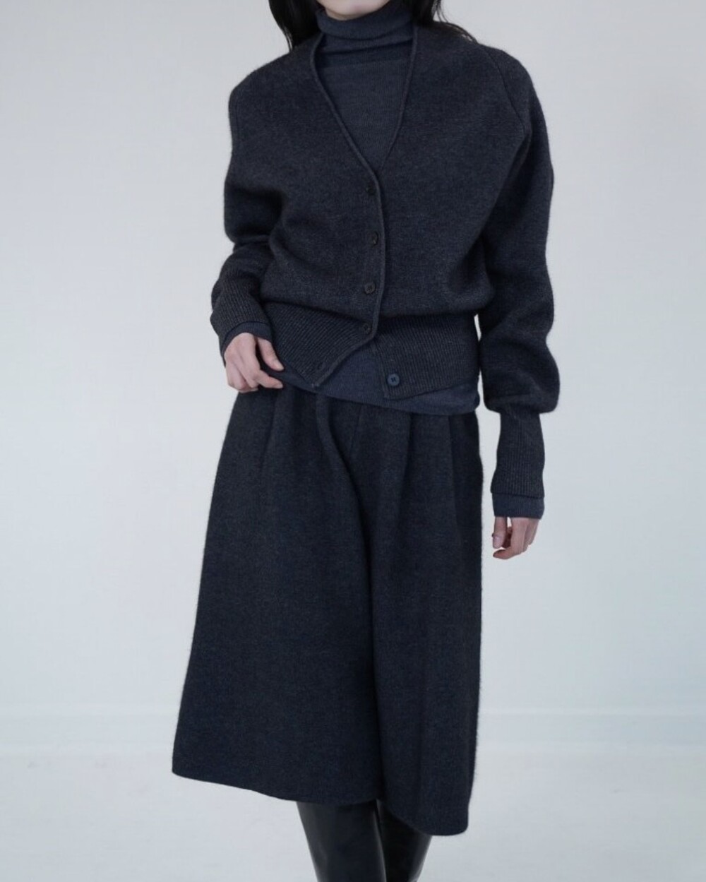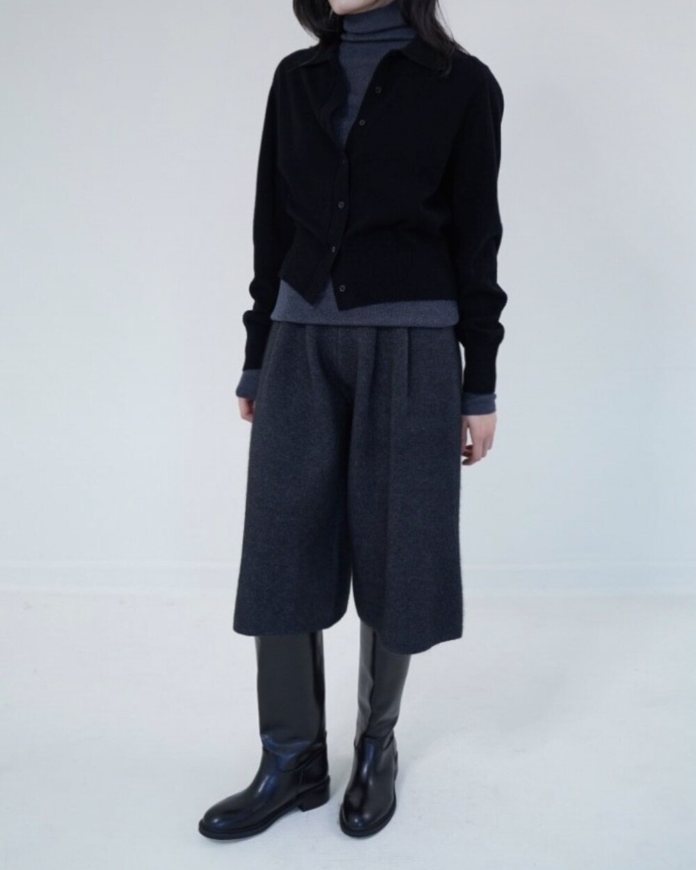 -무릎을 충분히 가려주는 기장감으로 부츠 혹은 스니커즈와 매칭 가능합니다.