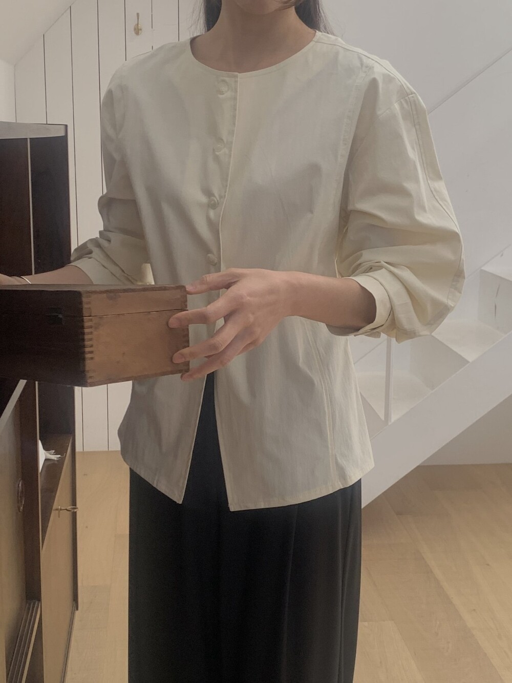 단정한 셔츠의 형태 위에