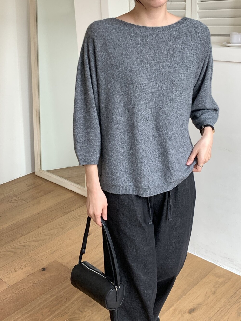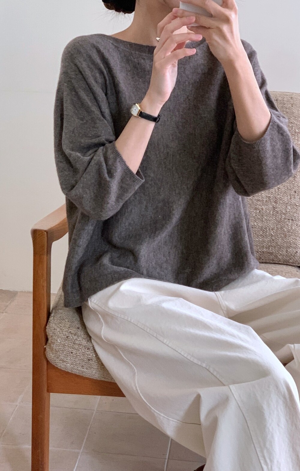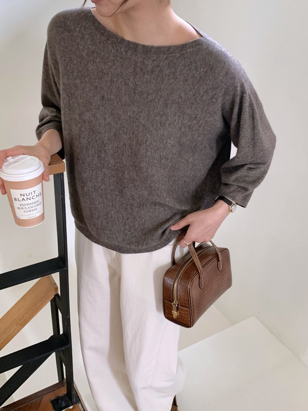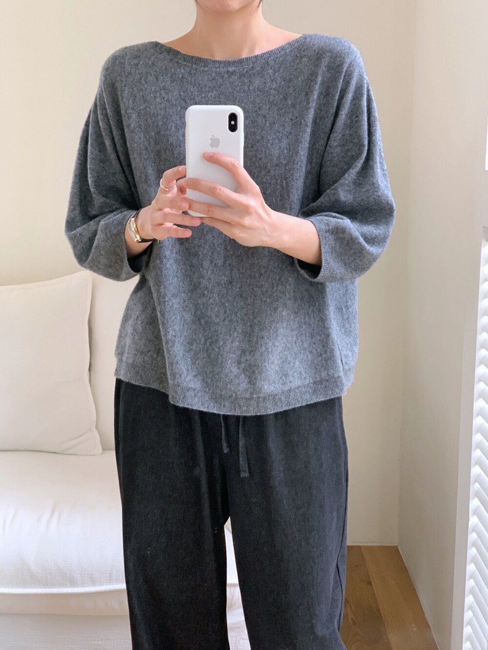 보트넥 스타일로 넥 라인이 답답하지 않고 유행에 민감하지 않은 디자인으로 준비했어요! 한겨울에는 얇은 울 폴라와 레이어드해서 착용해 주세요!