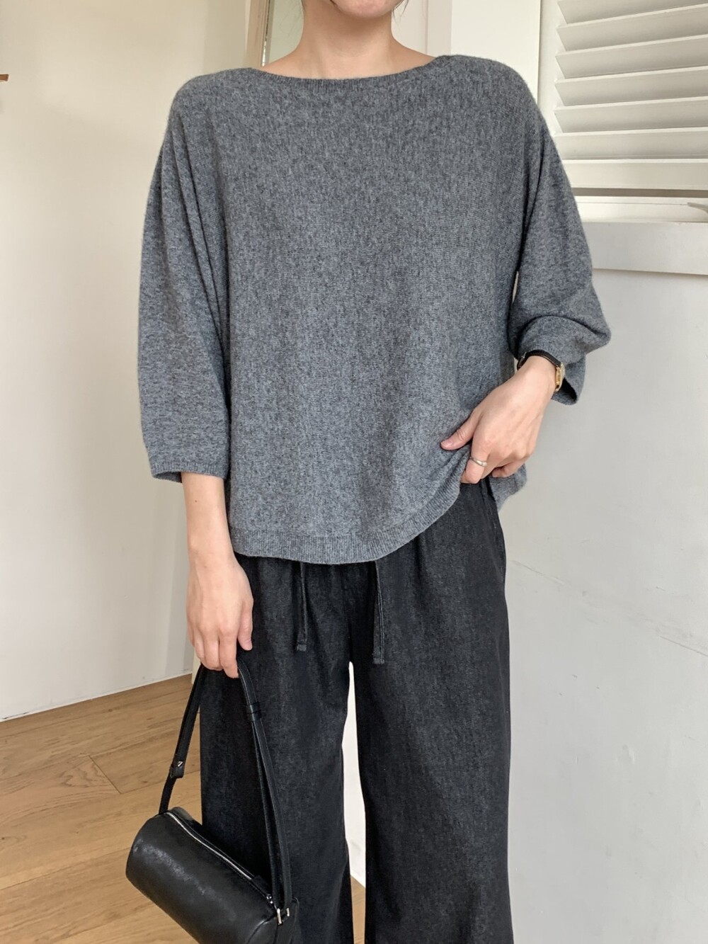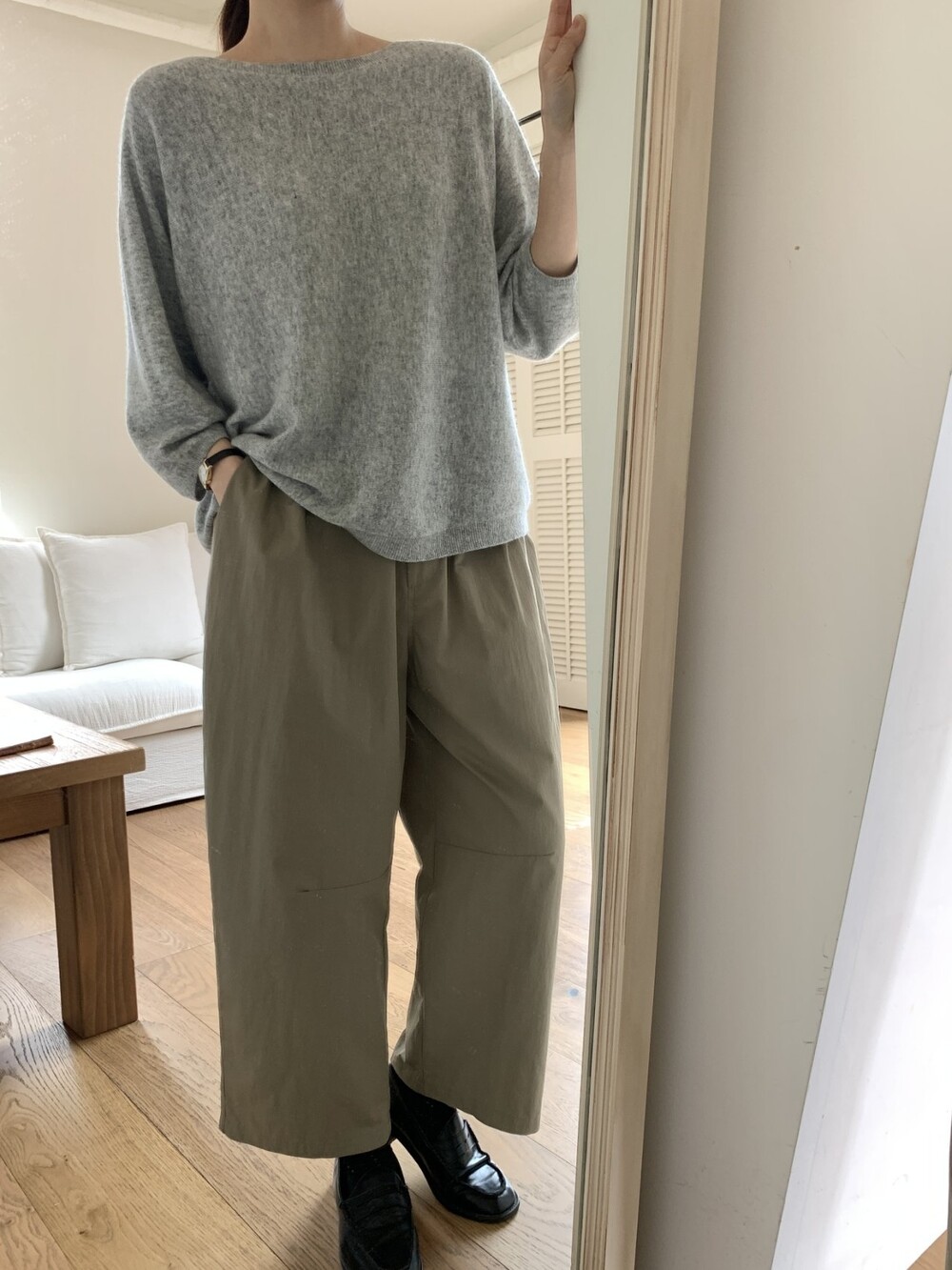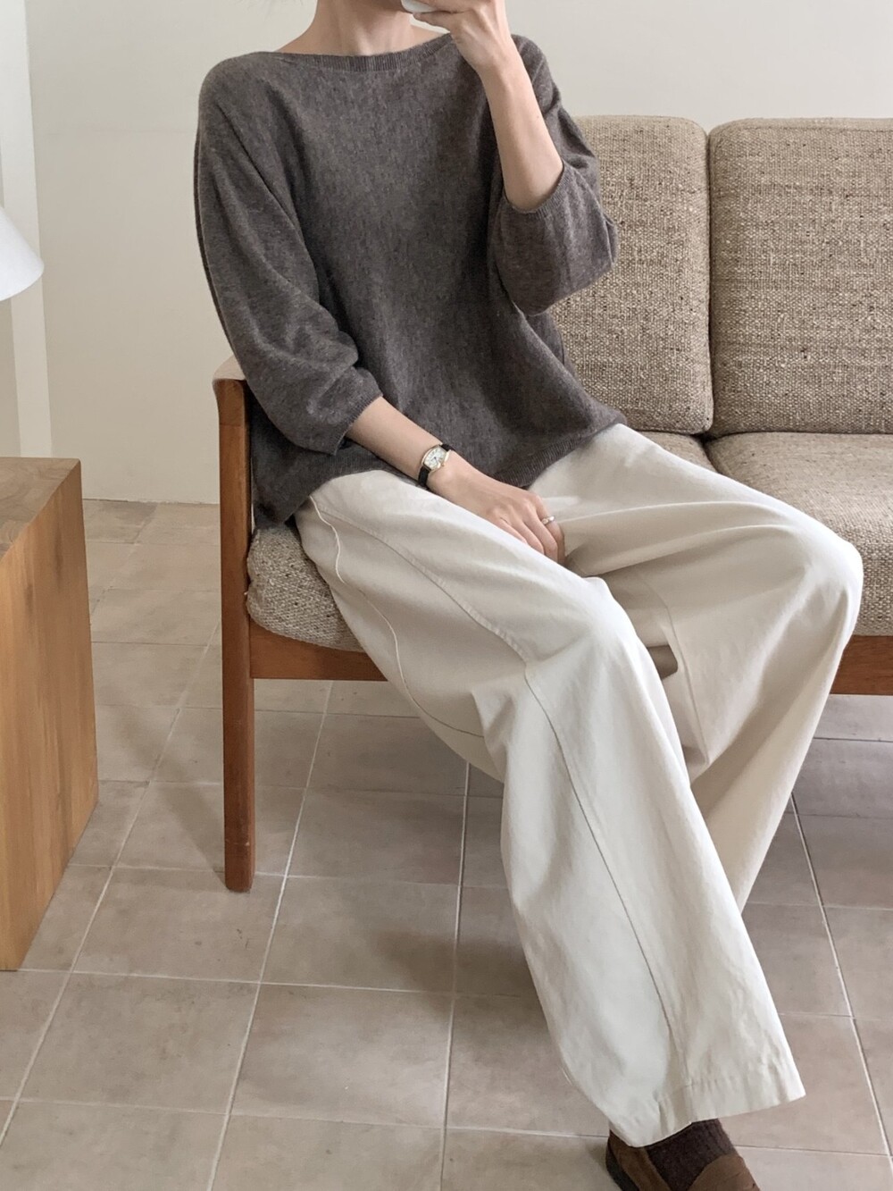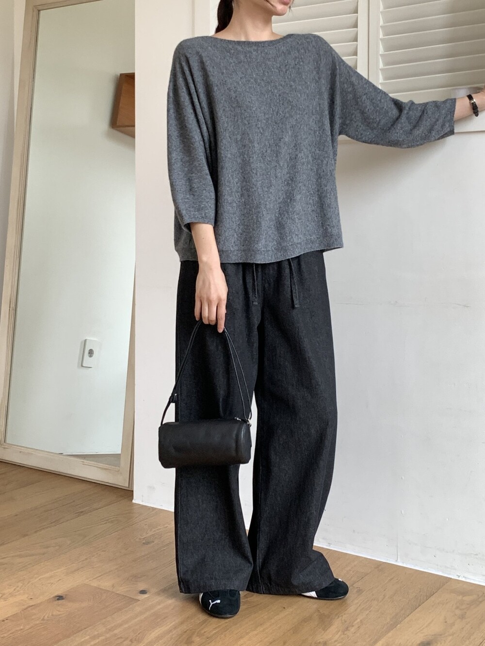 보트넥 스타일로 넥 라인이 답답하지 않고 유행에 민감하지 않은 디자인으로 준비했어요! 한겨울에는 얇은 울 폴라와 레이어드해서 착용해 주세요!