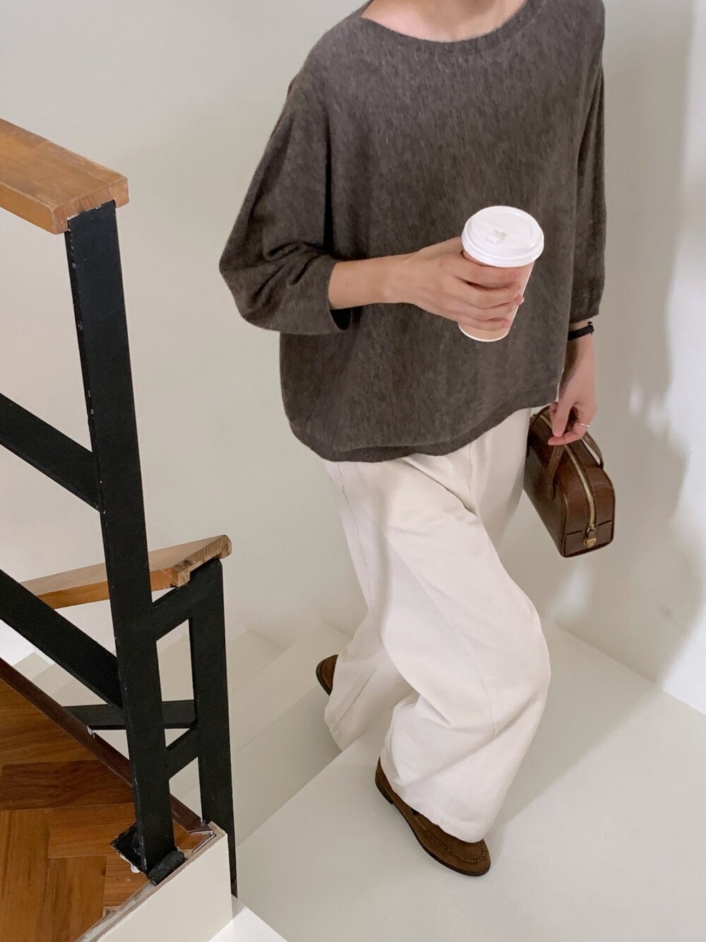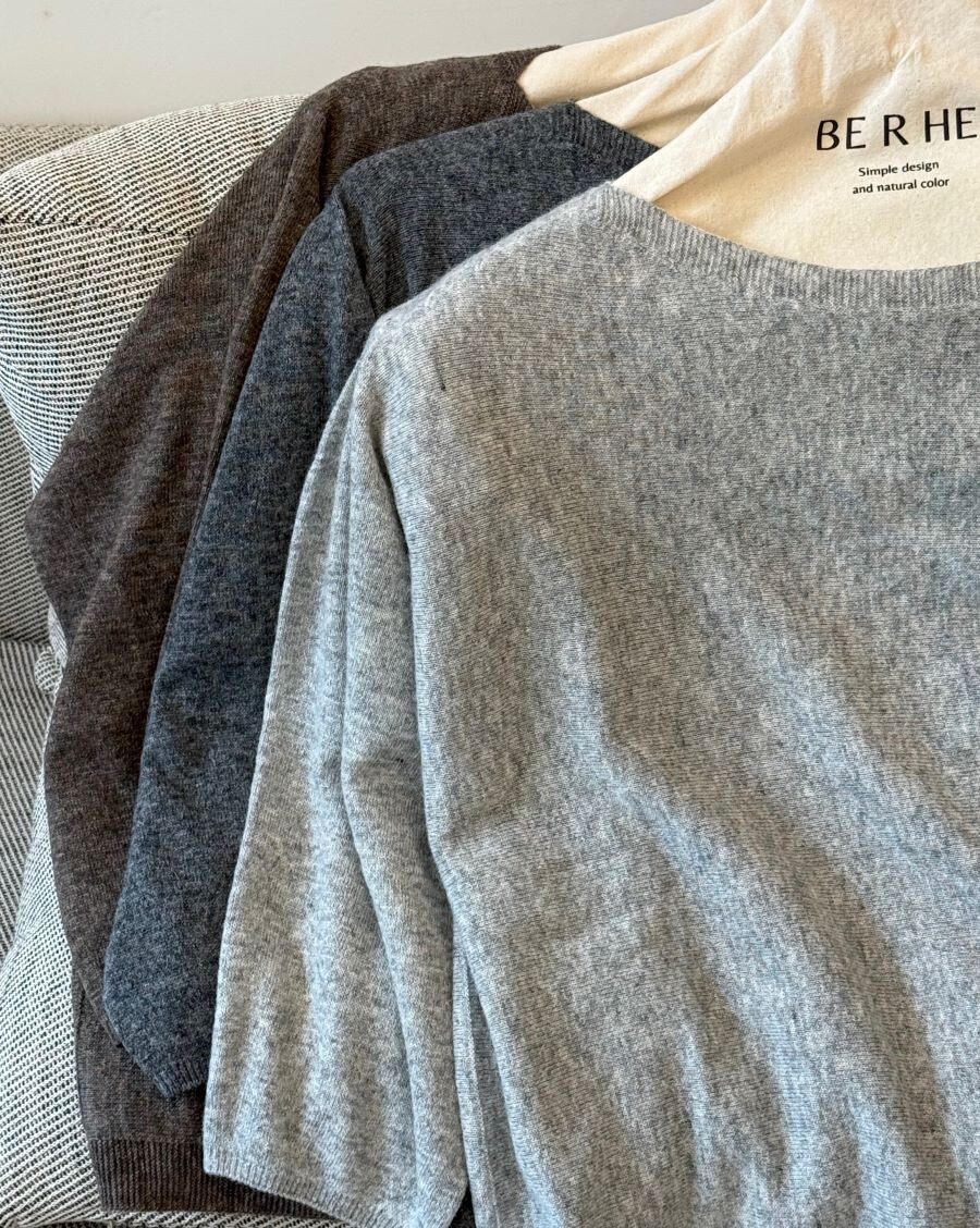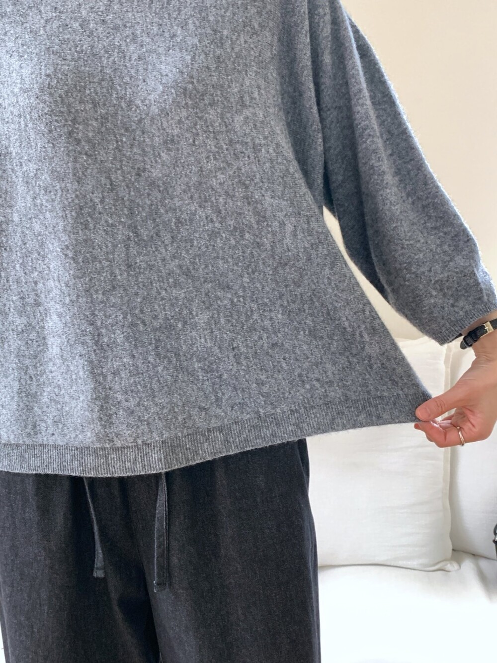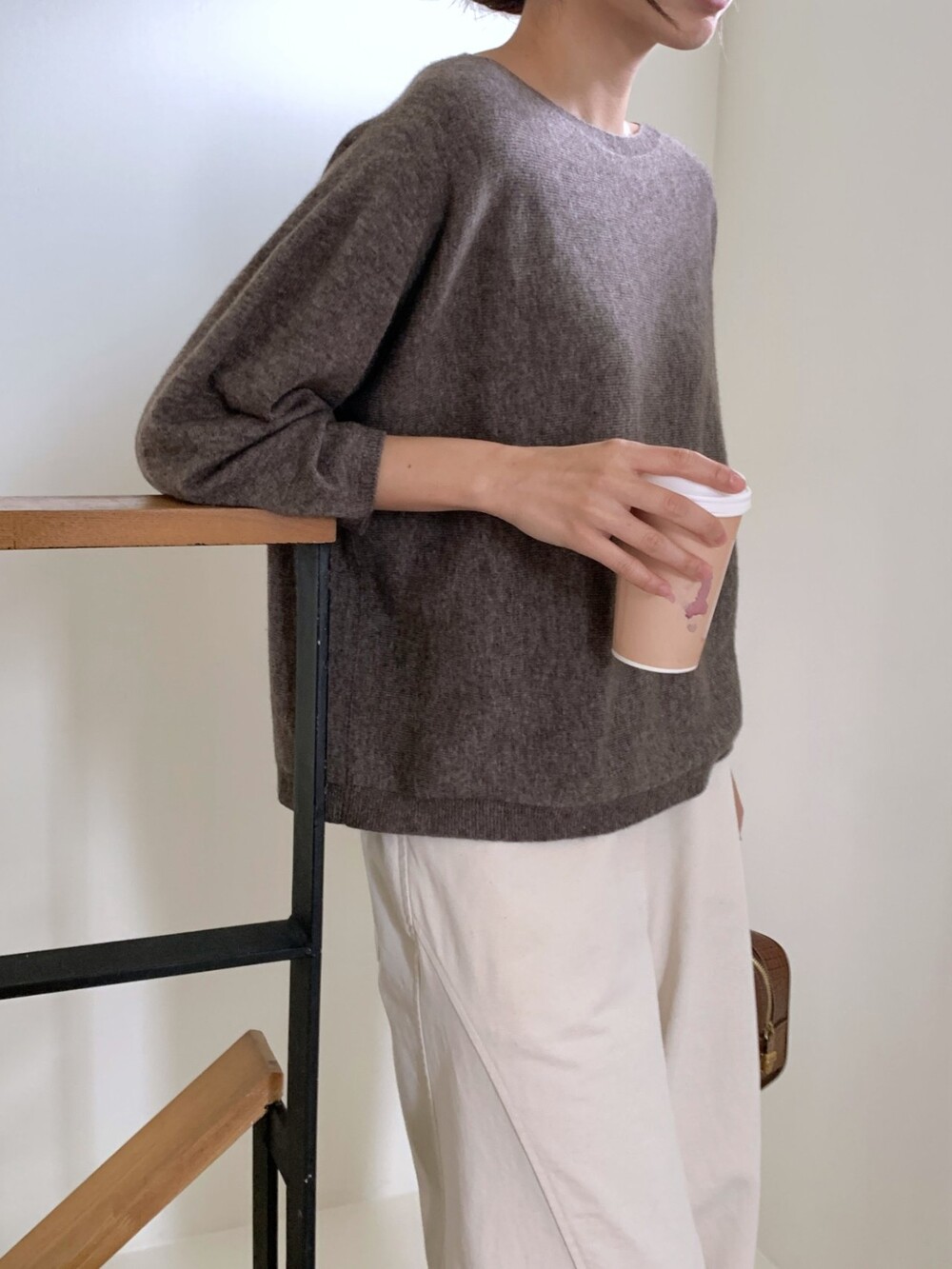 보트넥 스타일로 넥 라인이 답답하지 않고 유행에 민감하지 않은 디자인으로 준비했어요! 한겨울에는 얇은 울 폴라와 레이어드해서 착용해 주세요!