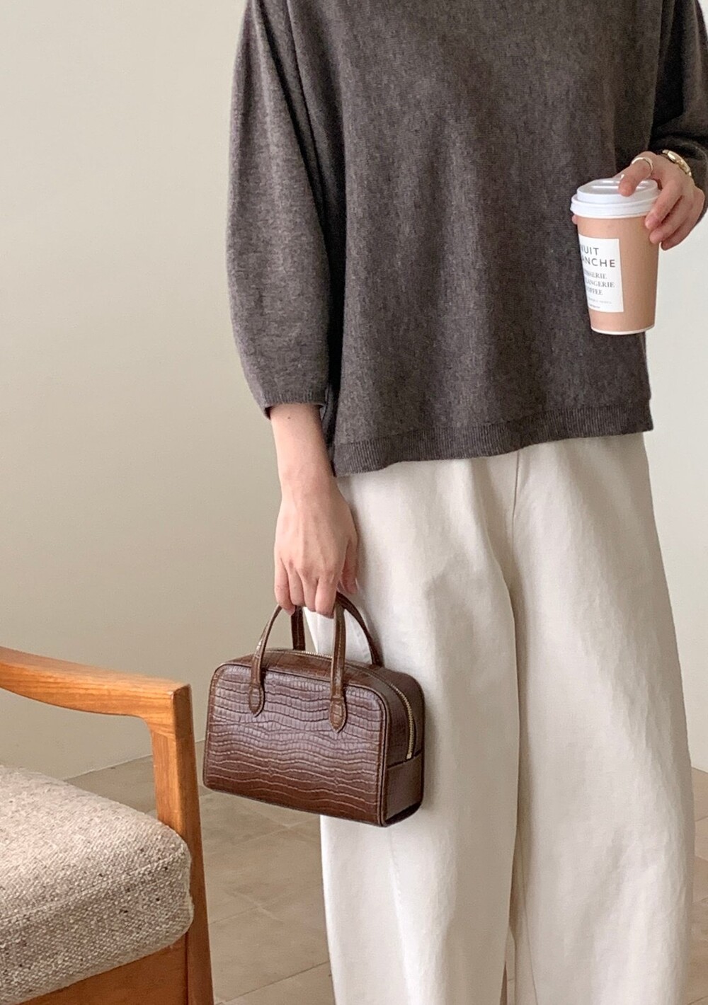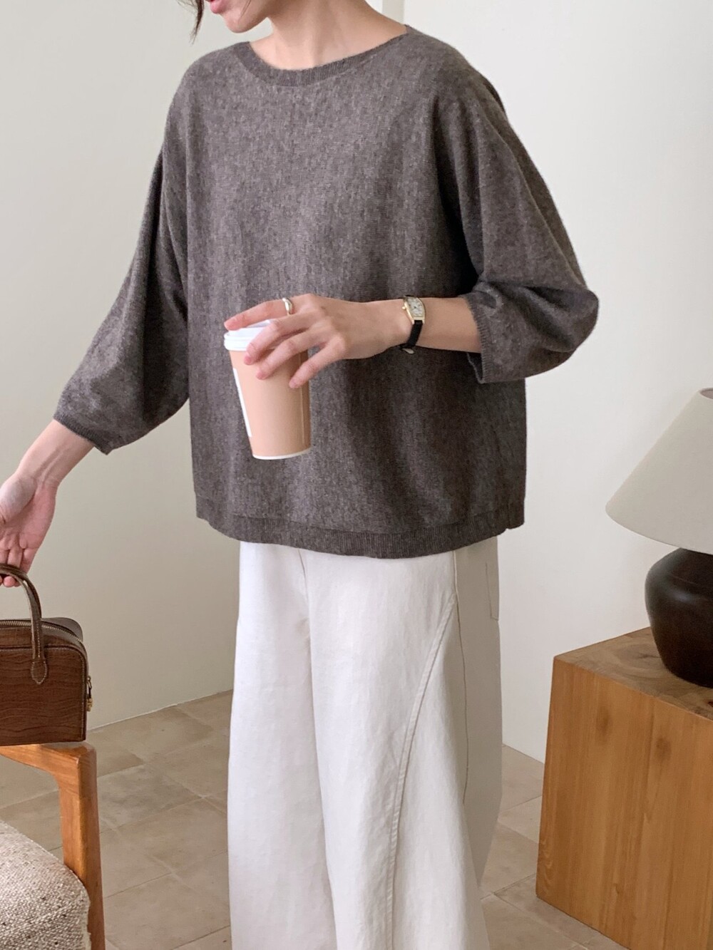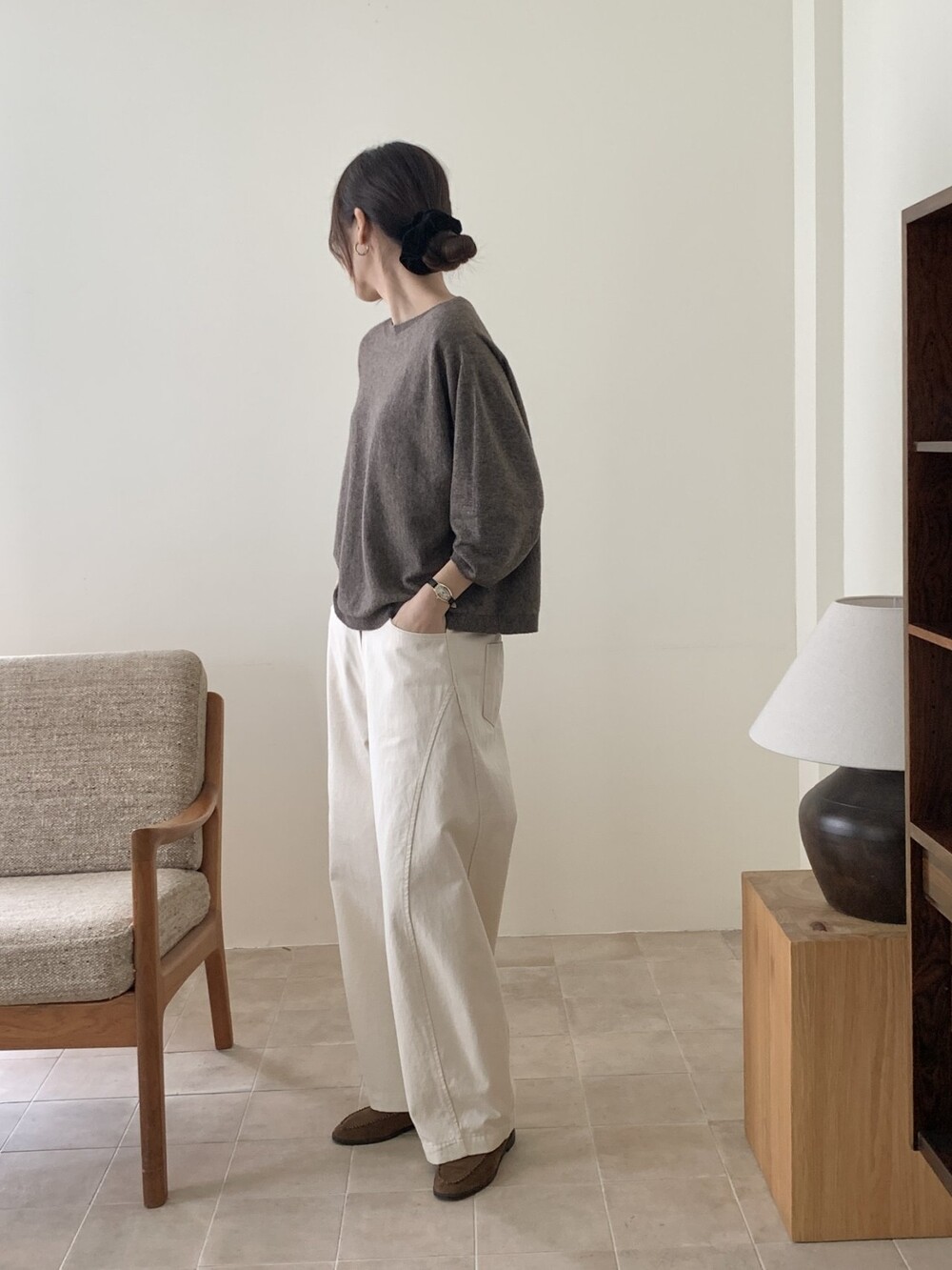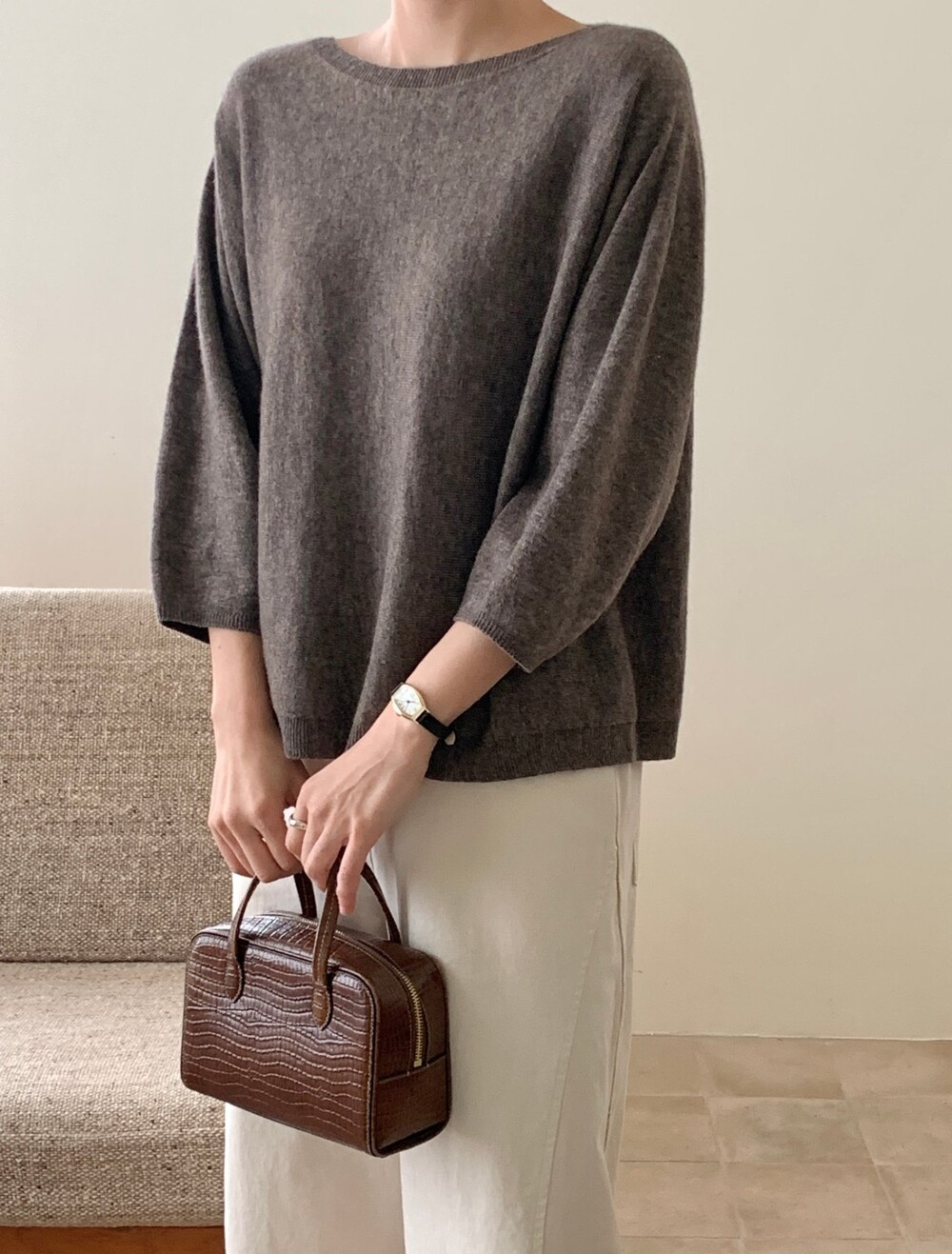 보트넥 스타일로 넥 라인이 답답하지 않고 유행에 민감하지 않은 디자인으로 준비했어요! 한겨울에는 얇은 울 폴라와 레이어드해서 착용해 주세요!