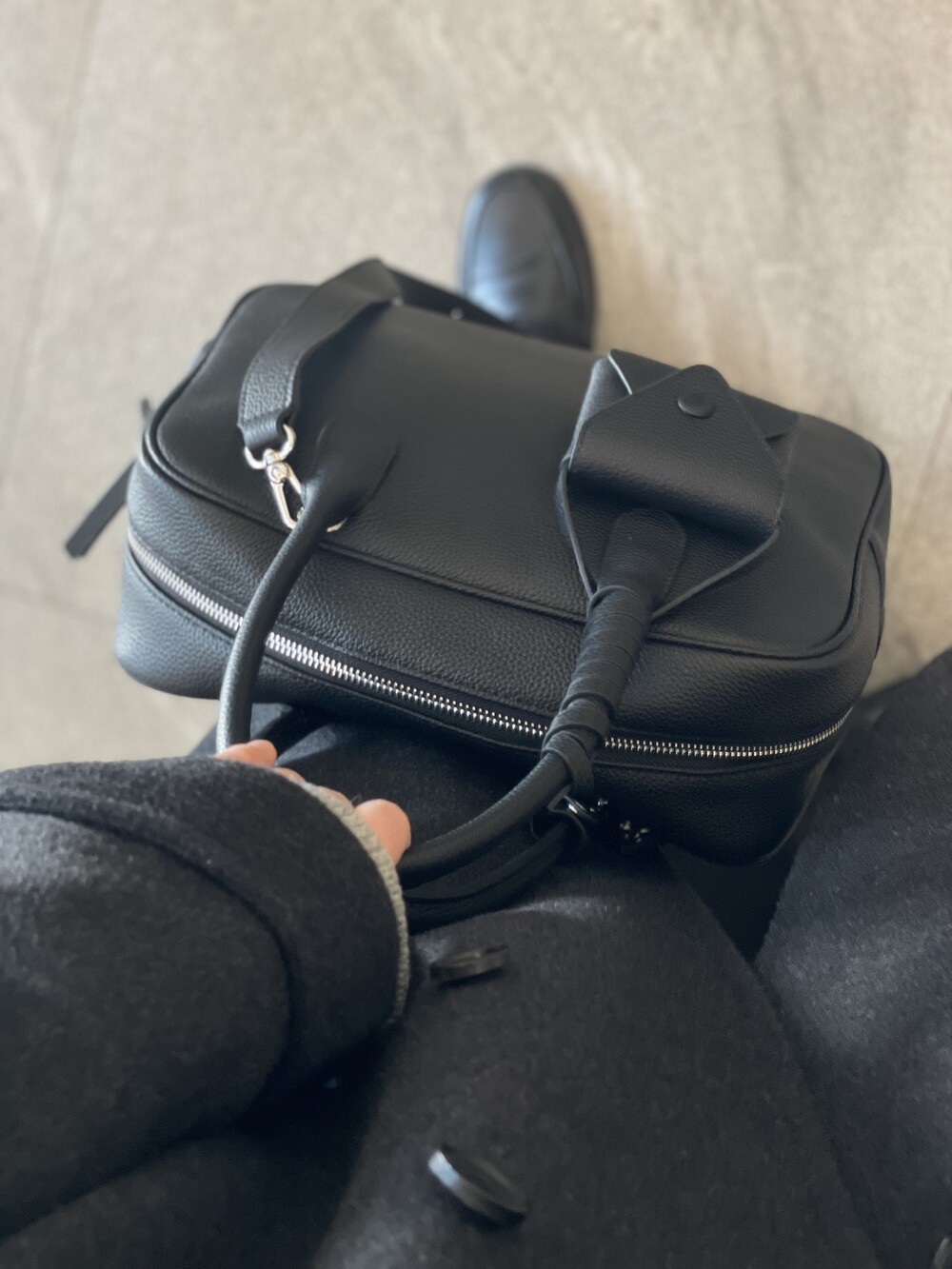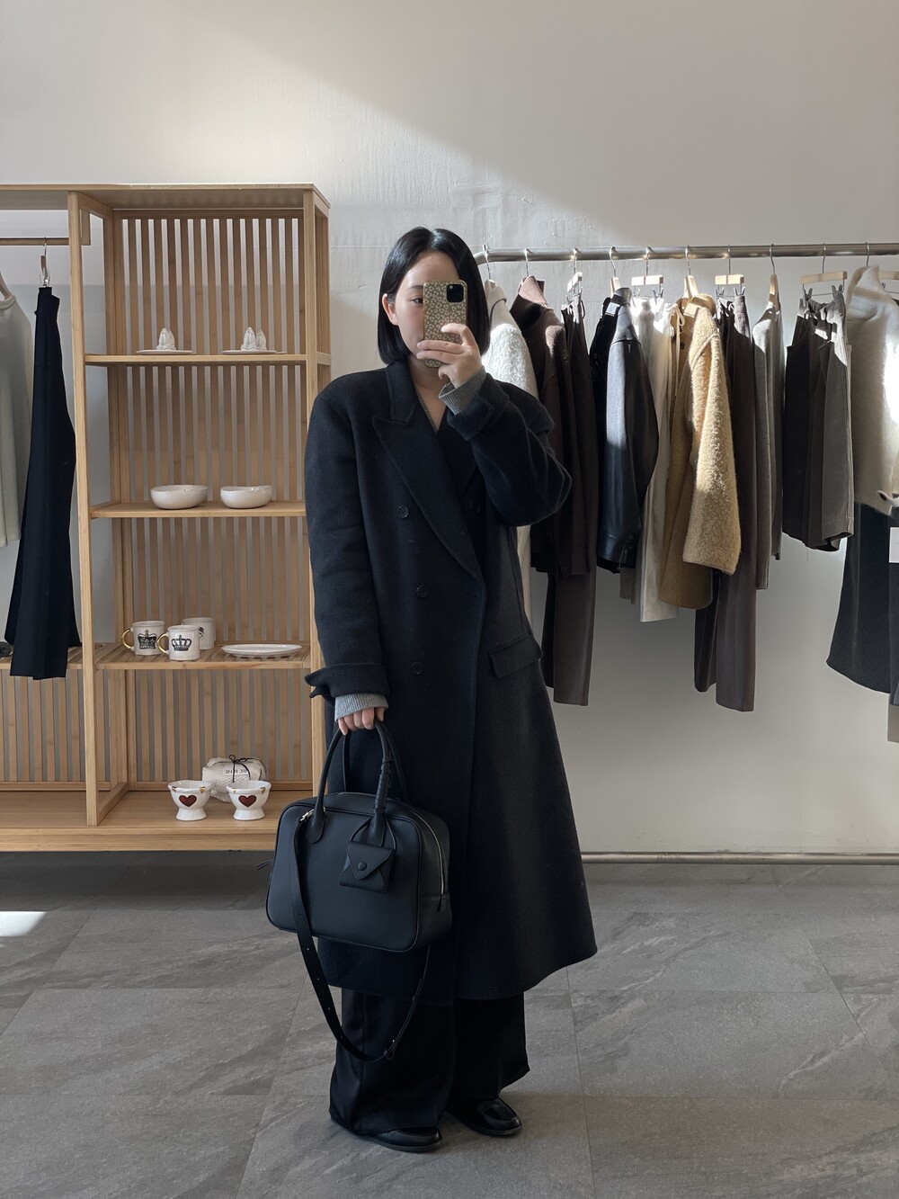 세미 정장룩, 캐주얼룩 어디에나 툭 걸치고 들고 다니기 좋은 cow flow bag 함께 들어요.