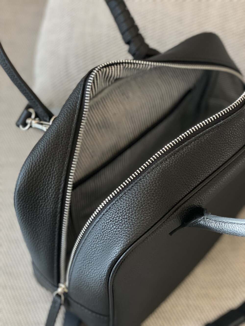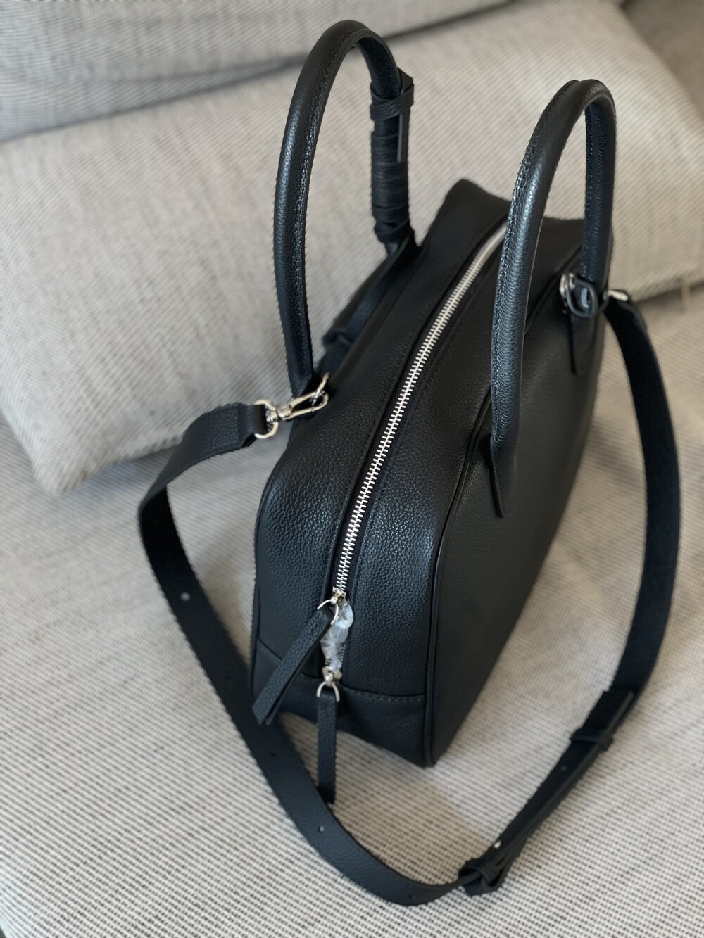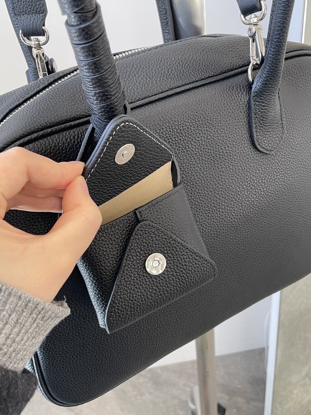 보통 소가죽은 무거운 경우가 많은데 짐 가득 넣어도 무리감이 없습니다.