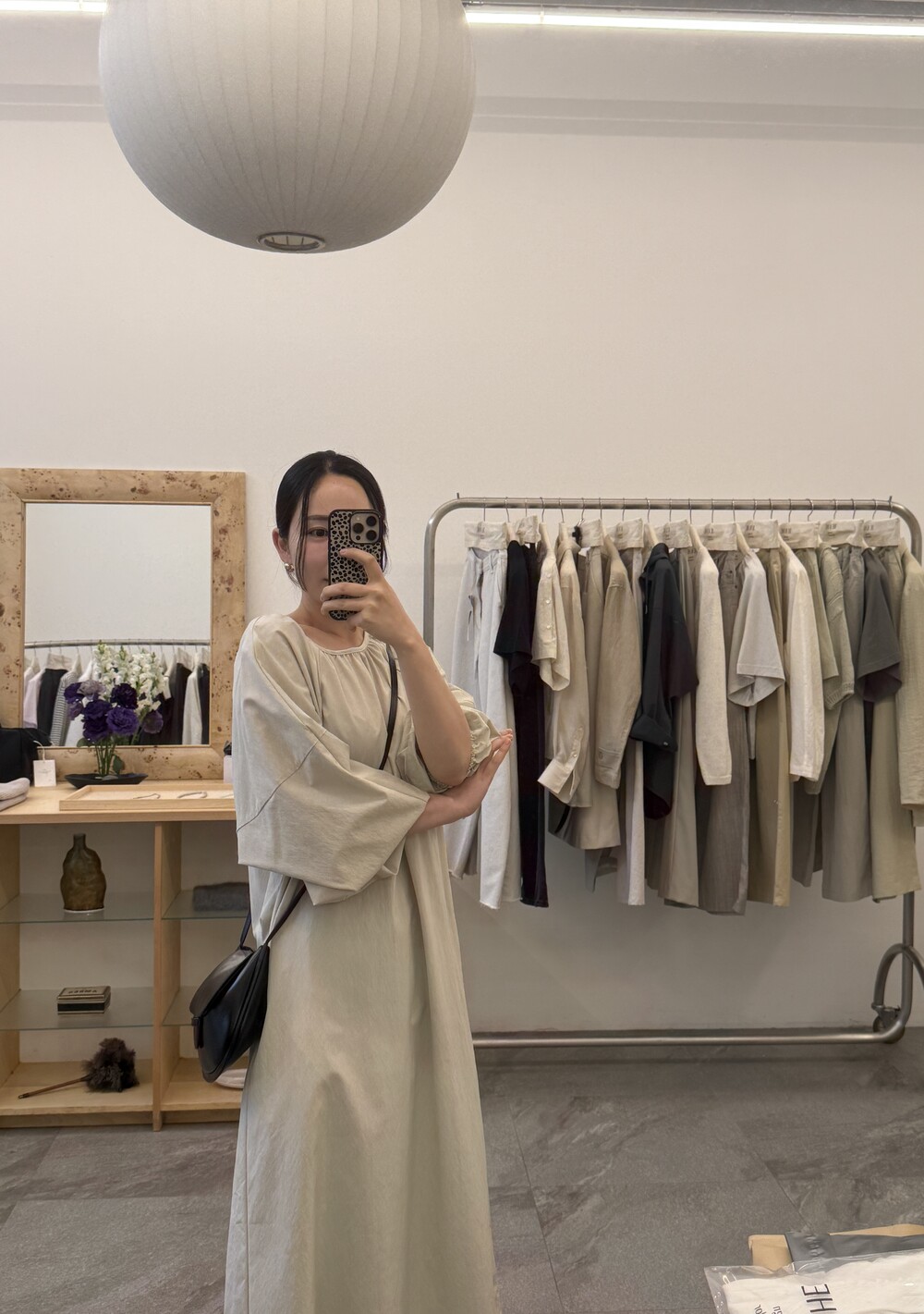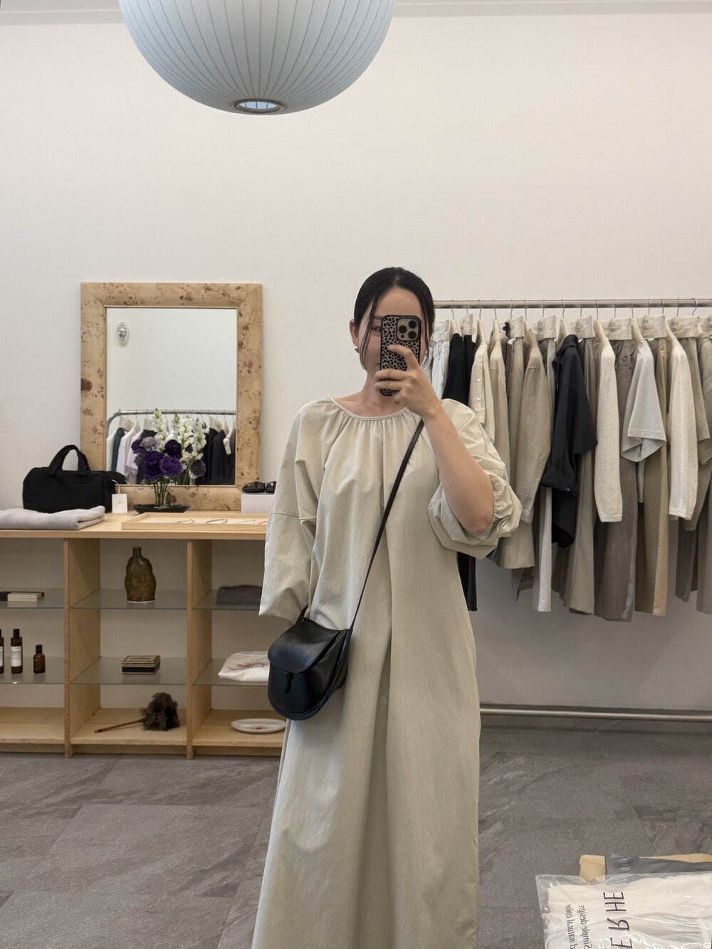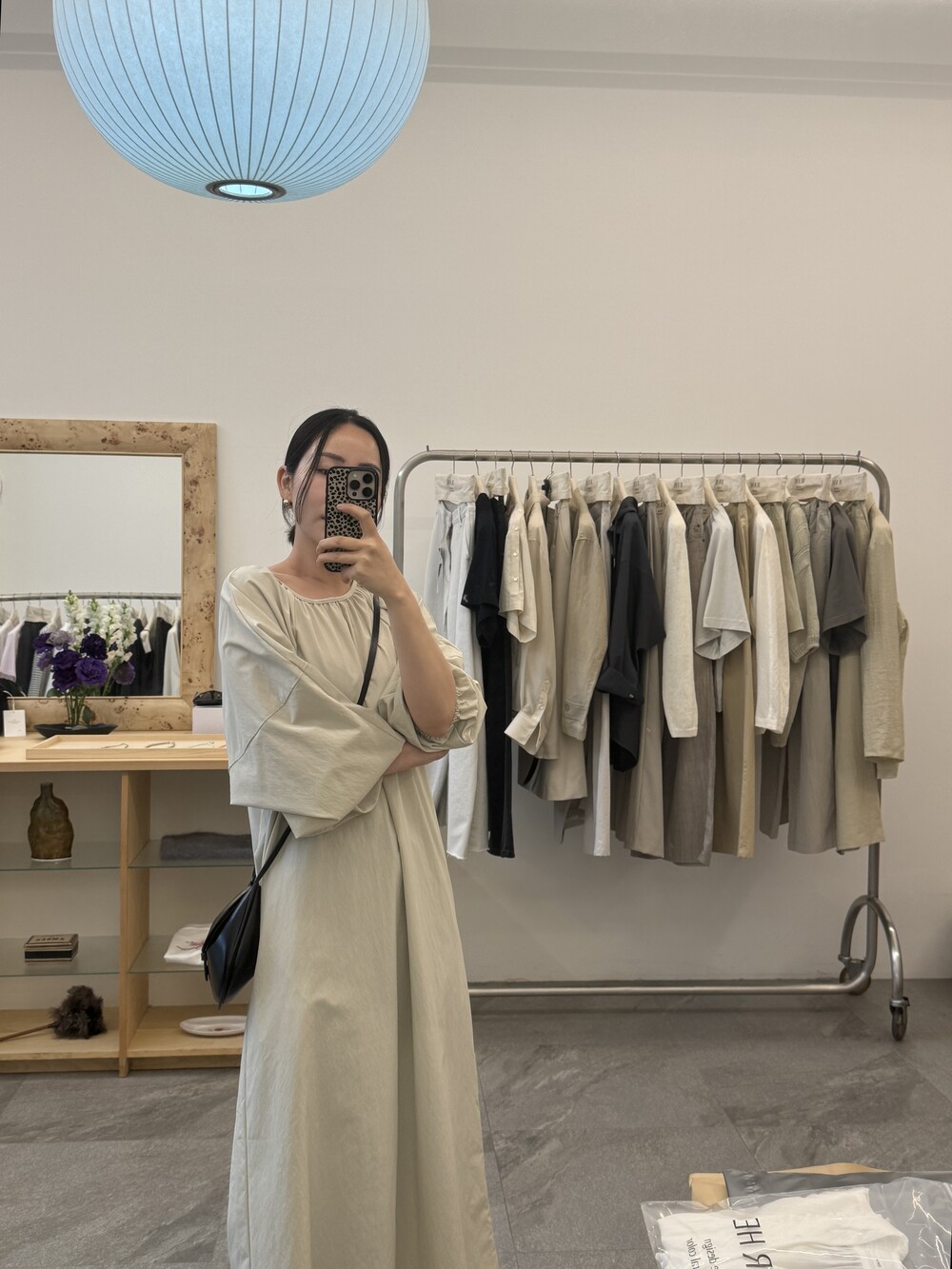 청량한 터치감이 돋보이는 셔링 원피스입니다.